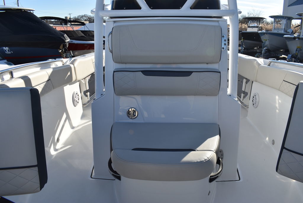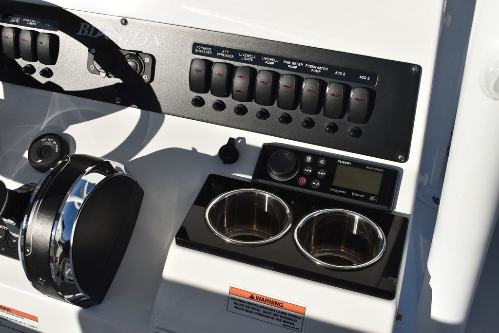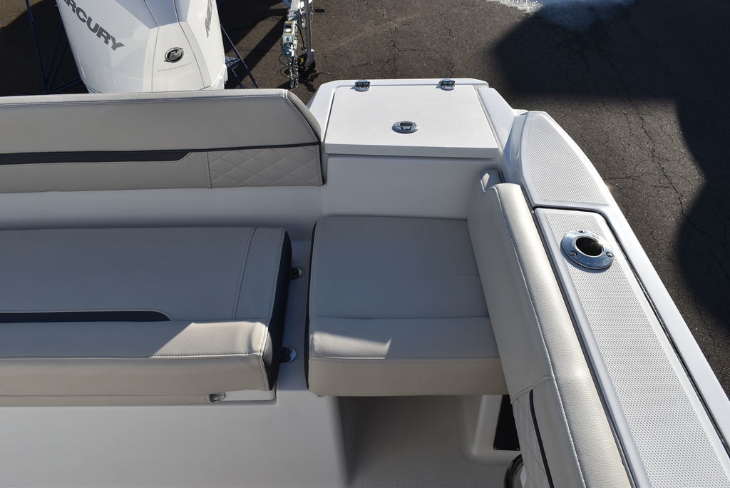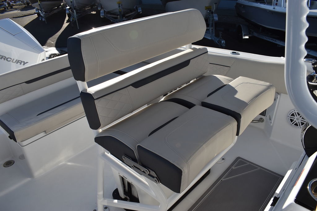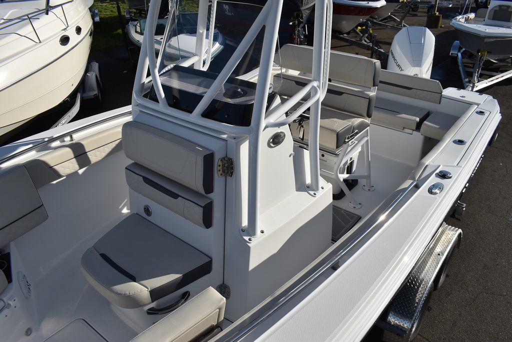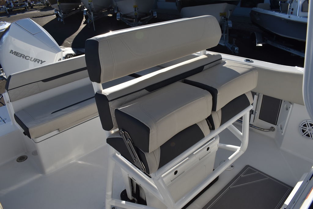 The 222CC may be the smallest model in the Blackfin lineup, but that doesn’t mean it’s not just as powerful. Built on the same time-tested principles as its bigger brothers, the 222CC was designed with a sharp forward entry, variable deadrise, and large freeboard, providing you with the comfortable and worry-free ride you’ve been looking for. Equipped with a Fiberglass Hardtop System, leaning post, custom seating with flip-down bolsters and molded-in footrests for stability, the helm station is a captain’s dream. Dedicated rod storage, versatile seating arrangements, and an abundance of standard and optional features make the 222CC the perfect vessel for handling anything from the toughest fishing grounds to simply relaxing at the sandbar.