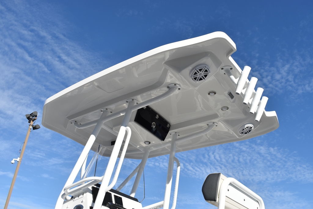 - Fiberglass Hardtop System w/Powder-Coated Aluminum Framework, White, LED Overhead Lighting (Red/White) (4), LED Spreader Lights (2) and (2) Speakers