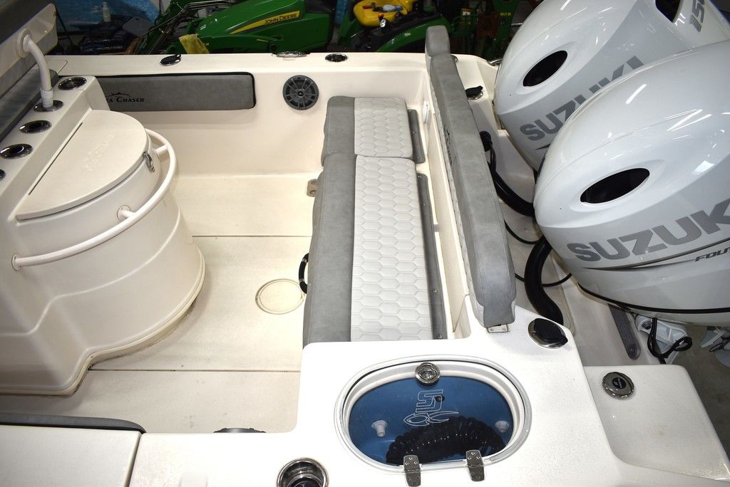 Diamond Marine, a Sea Chaser dealer of Connecticut. 2023 24 HFC, Gray sport stripe, twin Suzuki 150hp four stroke white motors, digital. Financing available, local trades welcome. Call us with any questions or concerns by email or phone at 203 466-5384 and ask for Mark or Karl.