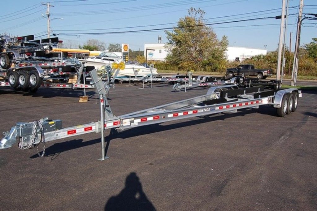 YOU ARE VIEWING A BRAND NEW VENTURE 12625LB. TRI-AXLE BOAT TRAILER. THIS BUNK STYLE TRAILER WILL CARRY A VESSEL THAT WEIGHTS UP TO 12625LBS. AND 29 TO 32 FT. THIS TRI-AXLE TRAILER COMES STANDARD WITH GALVINIZED STEEL WHEELS, DISC BRAKES ON ALL AXLES . THE TRAILER IS EQUIPPED WITH 13 FT CARPET BUNKS AND ADDITIONAL 8 FT FRONT TARGET BUNKS, SUBMERSIBLE LIGHTING, SUPER LUBE HUBS, DIAMOND PLATE FENDERS, TWO SPEED WINCH AND A 2000 LB. TONGUE JACK. WE ARE DIAMOND MARINE OF CONNECTICUT AND HAVE BEEN IN BUSINESS FOR OVER 30 YEARS. WE ARE THE LARGEST BOAT TRAILER DEALER IN THE COUNTRY WITH THE LARGEST ON-SITE INVENTORY. IF YOU ARE IN NEED OF ANY TYPE OF BOAT TRAILER, BIG OR SMALL PLEASE GIVE US A CALL. WE OFFER MANY DIFFERENT OPTIONS, WHICH INCLUDE SUCH ITEMS AS GUIDE POLES, KEEL ROLLERS, POLY BUNK SLEEVES, SPARE TIRES AND MUCH MORE. YES WE CHARGE A $149 PROCESSING FEE, BUT IF YOU DON'T WANT TO WAIT IN LINE AT MOTOR VEHICLE- NO PROBLEM- DIAMOND MARINE IS THE ONLY TRAILER DEALER IN THE STATE, THAT CAN DO AN ONLINE REGISTRATION FOR ALL CONNECTICUT RESIDENTS AND CAN ALSO PROVIDE A 30 DAY TEMPORY LICENSE PLATE FOR ALL OUT TO STATE, U.S. RESIDENTS, SO YOU CAN GET HOME LEGALLY.