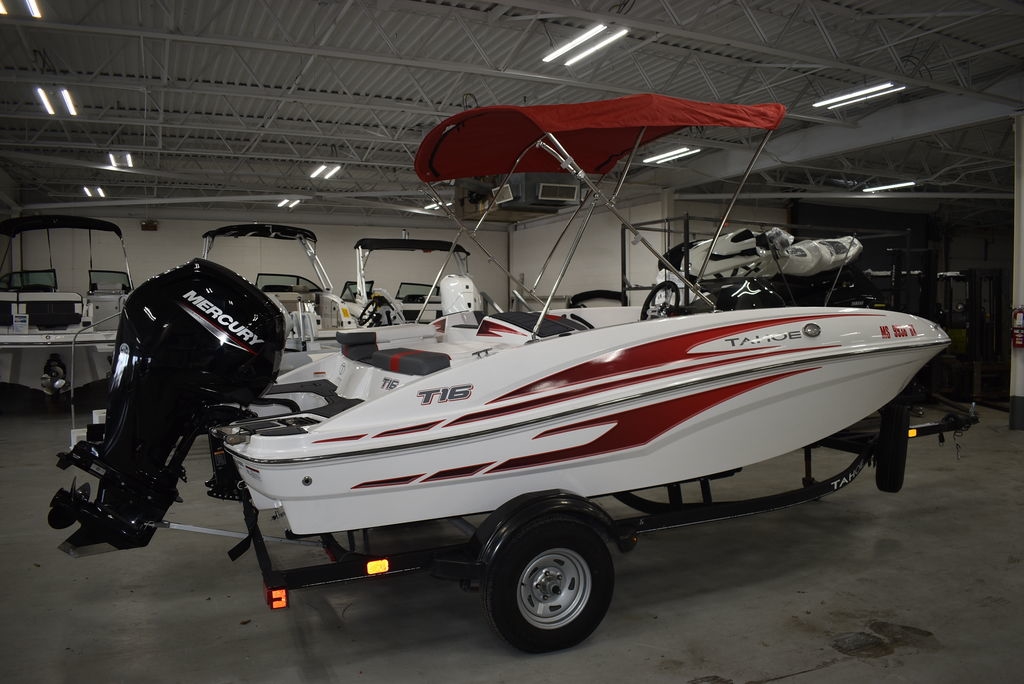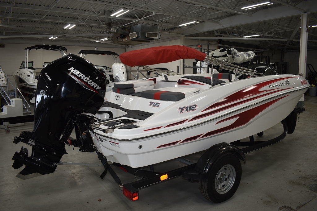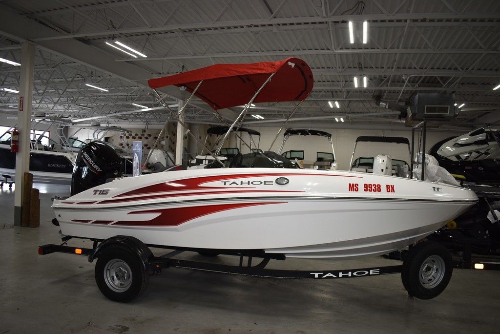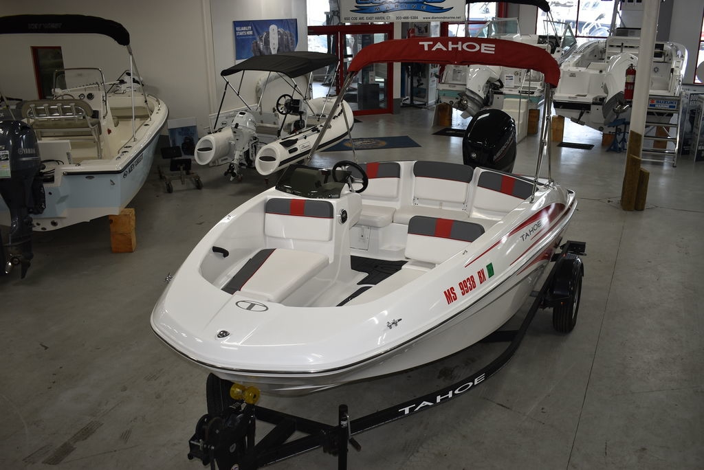 You are viewing a recently traded in 2024 Tahoe T16 runabout bowrider boat, motor and trailer pkg. This 16ft 5in Tahoe is powered with maximum HP for this boat, a 75hp Mercury 4 stroke outboard with only 34 hours on it and transferable warranty good till March 22, 2032. This complete package includes a trailer built specifically for this boat, a black, single axle bunk trailer with spare tire. This one comes nicely equipped with a full trailer/mooring cover, Bimini top w/ boot, Floor ski locker, Two position port side backrest, inlay non-skid flooring, walk thru transom, Aft sunpad. The 2024 Tahoe T16 is know for it's compact size, making it easy to tow and store, while offering features typically found on larger boats. 100% composite construction, designed for watersports and cruising. Boat can be seen at Diamond Marine's indoor showroom, local trades welcome, financing available with storage till ready. Email or call today at 203 466-5384 with any questions and ask for sales. Thank You, Diamond Marine of C