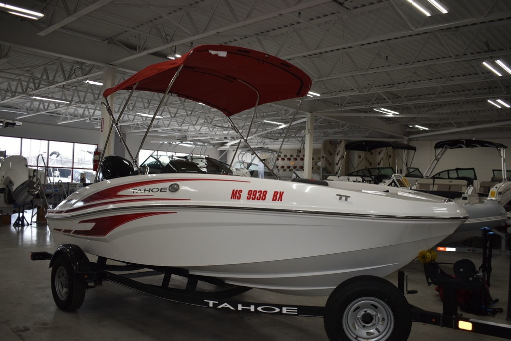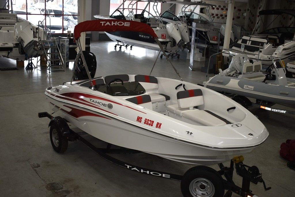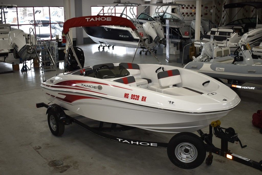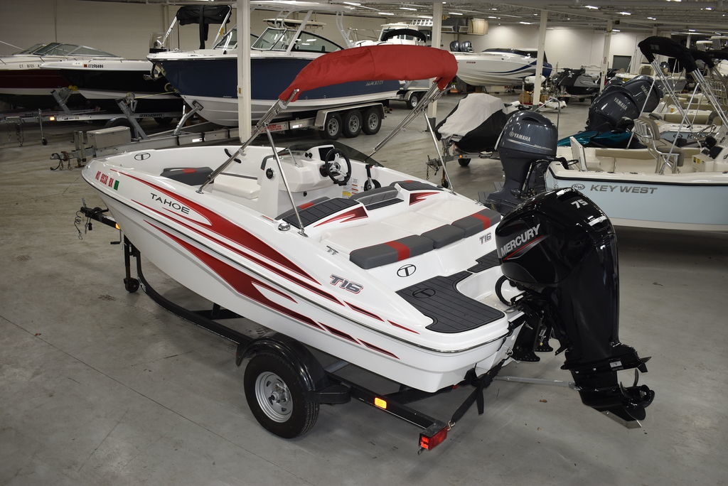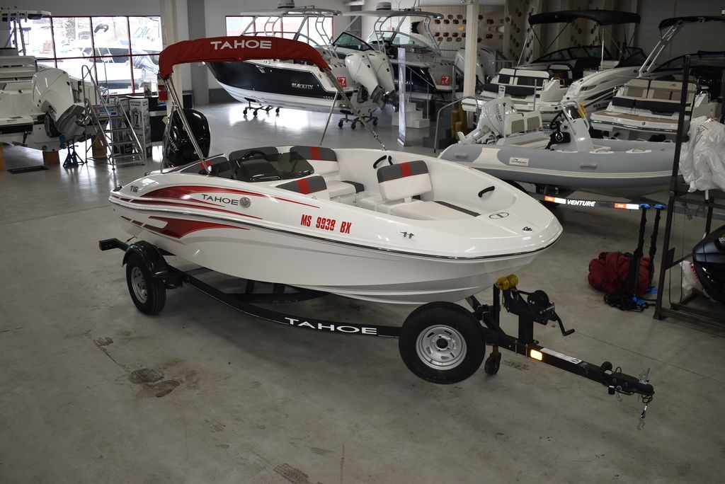 You are viewing a recently traded in 2024 Tahoe T16 runabout bowrider boat, motor and trailer pkg. This 16ft 5in Tahoe is powered with maximum HP for this boat, a 75hp Mercury 4 stroke outboard with only 34 hours on it and transferable warranty good till March 22, 2032. This complete package includes a trailer built specifically for this boat, a black, single axle bunk trailer with spare tire. This one comes nicely equipped with a full trailer/mooring cover, Bimini top w/ boot, Floor ski locker, Two position port side backrest, inlay non-skid flooring, walk thru transom, Aft sunpad. The 2024 Tahoe T16 is know for it's compact size, making it easy to tow and store, while offering features typically found on larger boats. 100% composite construction, designed for watersports and cruising. Boat can be seen at Diamond Marine's indoor showroom, local trades welcome, financing available with storage till ready. Email or call today at 203 466-5384 with any questions and ask for sales. Thank You, Diamond Marine of C