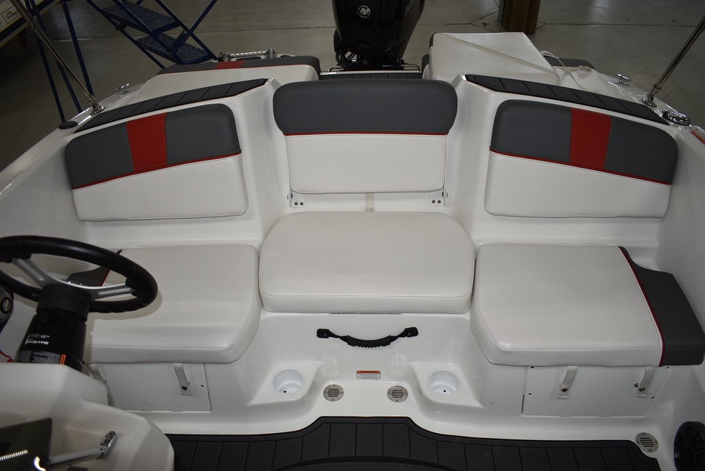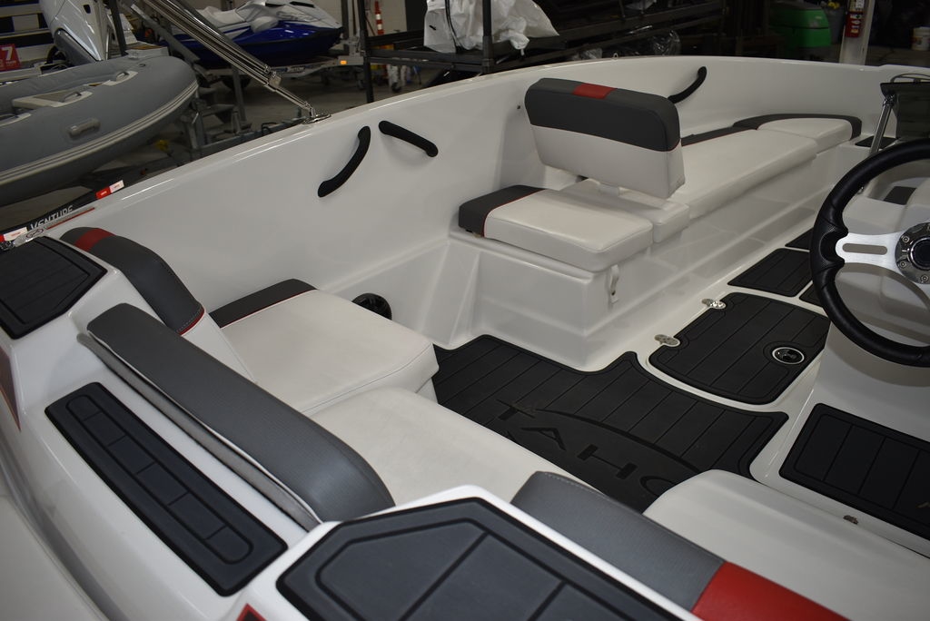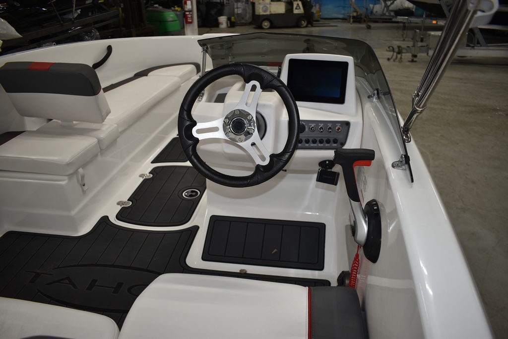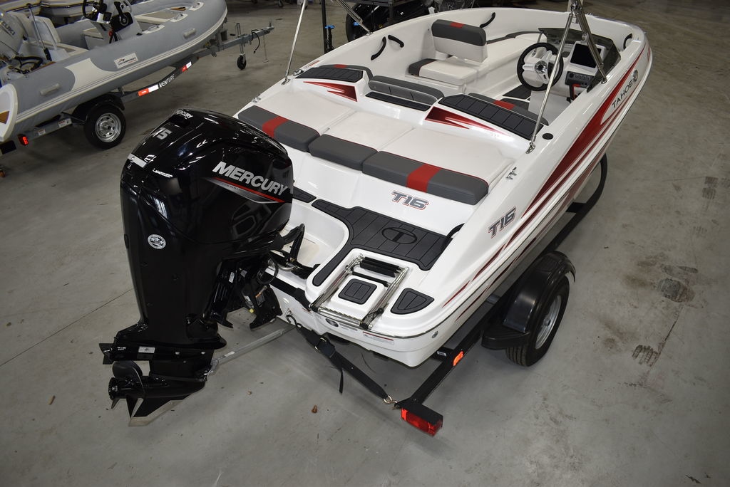 The TAHOE® T16 is fully loaded and priced to deliver huge returns of fun and excitement. A 7” touchscreen multifunction display is standard and displays your GPS-accurate speed, the water depth, as well as your motor’s vitals. Inside, creature comforts abound in the form of twin forward lounges with ample underseat storage, and out back you’ll find a sun pad and a FourStroke Mercury outboard for spirited and economical performance. Rounding out the package is a custom-built trailer for years of on-road peace of mind.