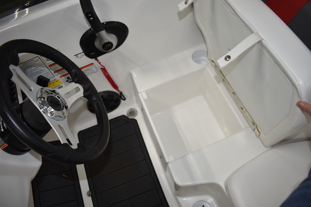 - Bow seating w/molded-in storage & reversible backrest for use as spotter seat