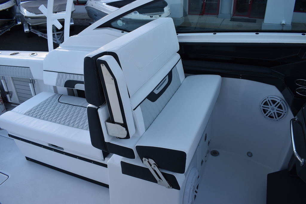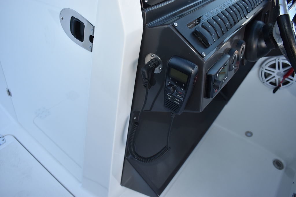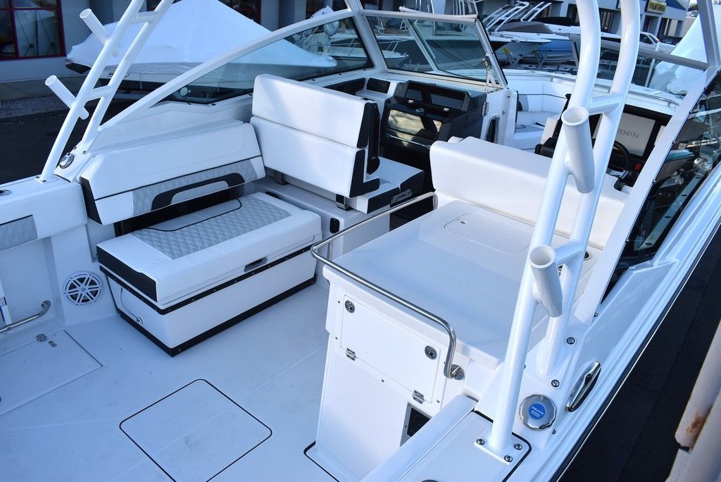 This versatile dual-console boat is the ultimate vessel for reaching your favorite fishing grounds, cruising the open waves or just gathering with friends for a day on the water. It comes loaded with all the necessary features and amenities for the serious fisherman such as a fiberglass hardtop, gunnel, and transom-mounted rod holders, in-floor fish boxes as well as the latest in navigation and fish-finding technology. When the day calls for some recreational boating, hit the water with a Fusion Apollo sound system with JL speakers, convertible port lounge seat with storage, and a wet bar with sink and Yeti Tundra cooler.