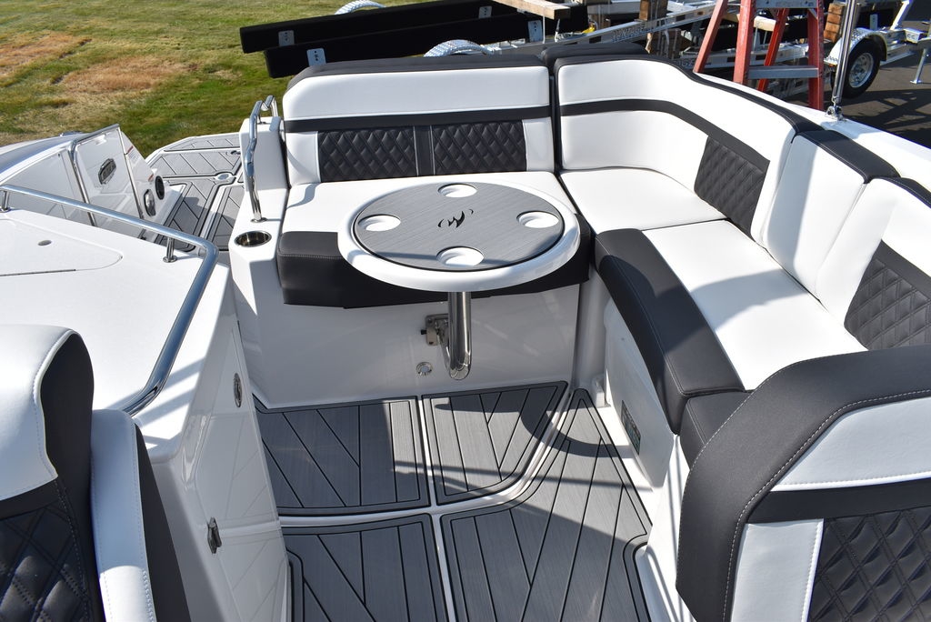 LUXURIOUS MULTITASKERThe M6 has everything you’ll need to enjoy a full day of cruising, skiing, wakeboarding and tubing. Featuring spacious seating and storage options, a head compartment, two recessed and telescoping boarding ladders located in the bow and stern, and a Fusion satellite ready AM/FM stereo, you'll have everything you need to enjoy your time out on the water. With the standard signature graphics and colored hull and deck, you’re sure to have one of the sharpest boats on the water. The M6 is style, luxury and performance personified!