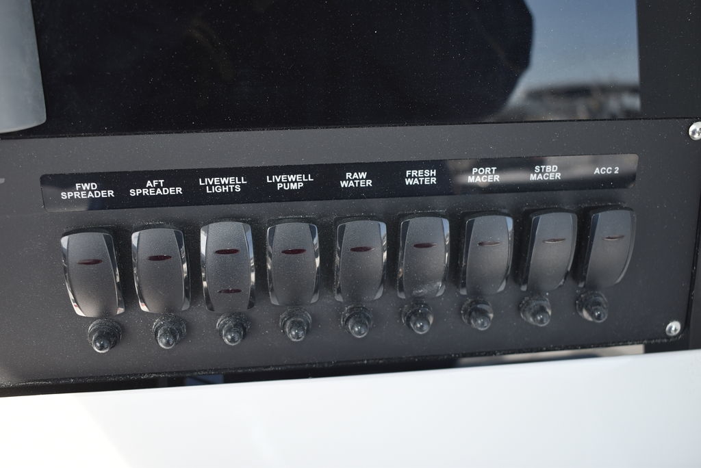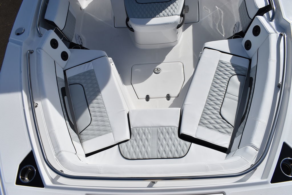 No matter what your destination is, the 252CC will take you there in style and comfort. Designed for everyday performance and fishability, the 252CC’s unique hull design offers a smooth, dry, top performing ride. The 252CC is equipped with a fiberglass hardtop & leaning post with a command center featuring a custom-designed helm seat with flip-up bolster, full 3/4 glass enclosure, gunnel and hardtop mounted rod holders, baitwell and in-floor macerated fish-boxes with pump-outs, making the 252CC perfect for handling your big offshore fishing adventures.
