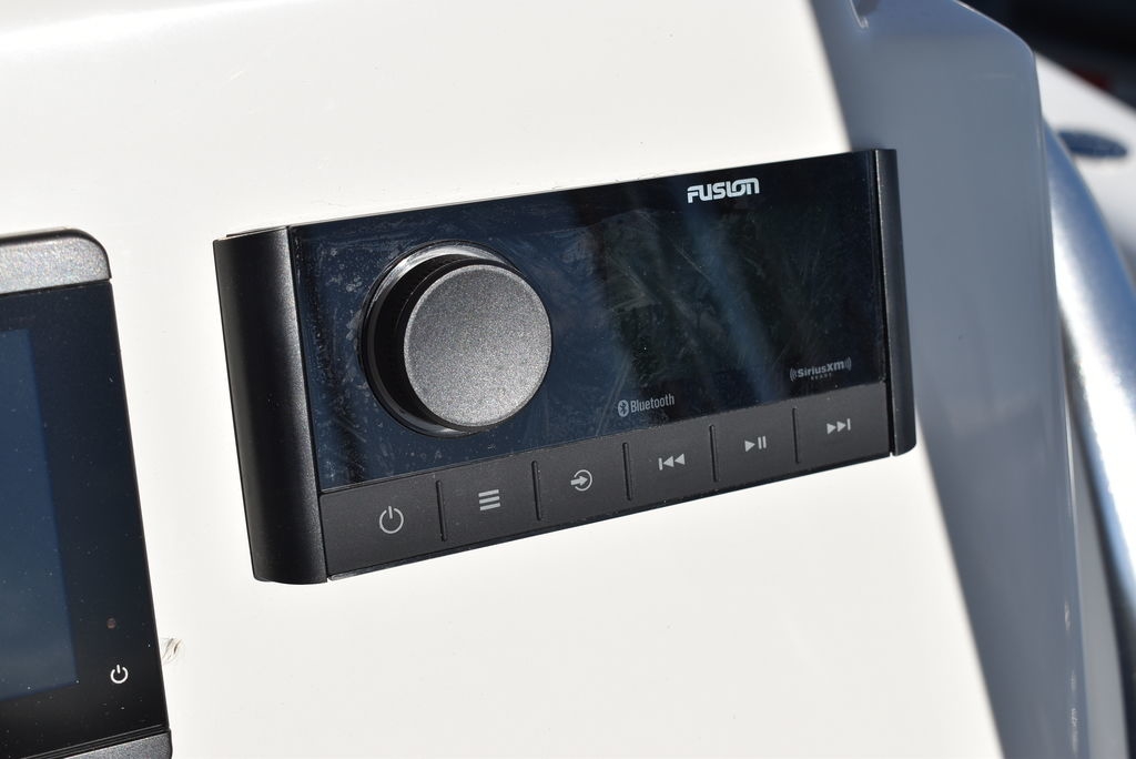 Options ordered with this boat include a Yamaha 300hp DEC Outboard, Yamaha CL5 Gauge display, Garmin 8610xsv 10in touch screen GPS/fishfinder, Fusion Stereo with 6 speakers, VHF radio, Stainless steel rubrail, Hardtop, Flip-bolster leaning post w/ armrests, Removable Fold-down transom seat, Hardtop spray shield, Hardtop Gull wings, Console cover, Leaning post cover, Interior LED Lights, Underwater lights, Bow filler cushion, Console dash pad, Floor helm pad, Pop-up fender holders, Tackle hatch in console, Pumpout toilet, Windlass anchor.