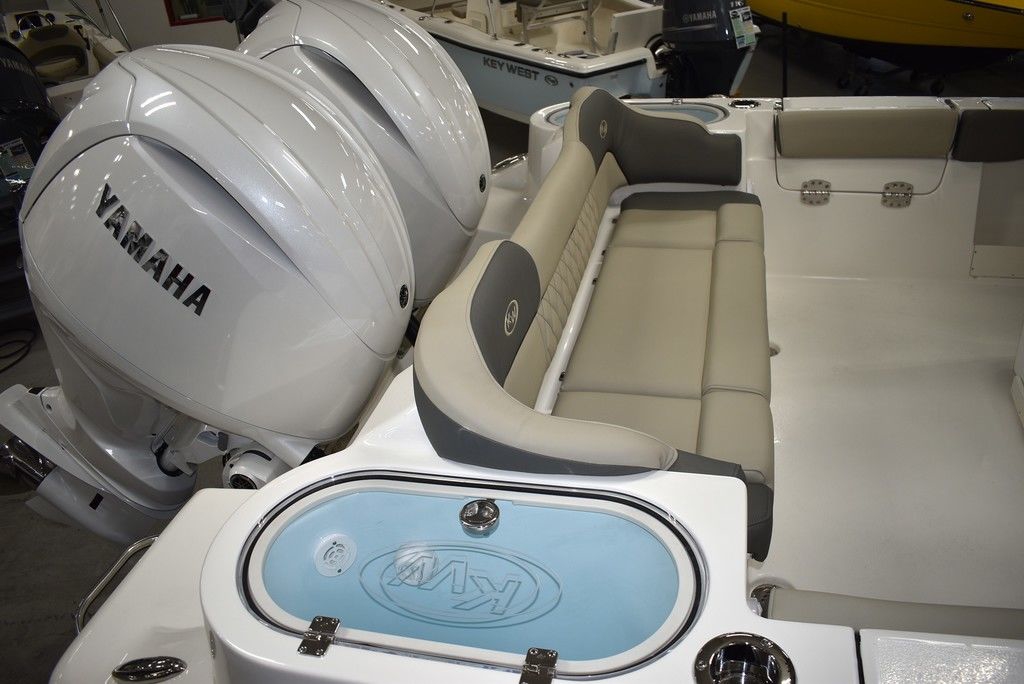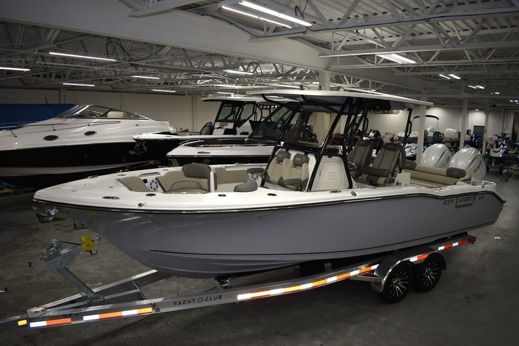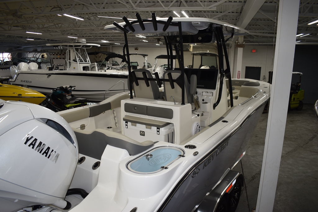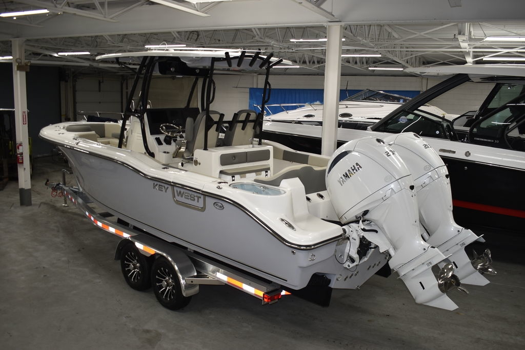 Now Available for sale by Diamond Marine of Connecticut, a Key West dealer. 2026 Key West 263 FS Center console, family sportsman. This one was ordered with twin Yamaha F200 XSA White motors with Digital Controls and Digital Steering, Manta Gray hull color, Yamaha CL5 Digital gauge, Black powder coated framing, Convenience Center Leaning post station w/ sink and pull out cooler, Manta accent color underside of hardtop, Twin Garmin 8612 GPS/fishfinder w/ VHF Radio, Garmin Autopilot, Fusion Apollo upgraded stereo w/ subwoofer, Wireless phone charger, Console cover, Leaning post cover, Hardtop RGBW Light kit, Full RGBW Light package, Bow table/filler board, Console dash pad, Floor helm pad, Pop-up fender holders, Tall windshield exchange, Pump-out toilet Transom dive ladder. Financing available, local trades welcome. Please contact us with any questions or concerns by email or phone at 203 466-5384 and ask for sales. Thank You, Diamond Marine