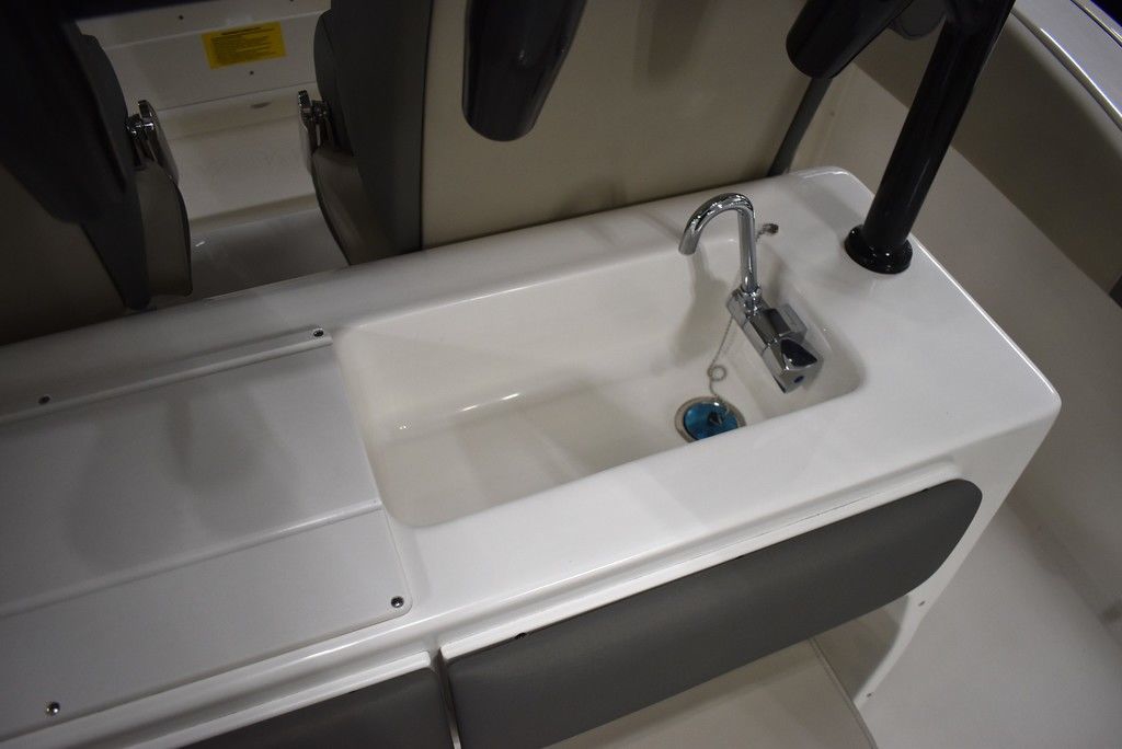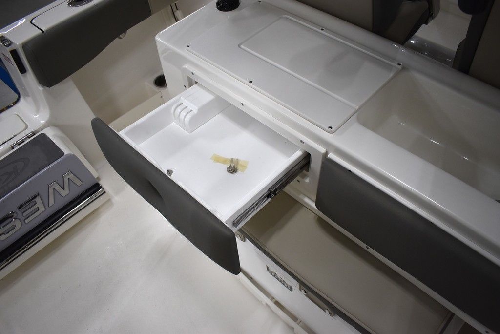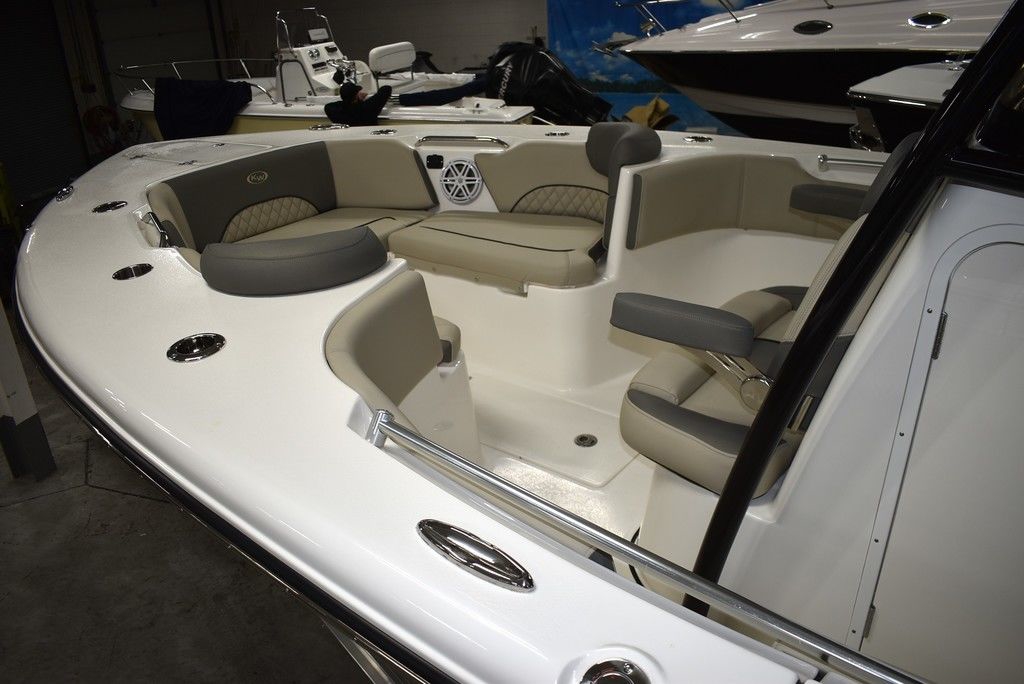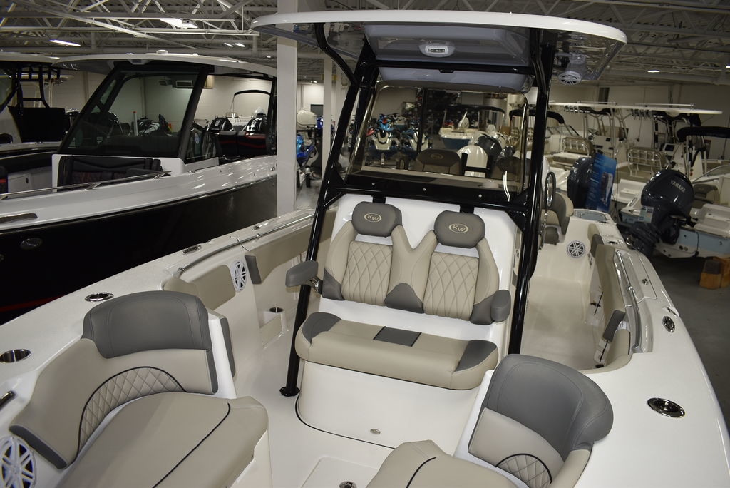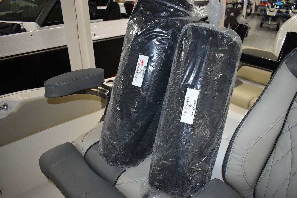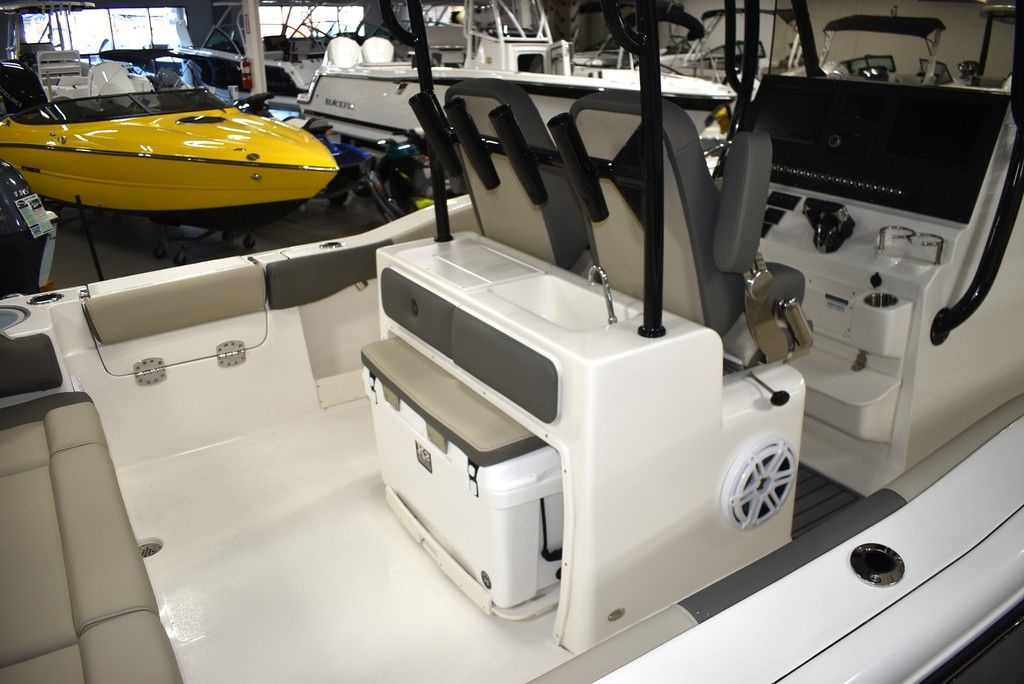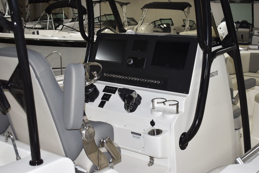 The 263FS is a perfect choice for family, fishing, or just cruising on the water.This model is full of features that enhance the design and performance, providing the active family with all they could ask for on the water. Some of the standard features include an under-deck windlass, eight-speaker stereo with amplifier, hardtop, side entry door with hidden ladder, power assist steering, and Seakeeper Ride system. It remains a highly fish-able vessel with features like dual live wells, a macerated fish box, 22-rod holders, and horizontal storage racks under the gunnels to hold your longest saltwater rods.