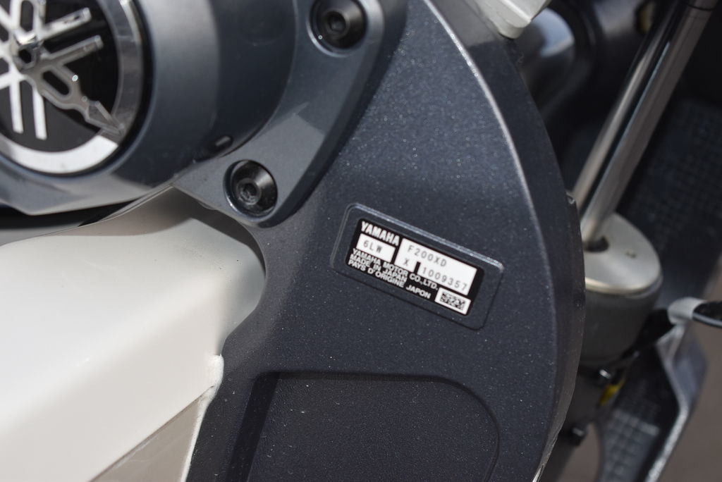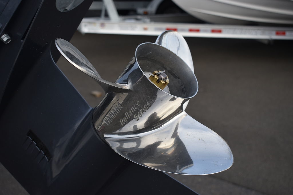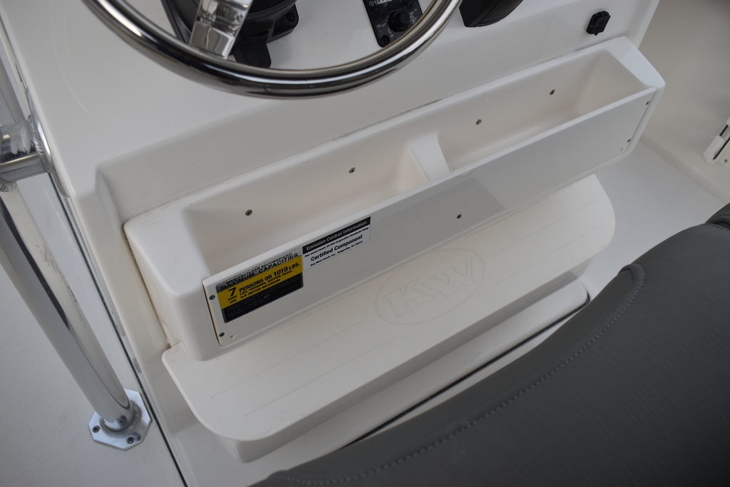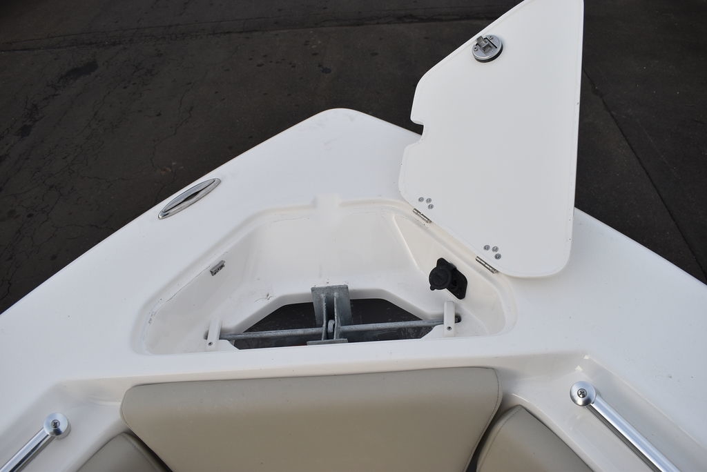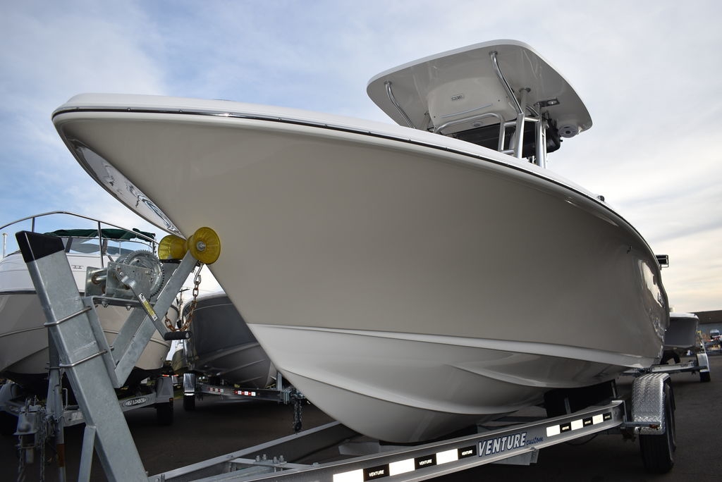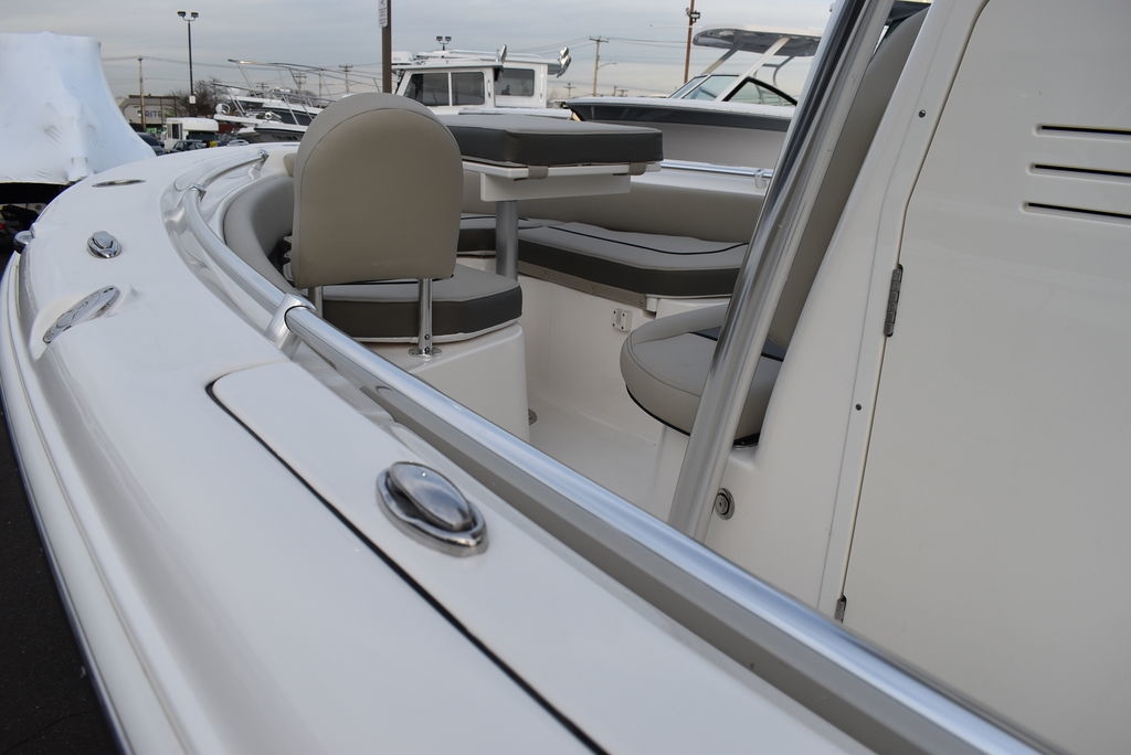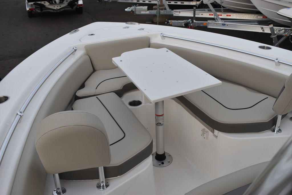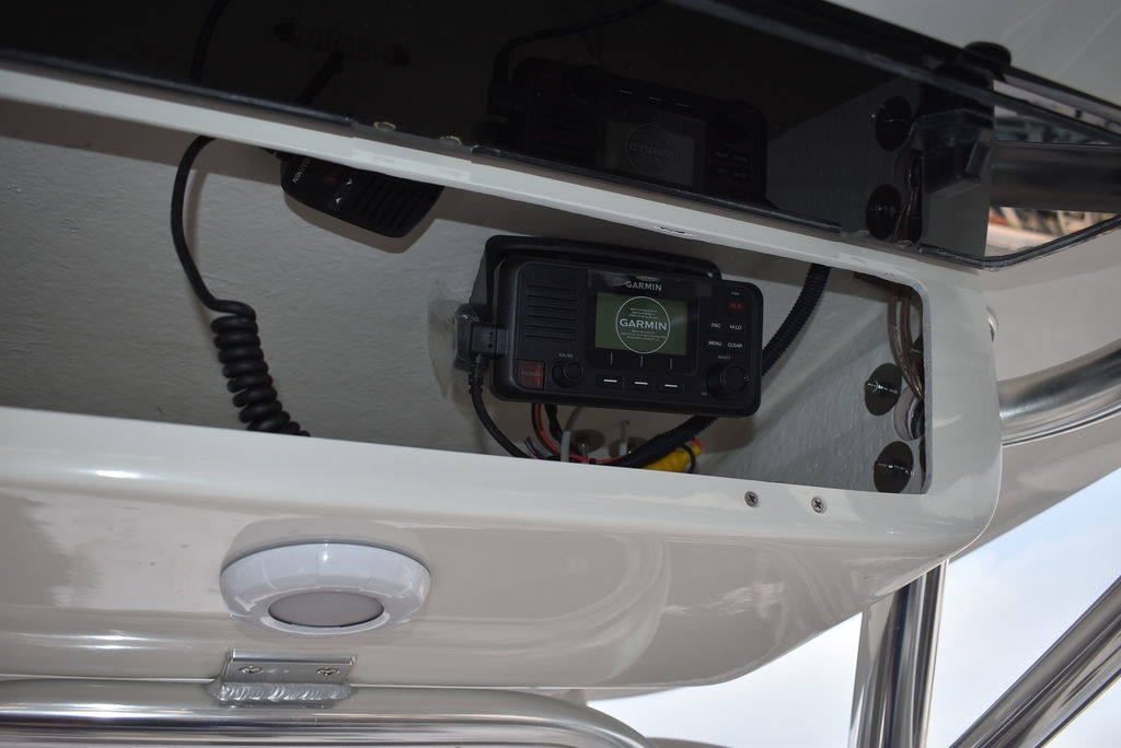 Optional equipment- Sand hull color, Yamaha F200XD mechanical motor, Command link digital gauges, Garmin 943XS Color GPS/Fishfinder w/ GT56 transducer, Clarion stereo w/ 4 speakers, VHF radio w/ antenna, Stainless steel rubrail, Hardtop, Leaning post w/ flip-up bolsters and armrests, Hardtop spray shield, leaning post cover, console cover in black, Interior LED Lights, Underwater lights, Removable bow table/filler cushion, Console dash pad, Floor helm pad, Fresh water washdown, Pop-up fender holders, Tall Windshield, pump-out toilet.