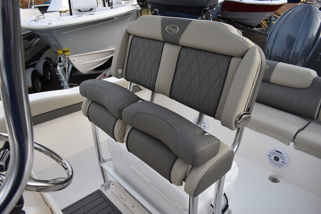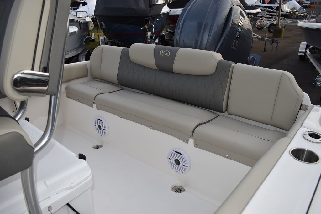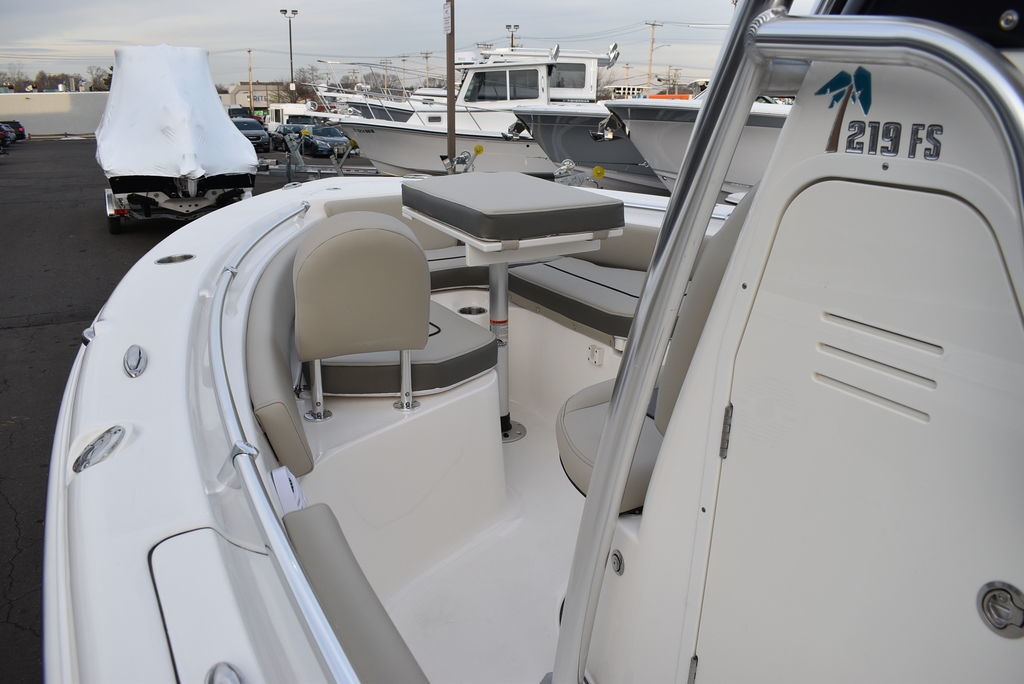 The 219FS is a large boat with more floor space, rod storage, dry storage, and seating than the competition.The spacious front deck can effortlessly switch between comfortable forward faced seating with backrests to twin dry storage or fish boxes as you need. The console houses a large changing room that doubles as a tremendous storage space. The dash panel will flush mount up to 12” screens, and most radios, gauges, and controls. The rear bench seat has fully lined storage areas underneath the comfortable seating and the swinging transom door offers easy entry for swimmers.