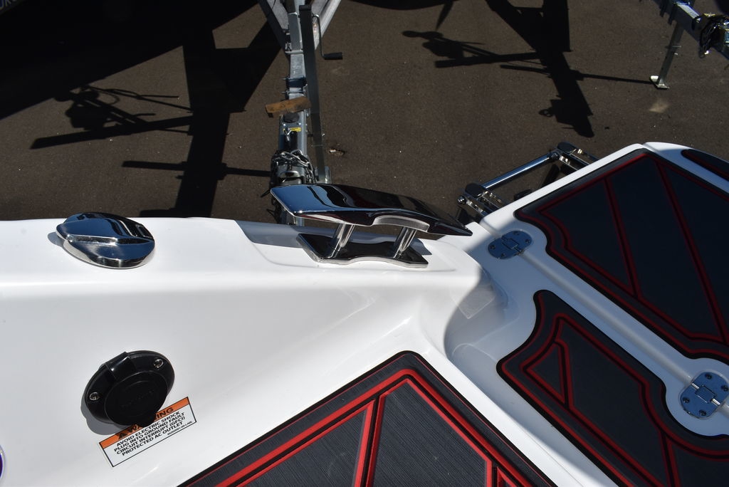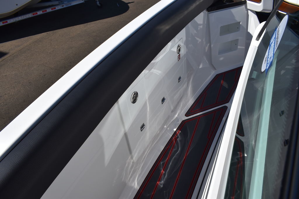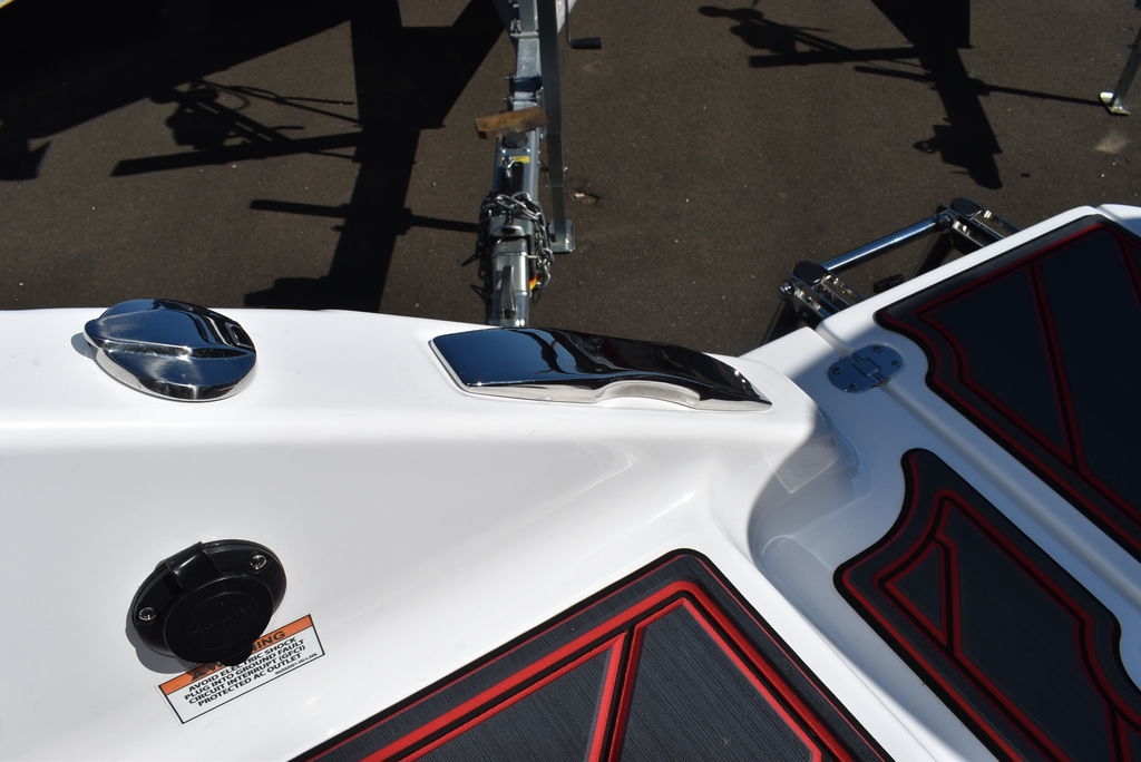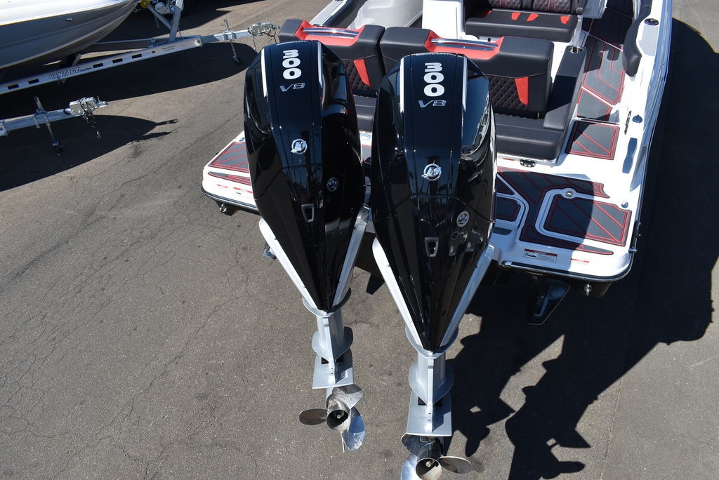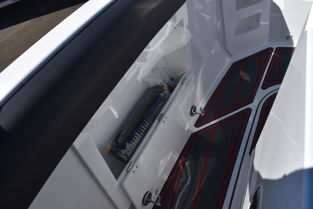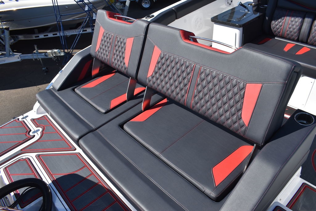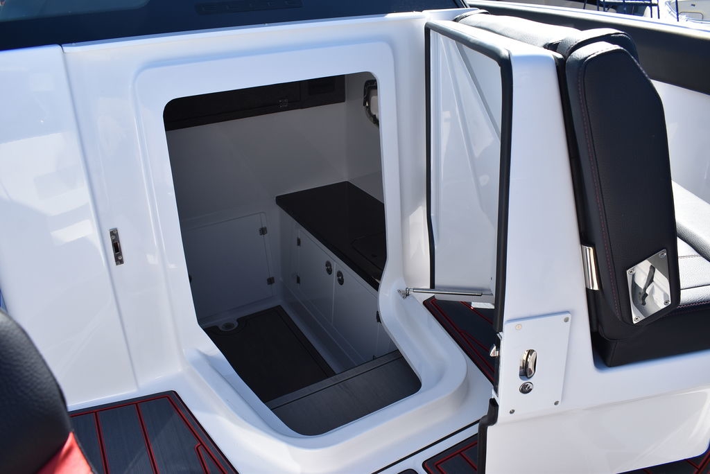 Now available, for sale by Diamond Marine of Connecticut, A Monterey dealer, 2026 Monterey Elite 30 Outboard, powered by Twin Mercury 300hp Verado's w/ Joystick and DTS. This one was ordered with the Onyx hull color and red accents throughout, Fabric interior Onyx w/ red accents, Wndlass anchor w/ stainless steel anchor, Phender Pro easy disconnect fender system, Seadeck in cockpit/swimplatform w/ red accent inlay, Aft shade, Bow cover, Aft seat cover, console cover, helm seat cover, Electric air inflator, Bow filler cushion, Macerator for toilet w/ holding tank and overboard discharge. Local trades welcome, financing available, storage till you're ready to boat. Call us at 203 466-5384 with interest.