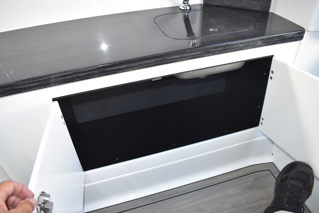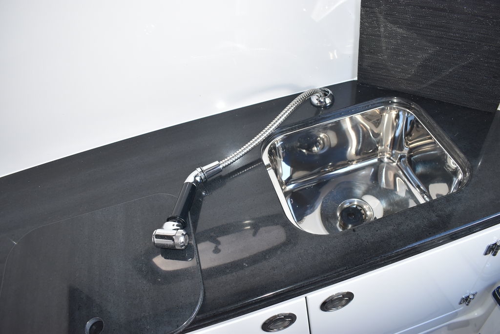 - Wetbar w/Solid Surface Insert, Sink, Faucet, Trash Receptacle & Storage