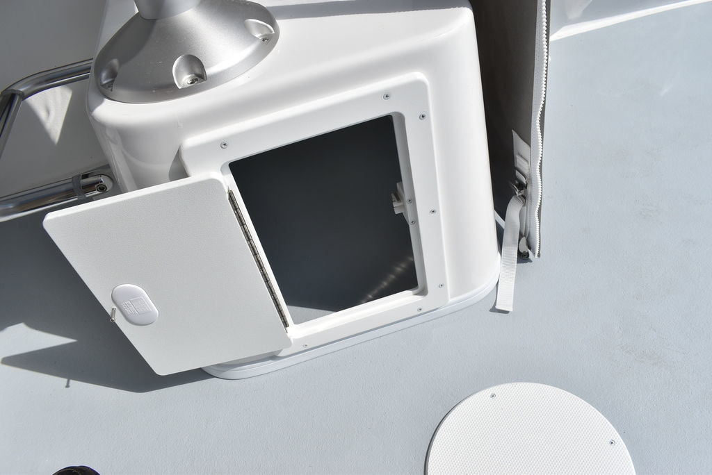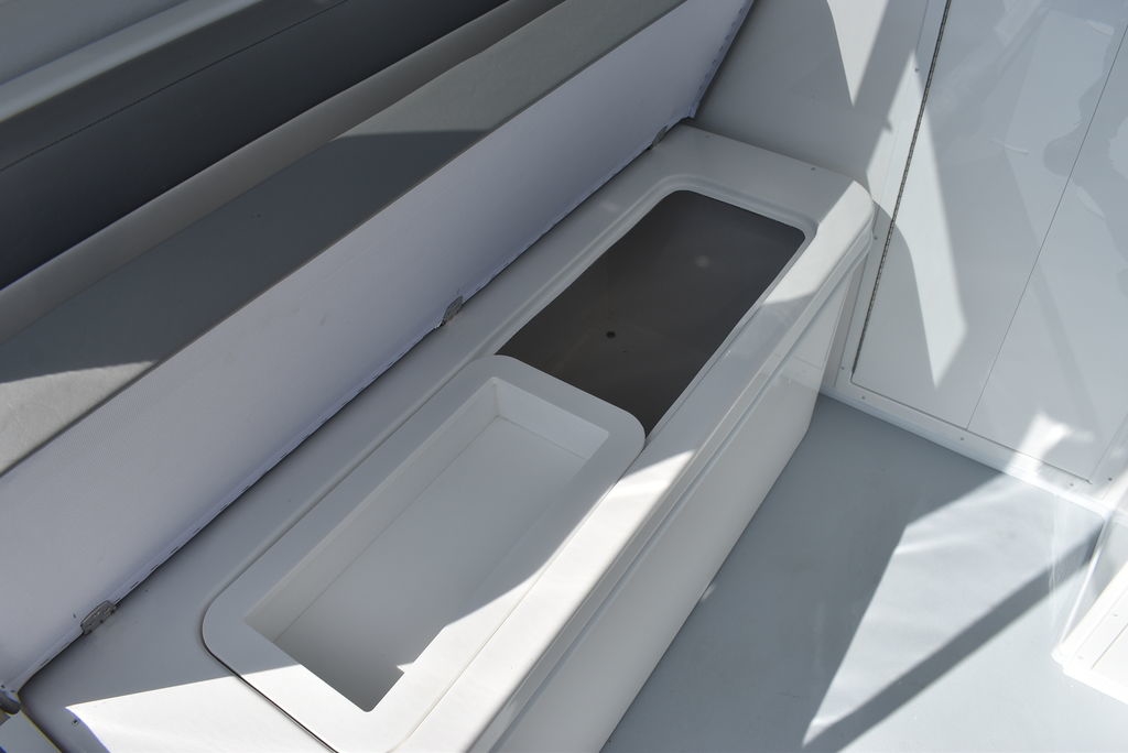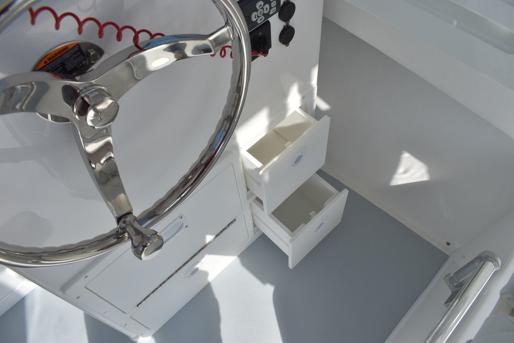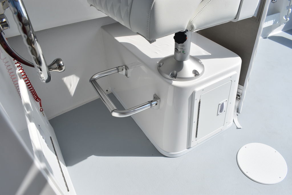 The Steiger 23 Miami is constructed of hand laid fiberglass coupled with our exclusive I-Beam grid system technology, offering durability and a rigid structure that can withstand any sea conditions.