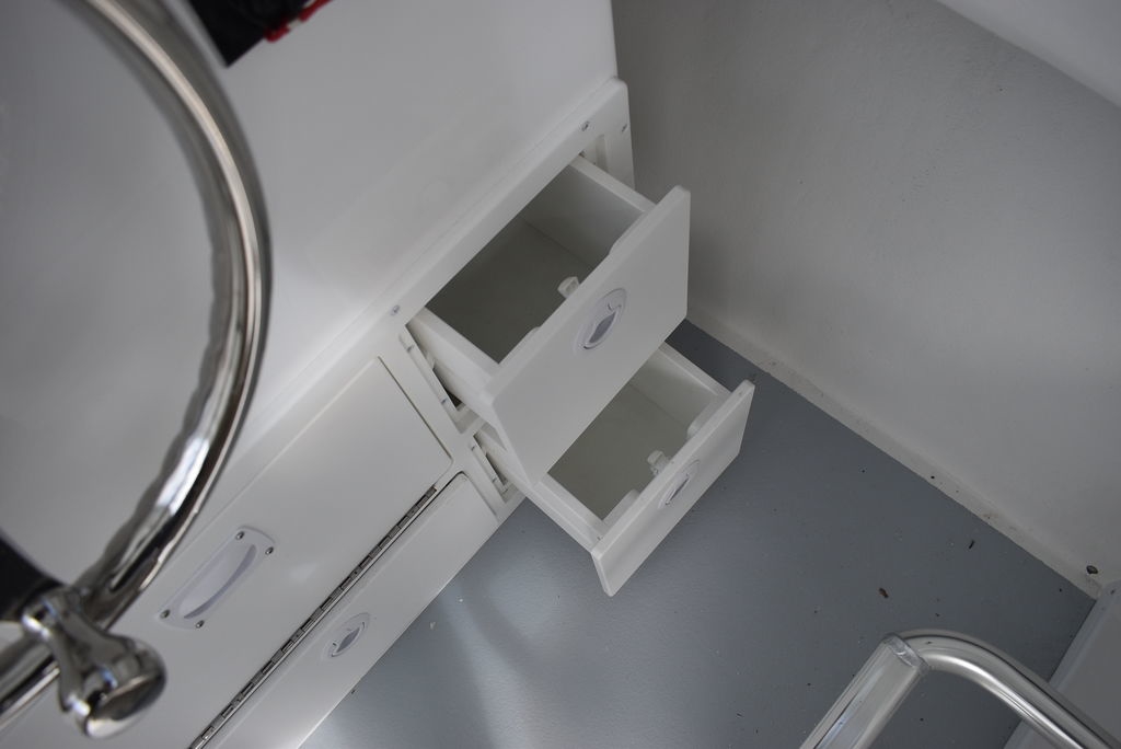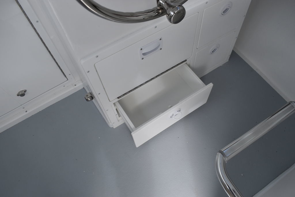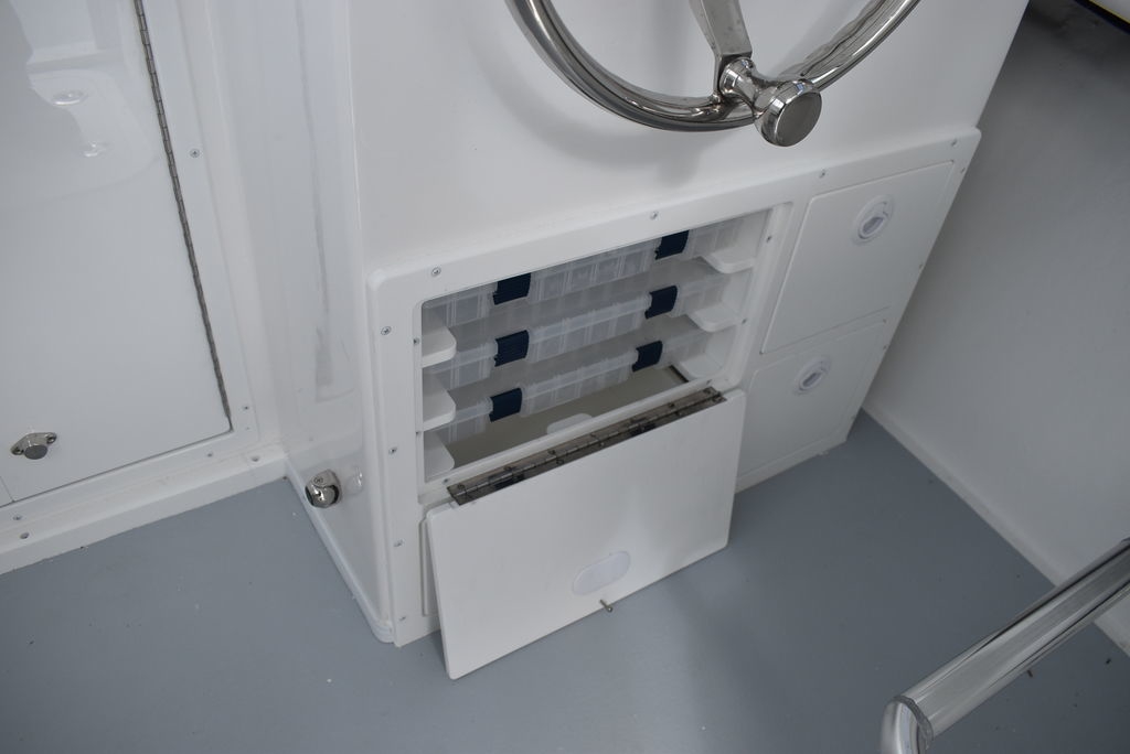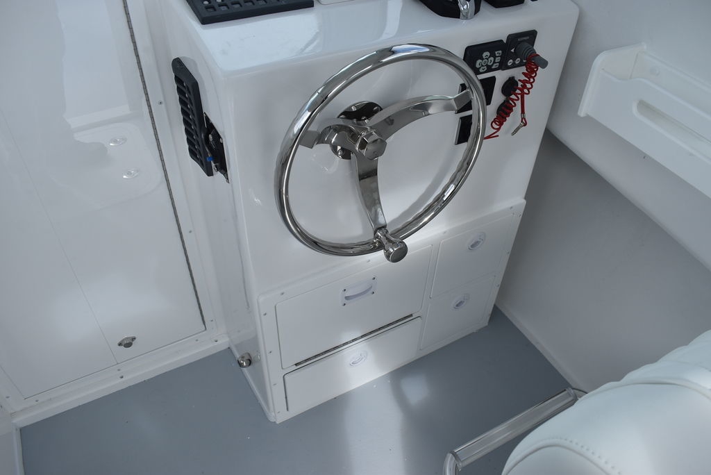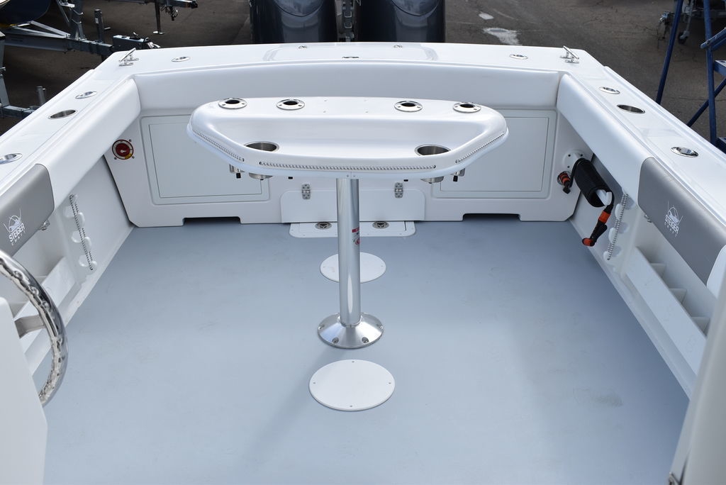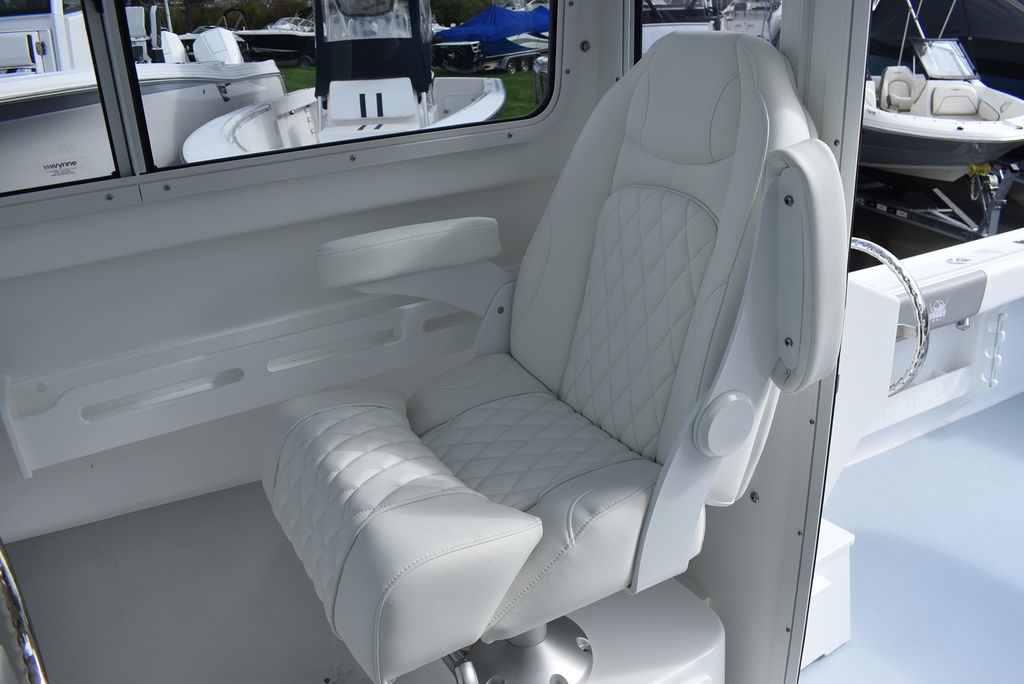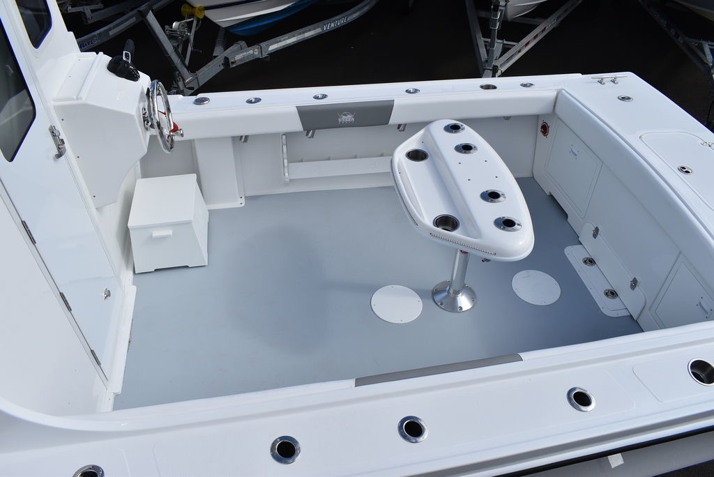 Steiger Craft, the ultimate fishing machine. 2026 Steiger Craft 255 Chesapeake pilothouse. PROVEN ROUGH WATER DESIGN. This boat is the perfect day-trip fishing boat. The Steiger 255 is also affordable to buy when compared to other boats its size. Its 8' 6" beam offers a lot of cockpit space, in a boat that will still nicely fit on a trailer. Perfect for in-shore day trips, the Miami 255 is also a real competitor 30 miles offshore. Classic styling combined with hand-laid fiberglass and a ridged I-Beam stringer system make for a true rough water performer. This one was ordered with the following optional equipment- Twin Yamaha F200's w/ Digital steering and controls, Full Chesapeake wall, Anchor drum roller, Bow thruster, Cockpit and transom bolsters, Cockpit rocket launcher fishing station, Double Rocket launcher arch on hardtop, Cockpit under gunnel lighting, Portside Pedestal seat in lieu of couch, Portside tackle cabinet, 4 Additional rodholders, Second steering station w/bow thruster control, Spotlight and gray v-berth cushions.