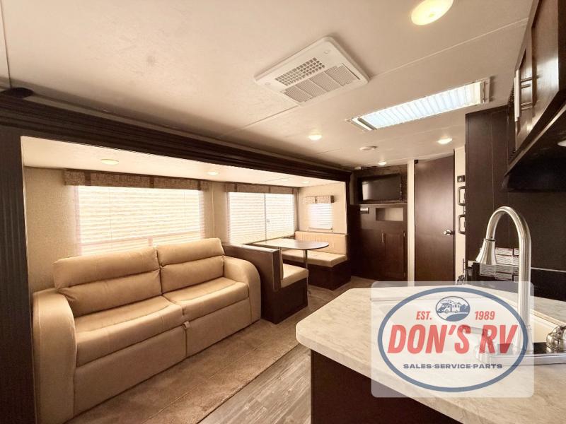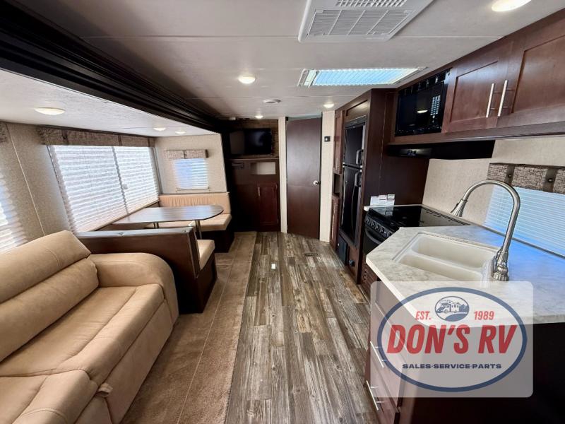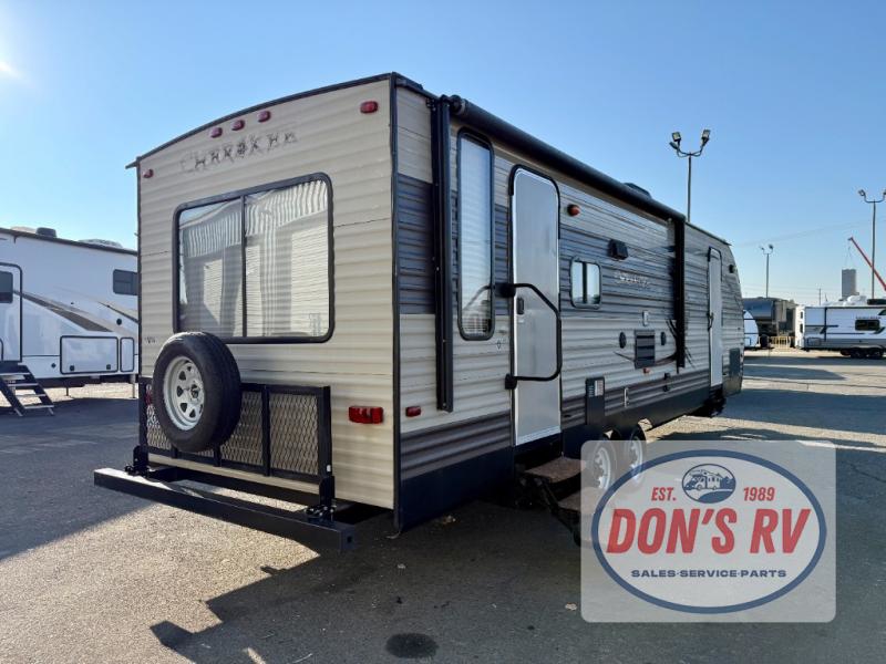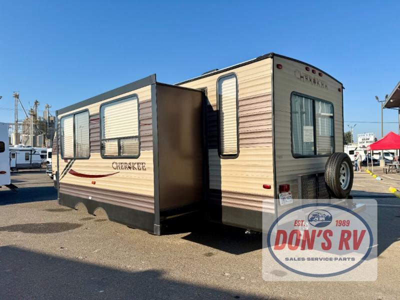 You can easily entertain a few guests in the Cherokee 264L travel trailer by Forest River. This model features a single slide and a rear living area.