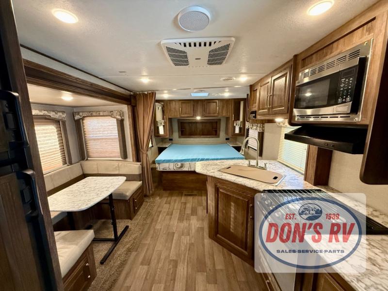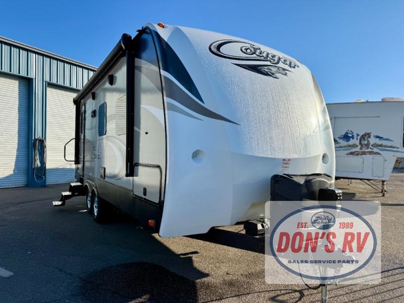 Many conveniences of home fit nicely in this Cougar 1/2 Ton series travel trailer by Keystone RV. This unit features a single slide for added space and sleeping for four.