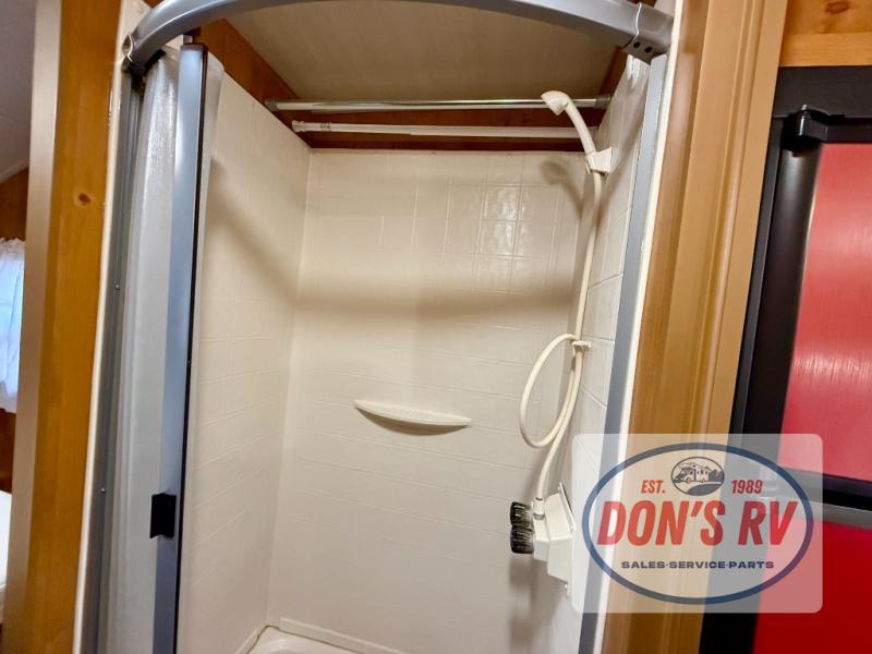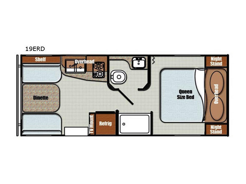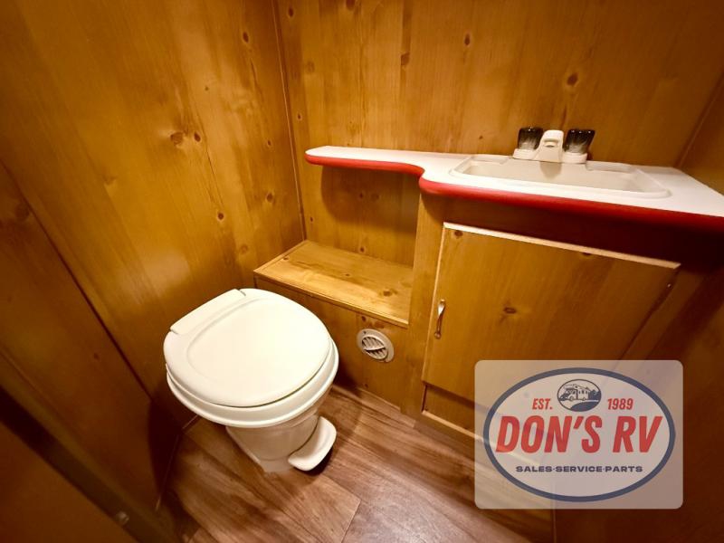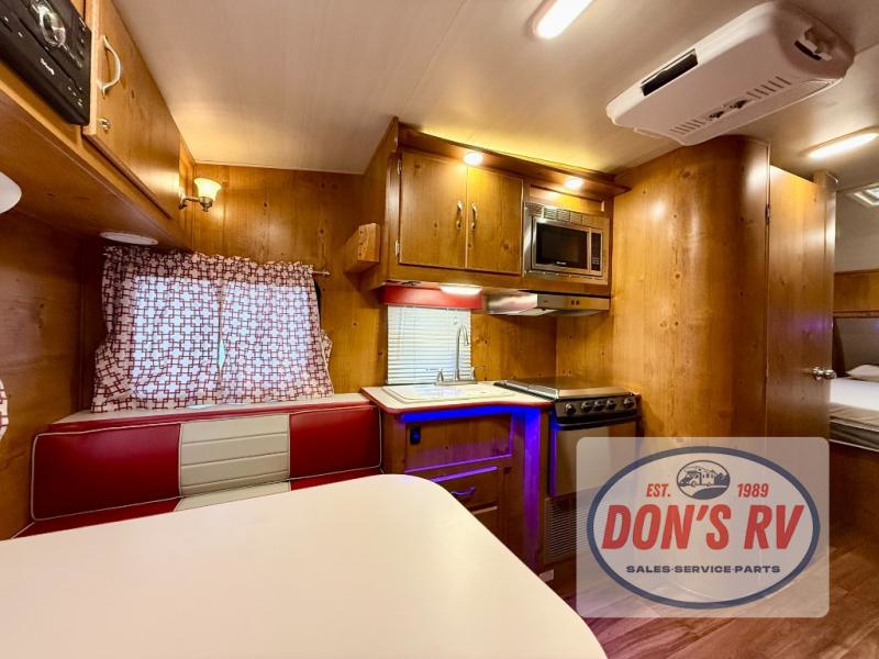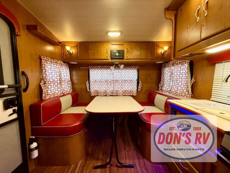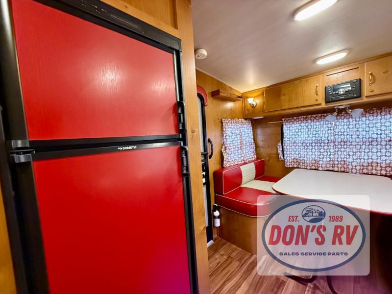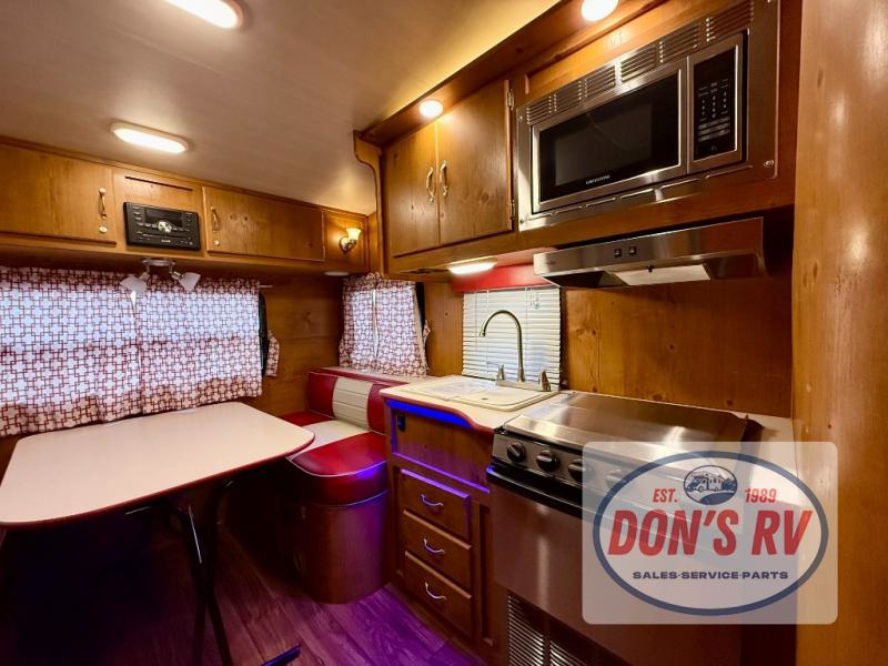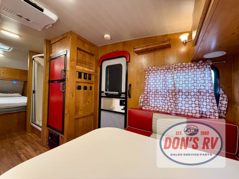 This Vintage Cruiser model 19ERD is loaded with retro-styling starting with vintage decor colors to choose from to pair with the Roanoke Cherry cabinetry throughout. A rear dinette features windows along three sides for bringing a view of your surrounds inside, plus keeping it light and airy with the help of LED lighting as well. A convenient kitchen including a two burner cook-top and microwave oven provide a great space to prepare and cook meals that your family will love. Having a microwave oven makes warming up left overs easy, as well as being able to pop a bag of microwave popcorn before game time begins around the dinette at night!