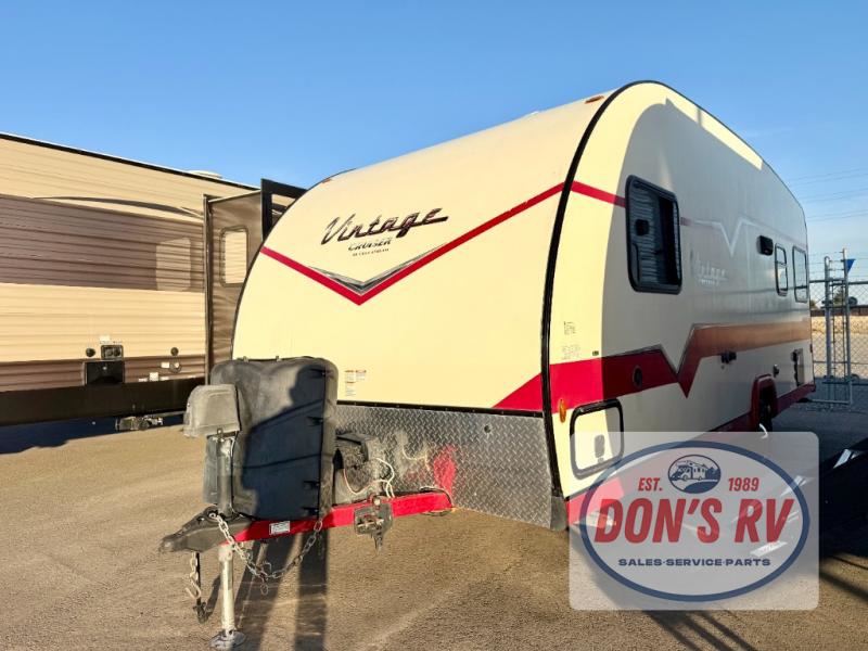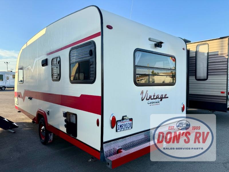 Any Vintage Cruiser model will bring you a lightweight and fun vintage vibe from the 50's when life was simpler and the pace was slower and more relaxed. These 20-26-foot models put state-of-the-art conveniences into the look of yesteryear to bring you a camping experience like no other. The Vintage Cruiser can easily be towed by your family SUV or Mini-van, and each unit features Congoleum non-stick flooring, Roanoke light Cherry cabinetry with flat panel vintage cabinet doors and drawers, LED lighting both inside and out, and a full dry bath all nestled within a welded tubular aluminum frame enclosed with a vacuum-bonded laminated fiberglass exterior including a one piece fiberglass roof.