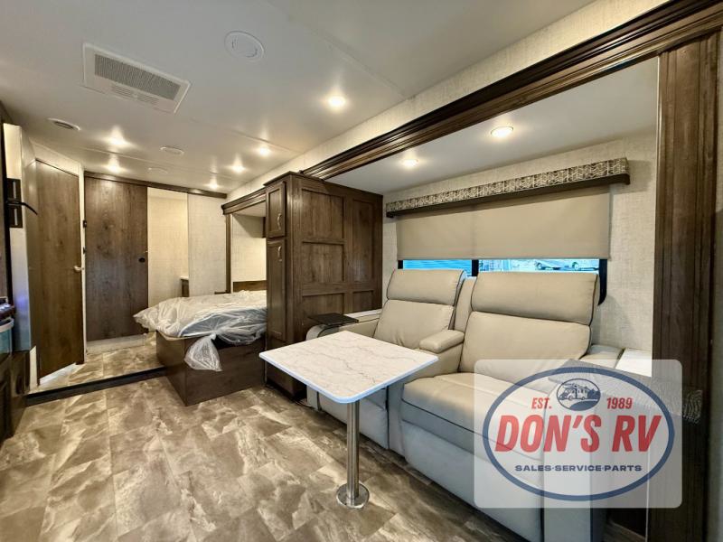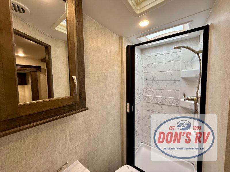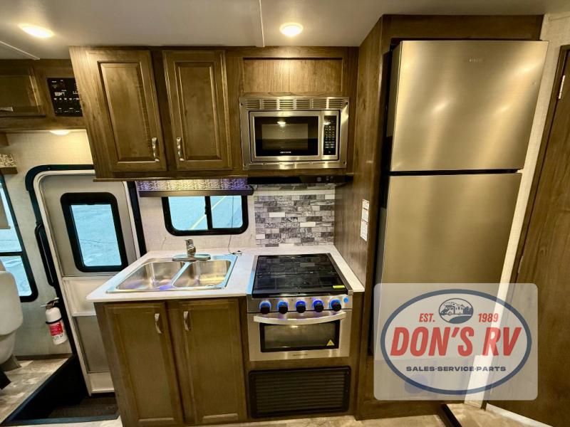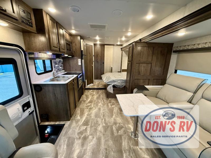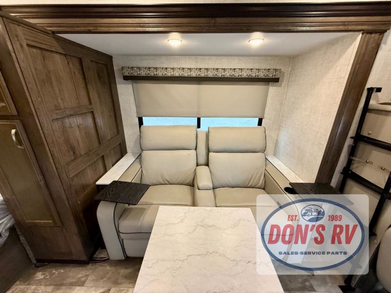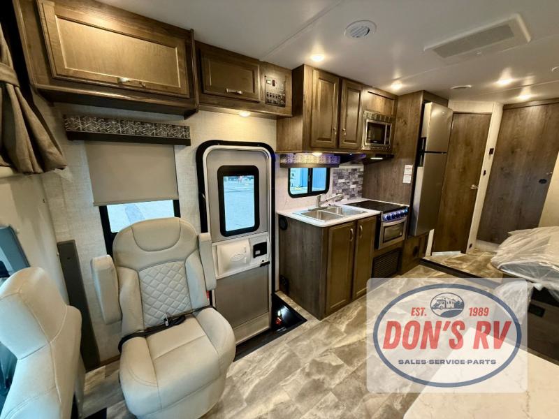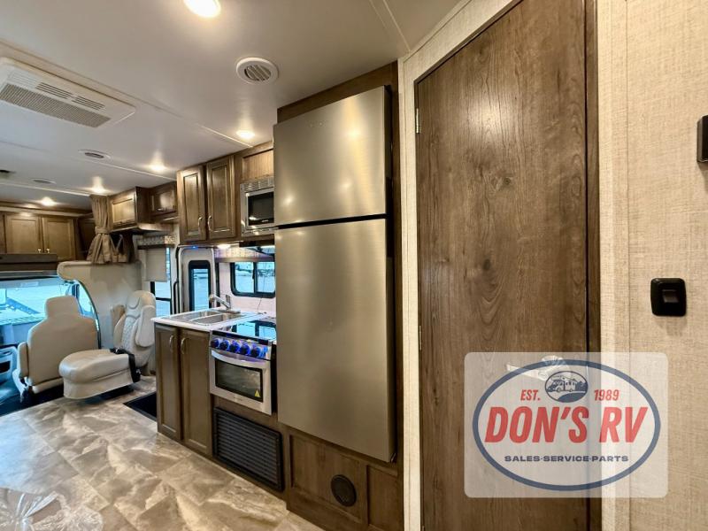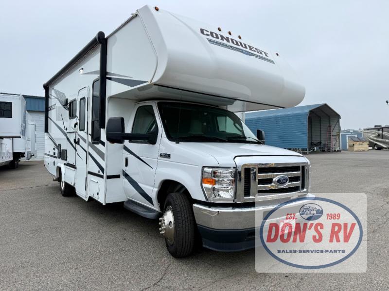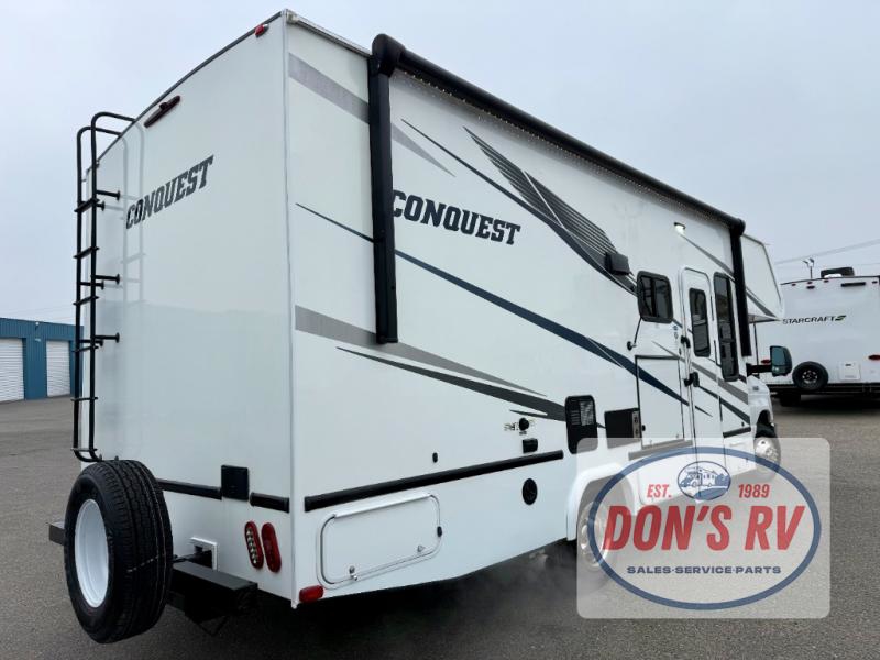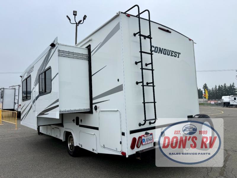 If you want to get out and see the world around you, there is nothing better than this Conquest Class C gas motorhome to help you get there! You will love spending time indoors because the large slide opens up the interior to make it easy to spend time with loved ones, and since there is sleeping space for six people with the RV queen bed, the Theater Seats, and the bunk above the cab, you will be glad that the whole family can join you. While you create one of your favorite dishes on the three-burner cooktop, your friend can sit in the lounge chair to keep you company, or they can head to the double-door refrigerator to grab the next set of ingredients for your meal.