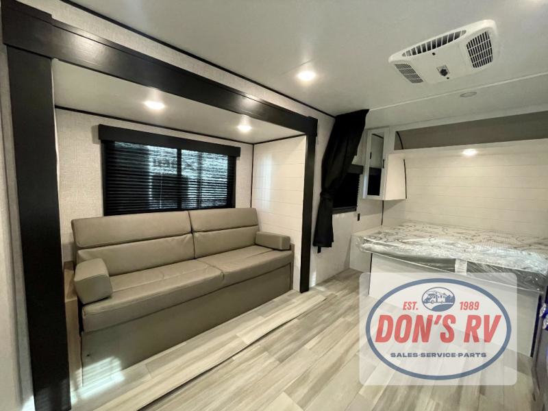 The Autumn Ridge travel trailers by Starcraft are easy to tow and easy to love! Each one is constructed with a durable Magnum Roof system, black front diamond plate protection, and fiberglass insulation so you can camp well into the colder months. The kid and pet friendly residential vinyl flooring will be easy to keep clean, and you'll love the hardwood cabinet doors, pleated blackout night shades, and pressed membrane kitchen countertops. A ceiling mount Bluetooth speaker means you can listen to your favorite tunes as you visit with friends and family, plus there is a power awning with LED lights for an inviting outdoor living space. The Autumn Ridge also comes with the Xtend Solar I Package with a 200-watt solar panel and a 30 amp controller for off-grid capabilities!