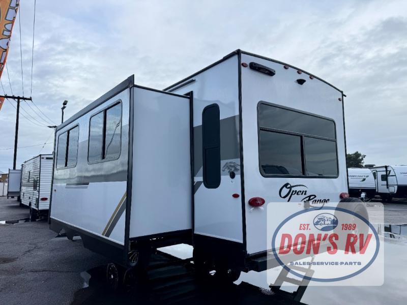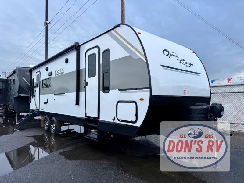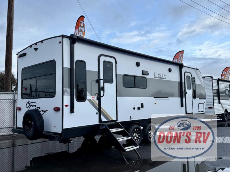 With any Colt travel trailer by Open Range RV, you can be sure you're getting a budget-friendly unit designed to fit your lifestyle! Each one is built to last with a PVC roofing membrane and built-in A-frame, plus there are nitrogen-filled radial tires and self-adjusting electric brakes for easy towing. You will appreciate the utilities that include 30-amp service, an A/C unit, and an on-demand tankless water heater. A few interior comforts include vinyl flooring throughout, solid hardwood cabinet doors, and residential grade kitchen countertops to make your space feel more like home. There are additional features available, depending on the edition you choose, along with available options to further customize your Colt travel trailer!