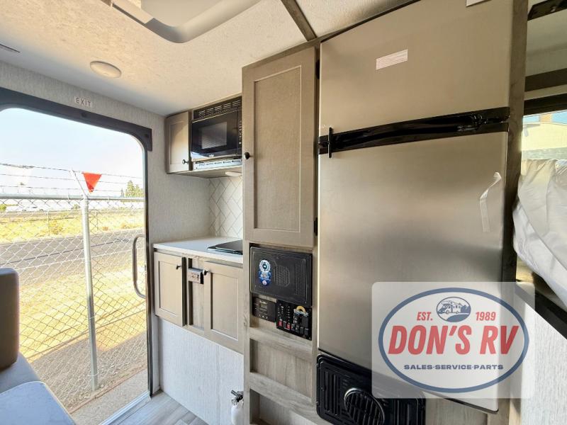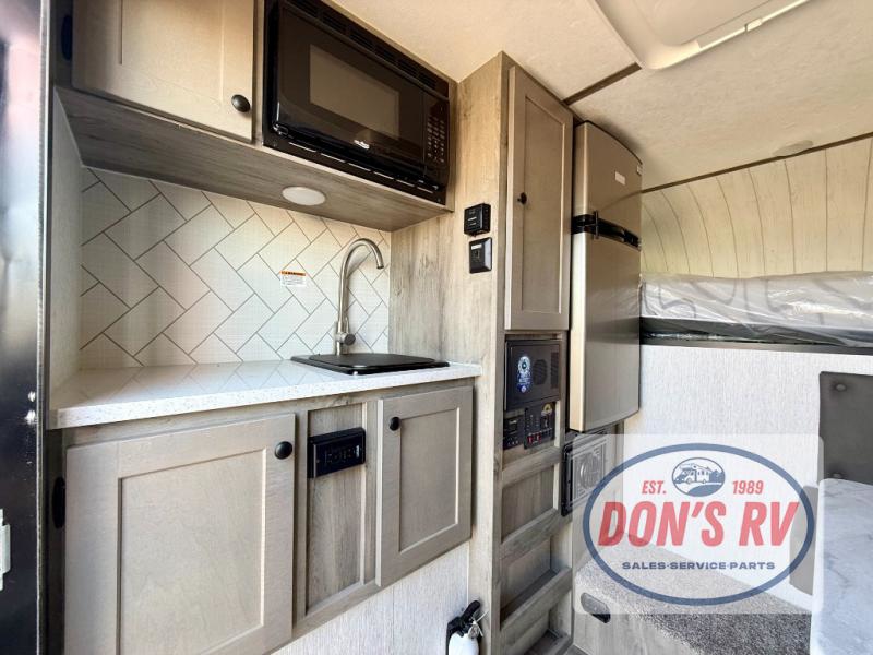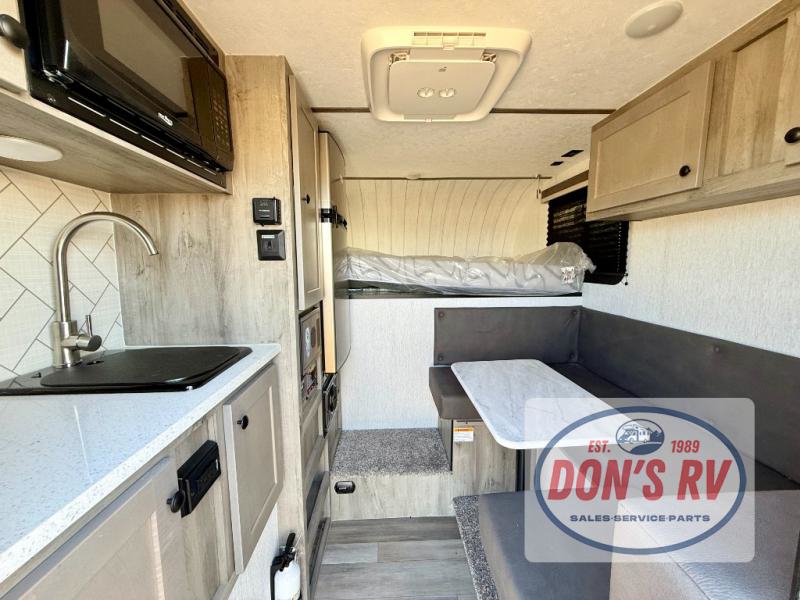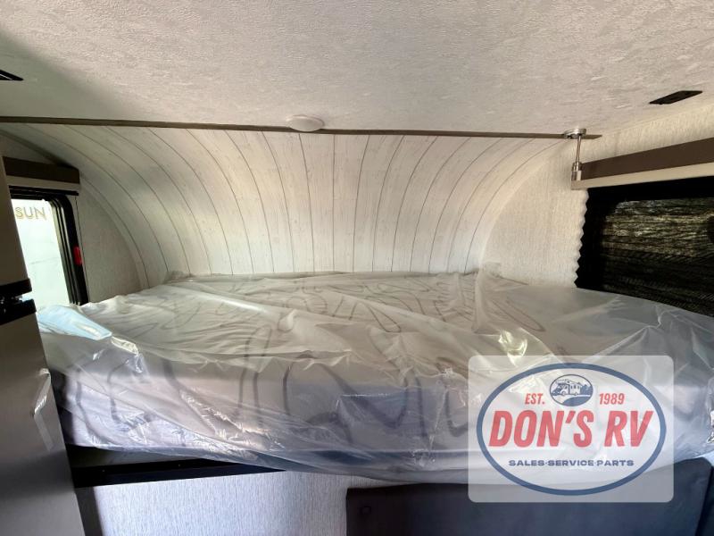 With any Sun Trek truck camper by Sunset Park RV, you will find a durable camper made to last thanks to the vacuum bonded laminated sidewalls and one-piece PVC roof membrane. You will also appreciate your choice of white or gray sidewalls, plus there are manual jacks outside and a 100-watt solar panel for some off-grid power. Inside, a power roof vent will help keep air moving, and you can choose an optional roof A/C if you enjoy camping in the summertime. Additional interior comforts include LED lights, tinted windows and solid surface countertops with a sink cover!