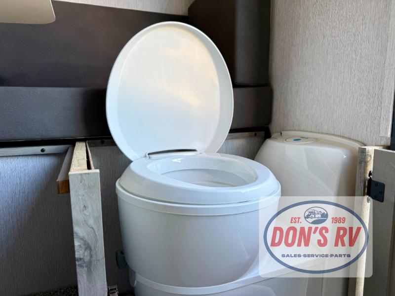 You're sure to find comfort in this truck camper for two! The front bed provides a great night's rest, and there is added seating at the foot of the bed and along the side. And a convenient toilet will let you skip the camp's facilities in the middle of the night. This unit also includes counter space, a sink to wash up and a 4.5 12V refrigerator to keep food fresh.
