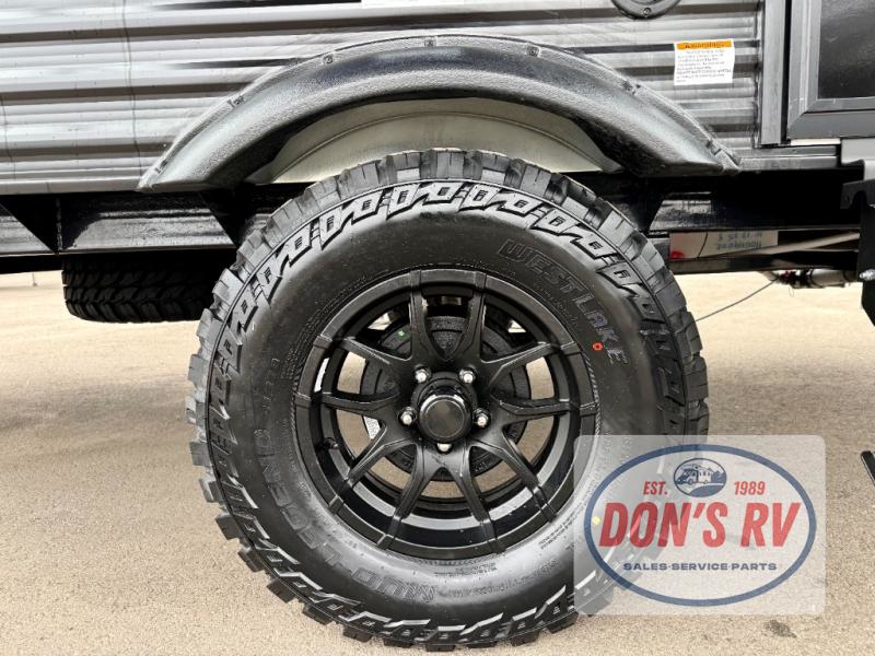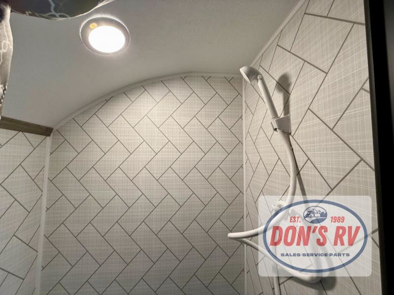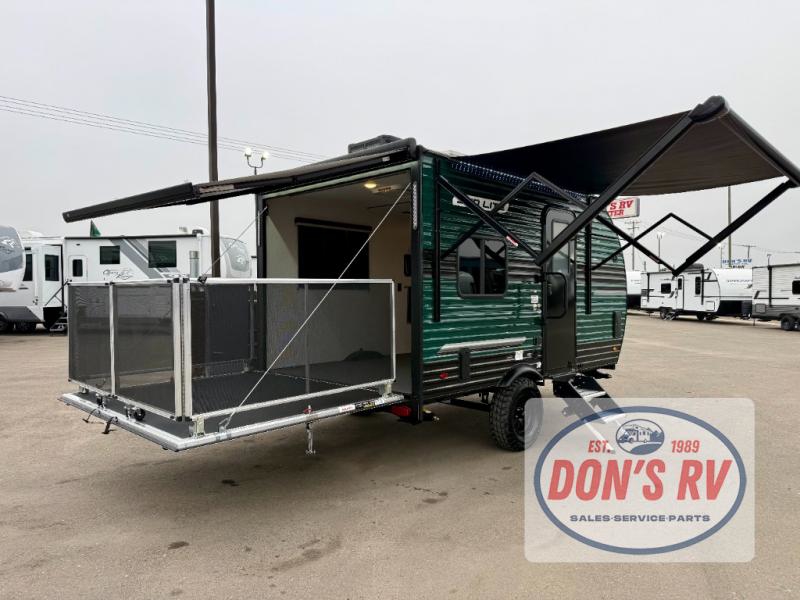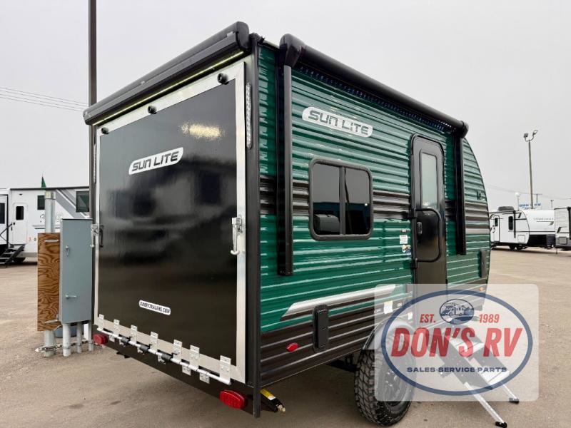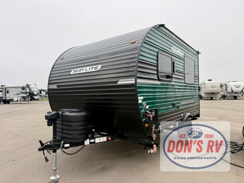 You can trust the build and enjoy your experience with any one of these Sunset Park RV Sun Lite travel trailers or toy haulers! Their aerodynamic profile is not only easy to haul, but also saves on fuel. They are built to withstand years of traveling even though they are lightweight with a diamond plate rock guard, a one piece PVC roof membrane, Dexter Spring-Leaf axles, and tinted safety glass windows. Some comfort standards you are sure to enjoy are the two-burner stove top range with hood, light and fan, plus the refrigerator and microwave, and an outside shower to help keep the dirt outdoors where it belongs.
