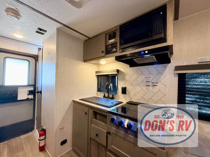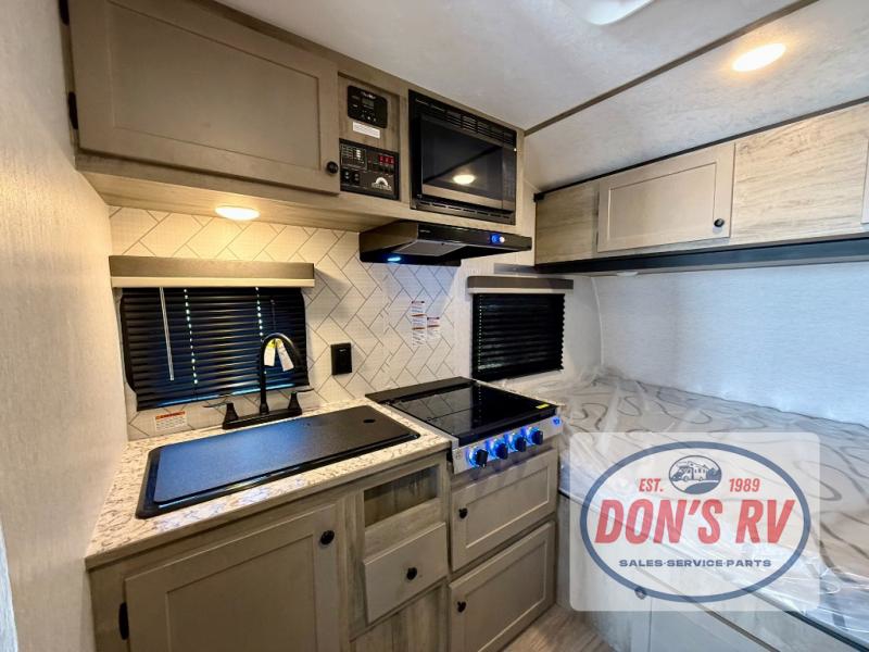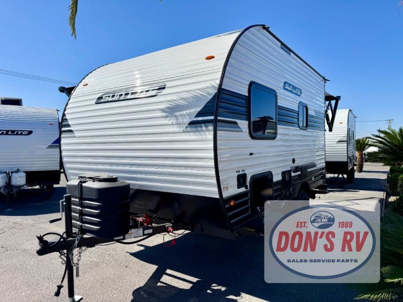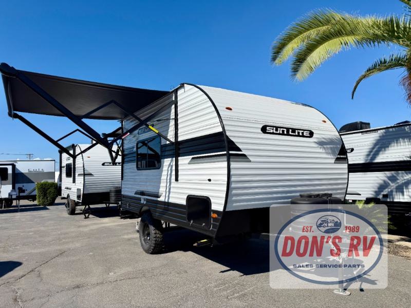 You can trust the build and enjoy your experience with any one of these Sunset Park RV Sun Lite travel trailers! Their aerodynamic profile is not only easy to haul, but also saves on fuel. They are built to withstand years of traveling even though they are lightweight with a diamond plate rock guard, a one piece PVC roof membrane, Dexter Spring-Leaf axles, and tinted safety glass windows. Some comfort standards you are sure to enjoy are the two-burner stove top range with hood, light and fan, plus the refrigerator and microwave, and an outside shower to help keep the dirt outdoors where it belongs.