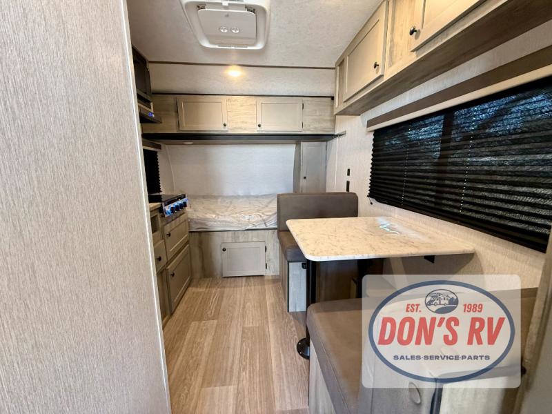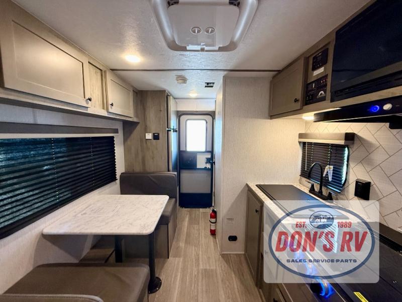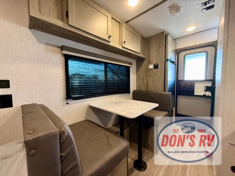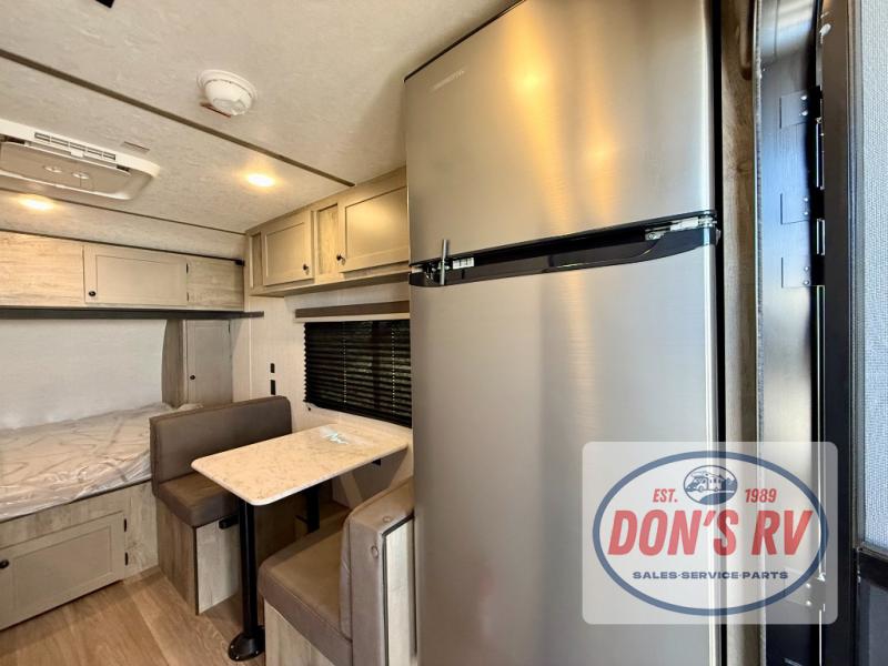 This travel trailer is perfect for couples who want to getaway together! The front bed offers a comfortable place to lay your head at night. When you're not using the booth dinette to enjoy a meal that you prepared with the two burner cooktop or playing a card game, you can transform it into an extra sleeping space. You can start your mornings feeling clean and fresh after showering in the tub with unwanted steam removed with the power roof vent.