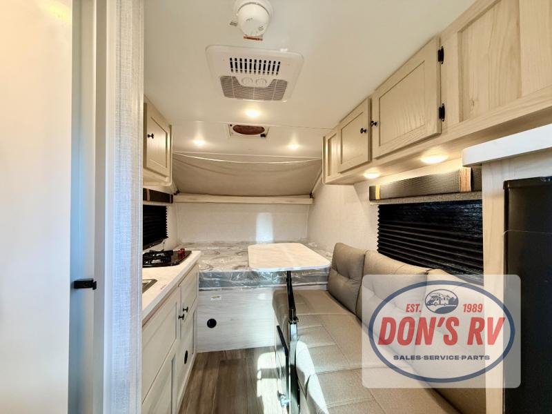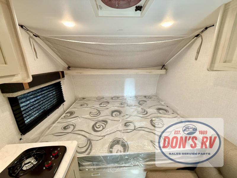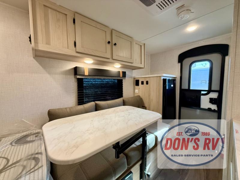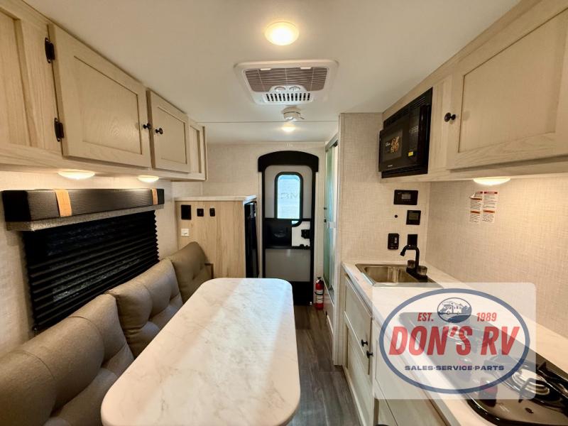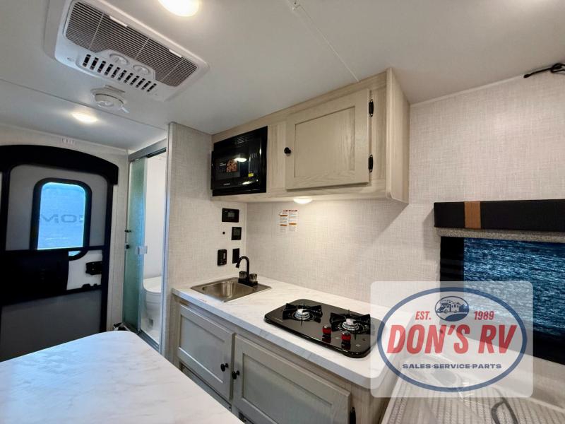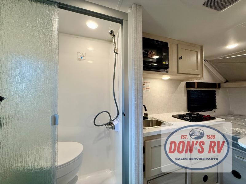 It will be so easy to enjoy camping in this travel trailer for three campers. The front queen bed will provide a comfy place to rest your head each night, and there is an overhead shelf to keep your belongings out of the way. A jackknife sofa will be the perfect place to relax, dine, and even let an additional camper sleep over. You'll find everything you need to prepare meals each day, including a two burner cooktop and a microwave oven, plus a 3.3 cu. ft. Super Chill 12V refrigerator for the leftovers!