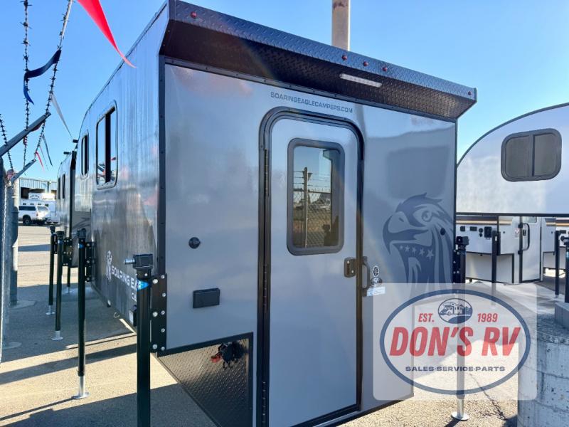 Each one of these Soaring Eagle ADLAR truck campers take the concept of entry level campers and adds real functionality to it! Their entire construction consists of an all aluminum tubular construction for better strength, lighter weight, and indifference to water. The smooth fiberglass exterior and rugged black diamond pate aluminum skin around the lower perimeter will turn heads in the highway. There are LED exterior marker/clearance lights and LED exterior security light over the entrance door for you to see clearly at night. Come find your favorite one today!