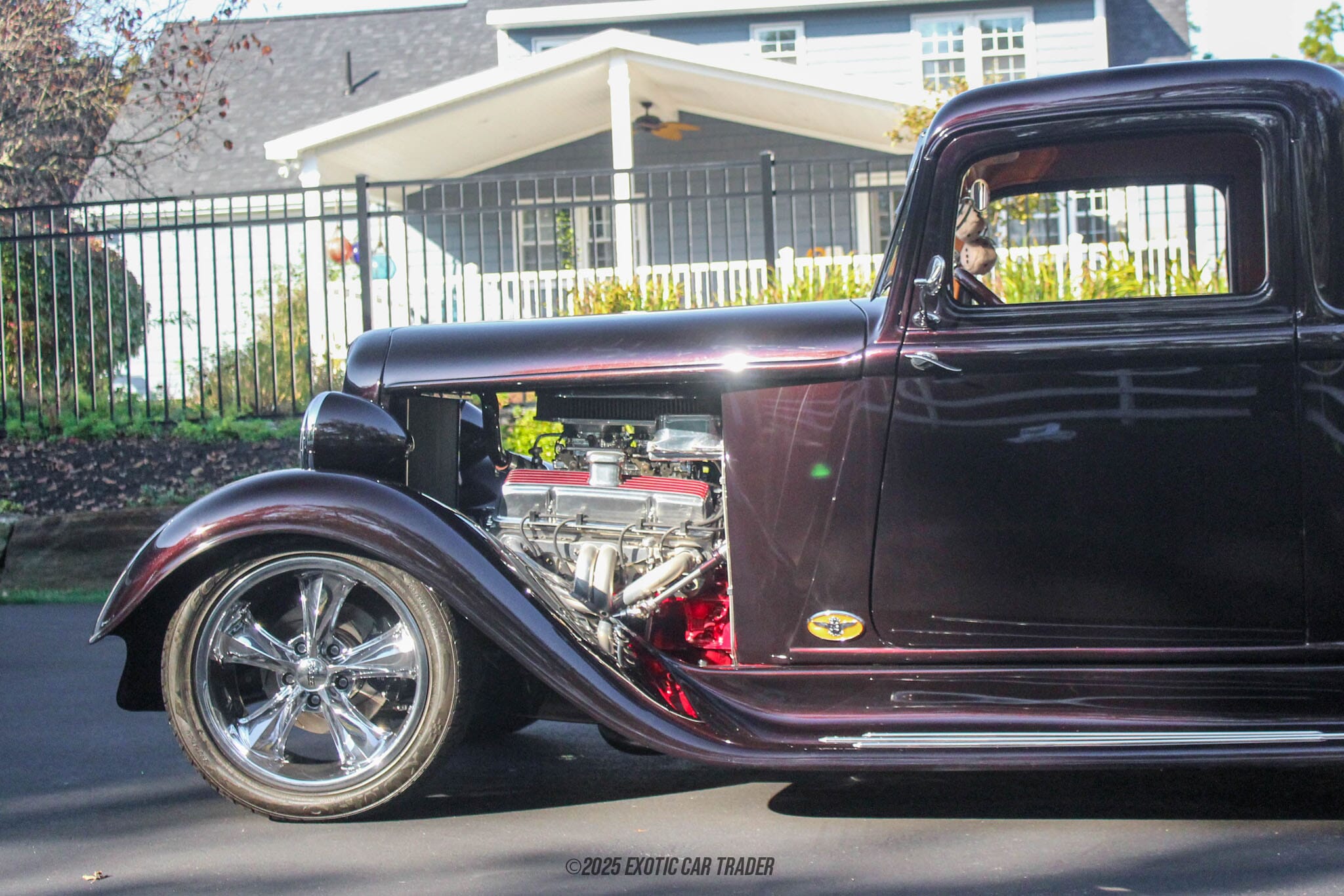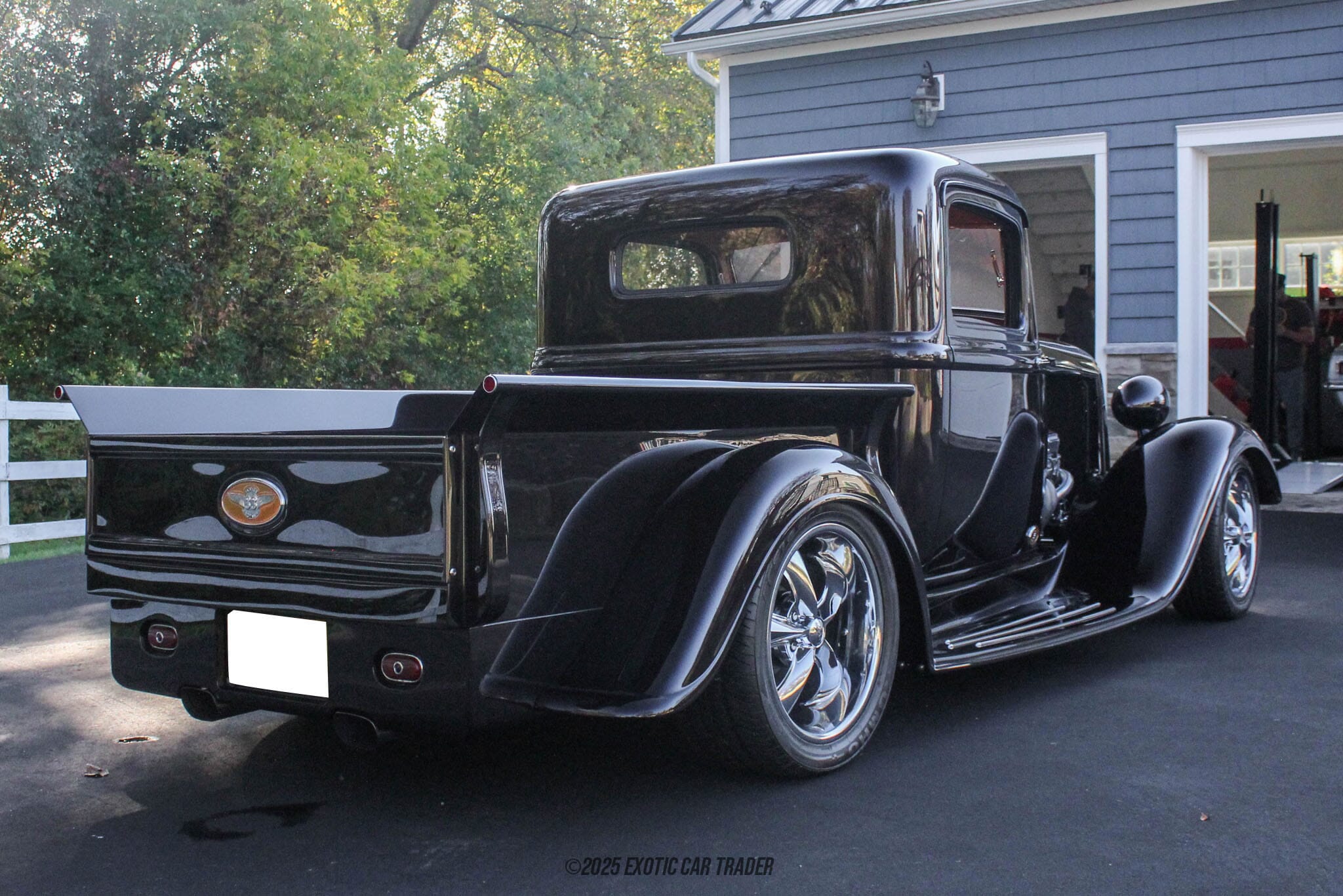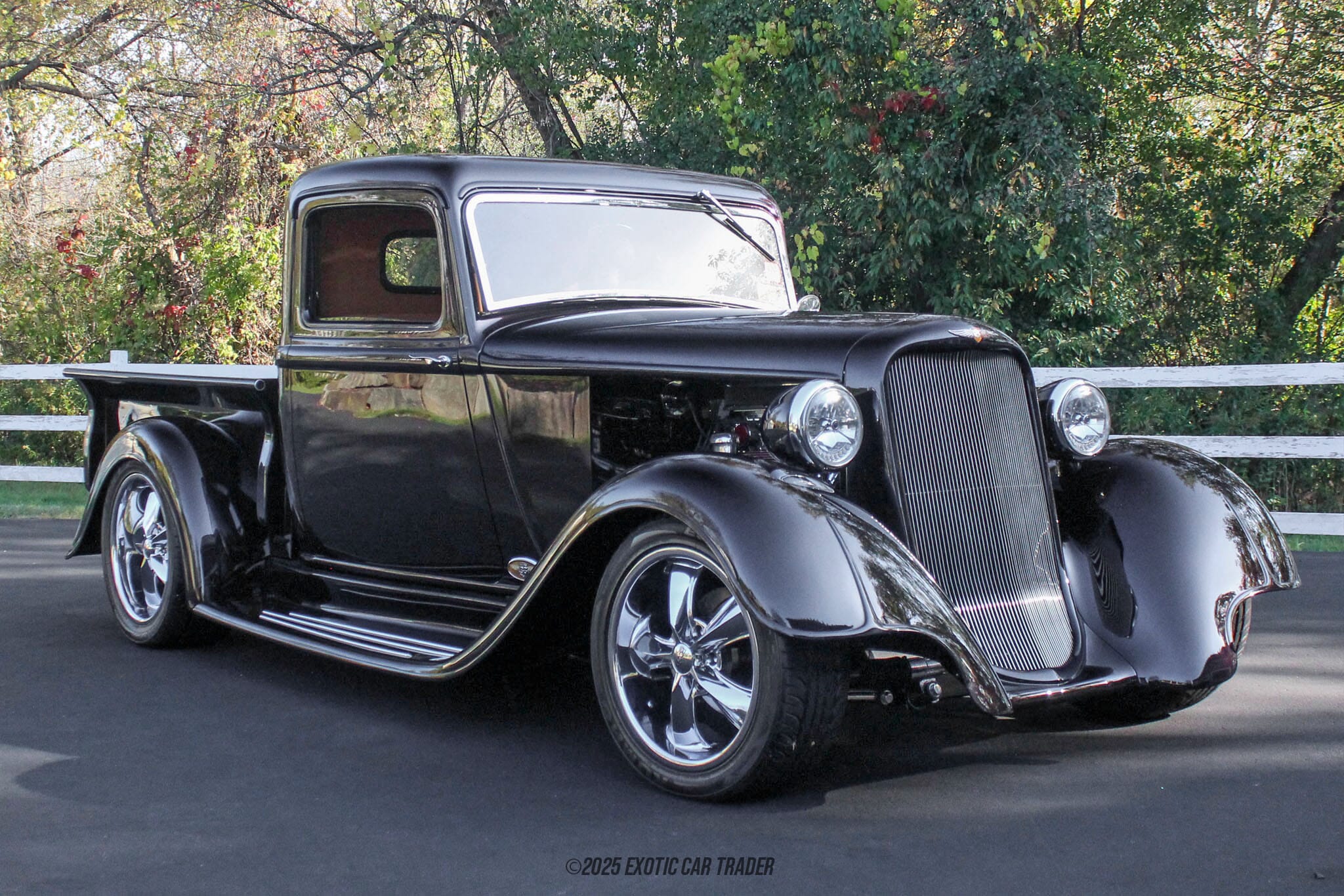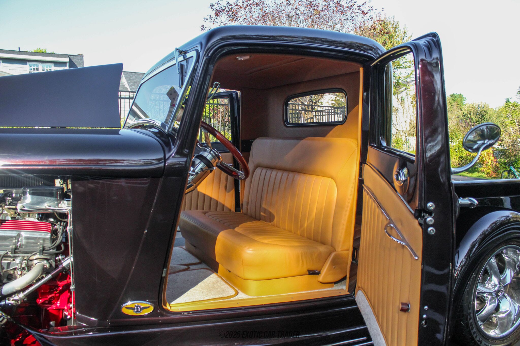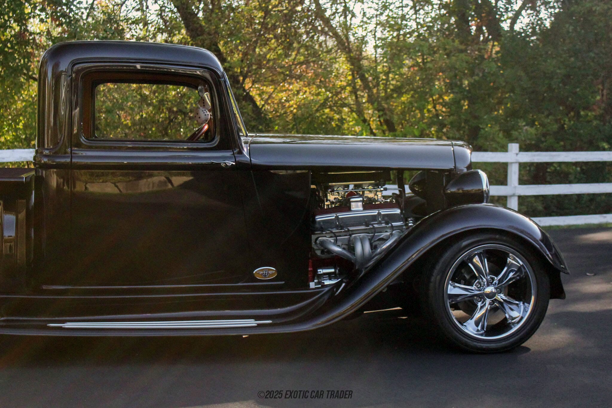 - 1933 Dodge Pickup- 427ci V8 Small Block Chevy (Dart SHP Block, Bored & Honed To 4.125â€)- Dual 4-Barrel Carburetors- Automatic Transmission- RWD- Black Exterior- Tan Interior- Forged Internals: Callies Comp Star Forged Steel Crankshaft, H-Beam Rods, Mahle Forged Flat Top Pistons (Thermal & Anti-Friction Coating), Mahle Plasma Moly Rings, ACL Racing Bearings- Custom Hydraulic Roller Cam, Lifters & Rocker Arms (~10.4:1 Compression, ~5cc Flat Top Pistons)- Manley 1-Piece Chromoly Racing Pushrods- Dual Edelbrock RPM Air Gap Quad Intake Manifold & Carburetors- Summit Racing Digital Electronic Ignition System w/ Rev Limiter- Mellings High-Volume Oil Pump- Canton Racing 6.5 Qt Oil Pan w/ Windage Tray & Trap Door System- Liberty Performance Timing Gear Drive & 2-Piece Timing Cover- Custom Headers, X-Pipe & Performance Exhaust System- High-Capacity Radiator & Custom Cooling Lines- Custom Transmission Crossmember, Billet Transmission Pan, Performance Transmission- Frame Smoothed, Reinforced & Fully Painted To Show Quality- Custom Firewall Reworked & Smoothed- Extensive Bodywork: Blocking, Sanding, Gap Correction, Fender & Hood Alignment, Tailgate Fabrication, Hidden Hinges- High-Quality Paint Finish On Body & Frame- Custom Billet Trim Pieces & Dodge Brothers Medallions- Chrome Wheels w/ Custom Fitment- Fully Custom Leather Interior w/ One-Off Design- Contoured Seats w/ Integrated Rear Pockets Upholstered In Domestic Leather (5 Hides, 250 Sq. Ft.)- Aircraft-Style Seat Belts (Modern Safety Integration)- Wool Carpeting w/ Canvas Binding & Custom Floor Mats- Carpet Padding & Insulation Underlayment- ABS + Hardwood Custom Interior Panels w/ Heat Shielding- Custom Headliner, Side Panels, Dash & Kick Panels- Thermozite Heat Shield Insulation For Comfort & Durability- Custom Billet Dash Trim & One-Off Design Details- Upholstery Labor Documented At 130+ Hours- Over $29,000 Documented In Engine, Fabrication, Upholstery, Labor Costs- Body & Paint Work: ~$28,000 (Empire State Chassis & Fabrication)- Upholstery & Leather Work: ~$7,000+- Custom Trim & Dodge Medallions: ~$4,500- Engine Build & Components: ~$20,000+