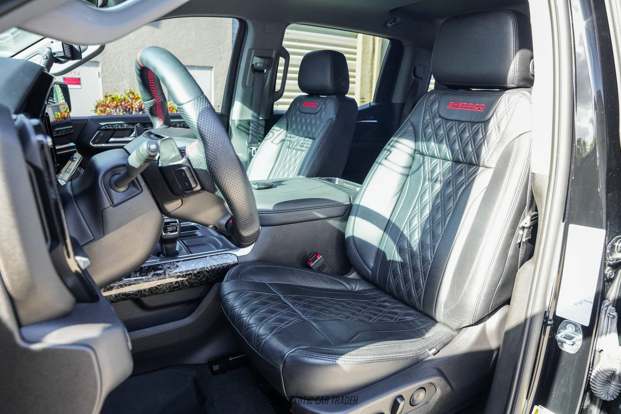 • - Designer Leather w/ Custom Black Double Diamond Stitched Accents & Sherrod Eclipse Logo In Headrest