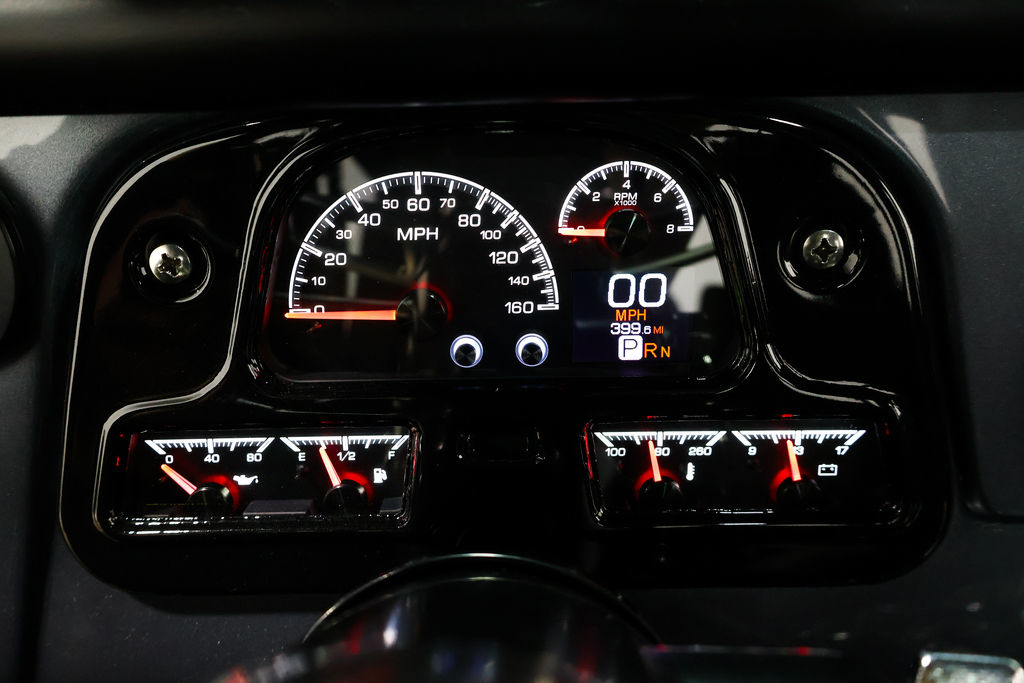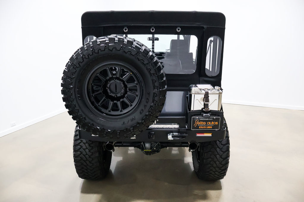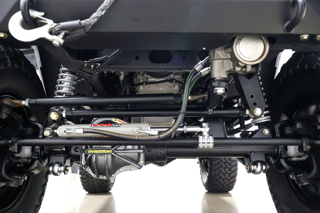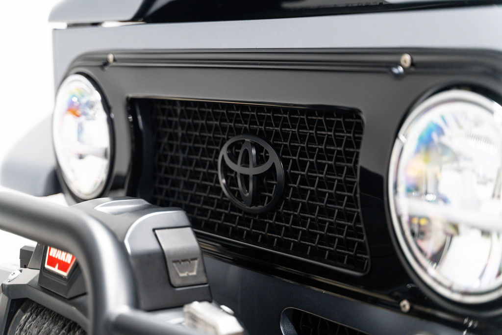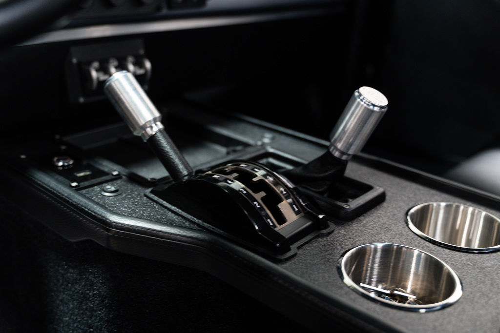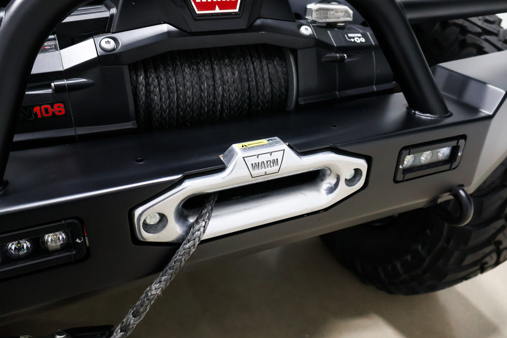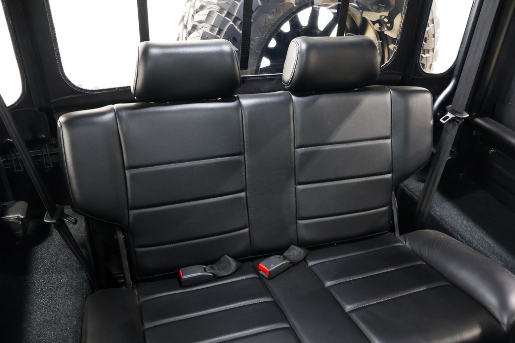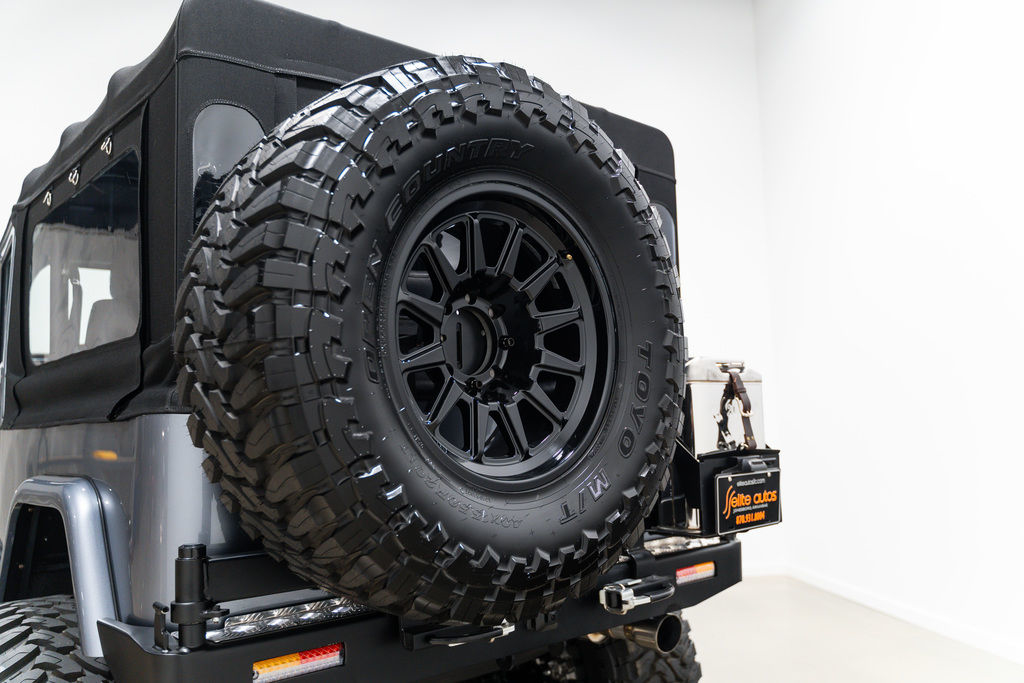 Completed as a ground-up build and is powered by a 650hp supercharged LT4 engine paired with an automatic transmission. The drivetrain is supported by a powder-coated chassis fitted with Dynatrac axles and Fox adjustable shocks, while Wilwood power disc brakes provide stopping performance and the vehicle is equipped with power steering. It rides on 40x15.50R20 Toyo Open Country tires mounted on 20-inch wheels. The exterior retains the classic FJ40 profile while incorporating modernized components consistent with the Resto-Mod build. The interior is trimmed in leather and features heated seats, a hand-stitched Sparco billet steering wheel, billet switchgear, air conditioning and an Alpine touchscreen infotainment system.