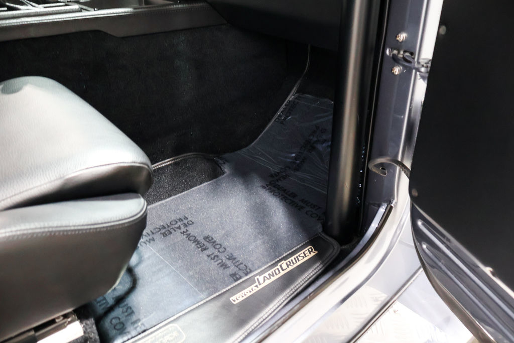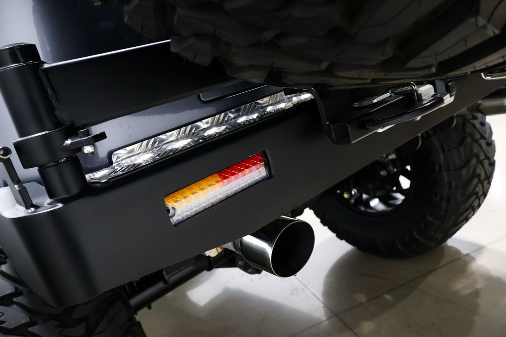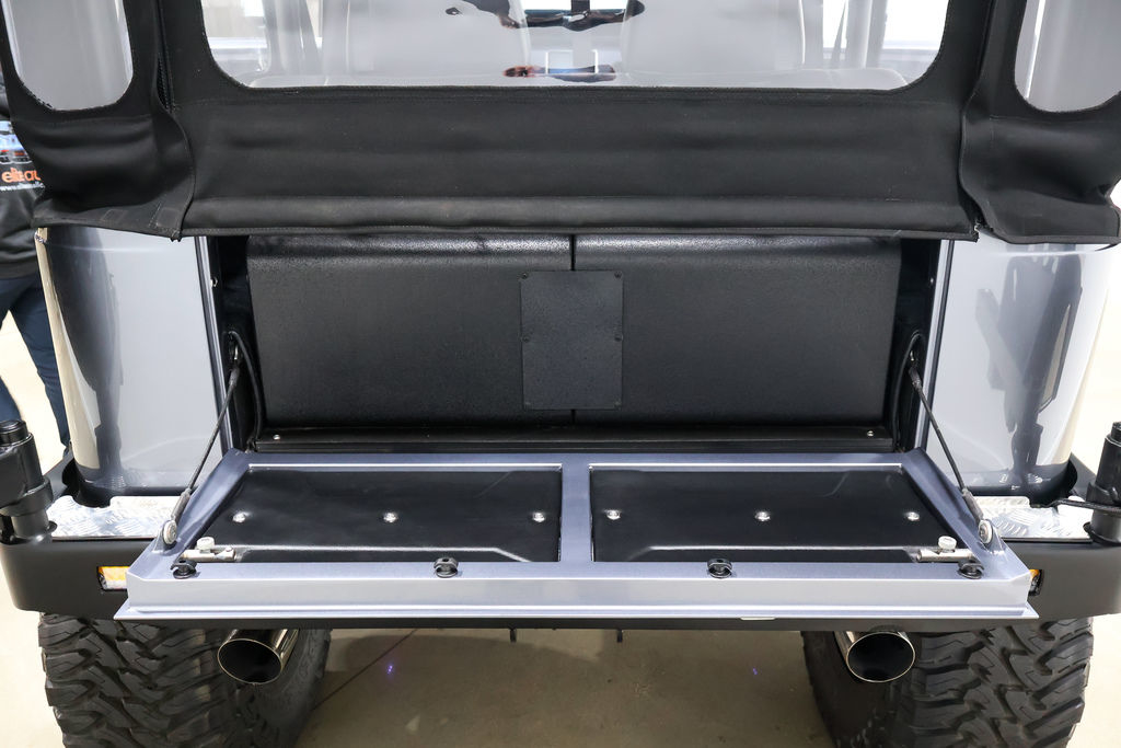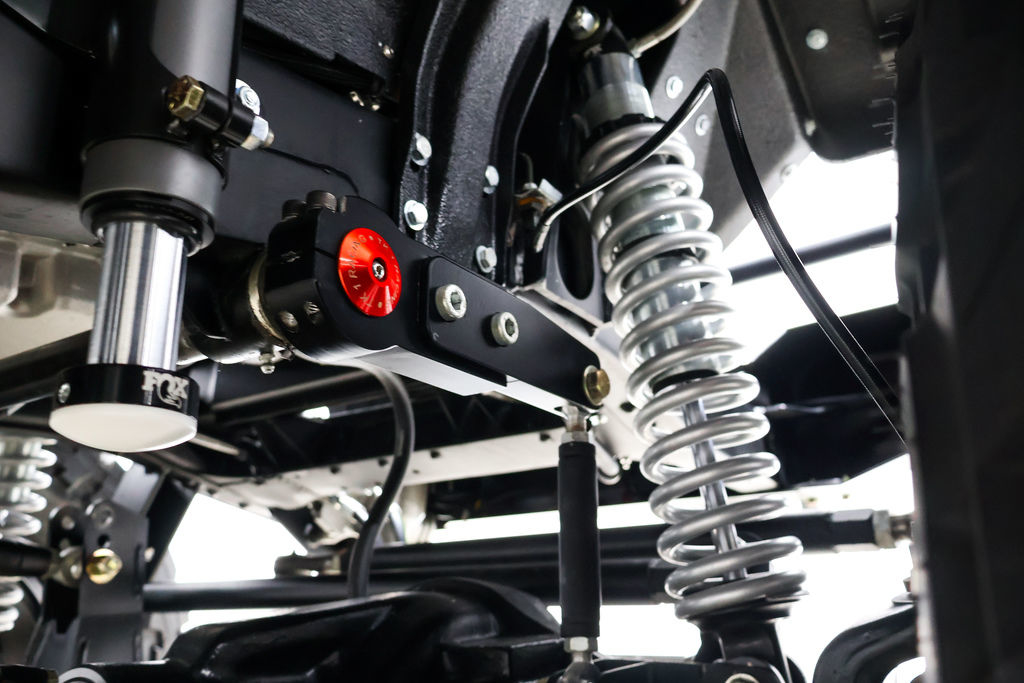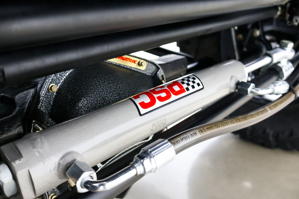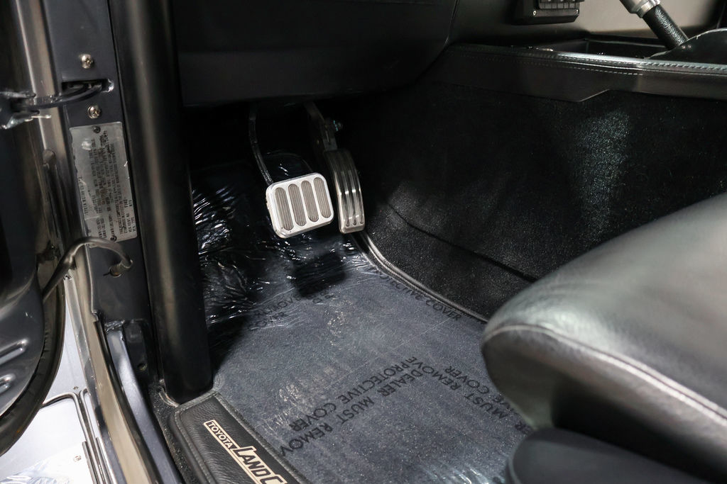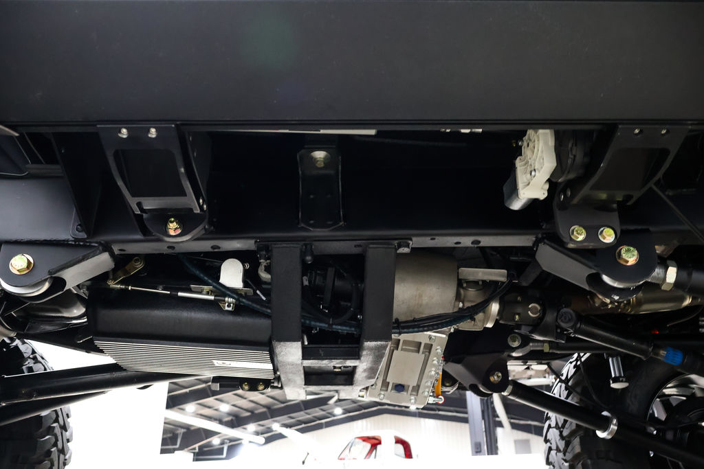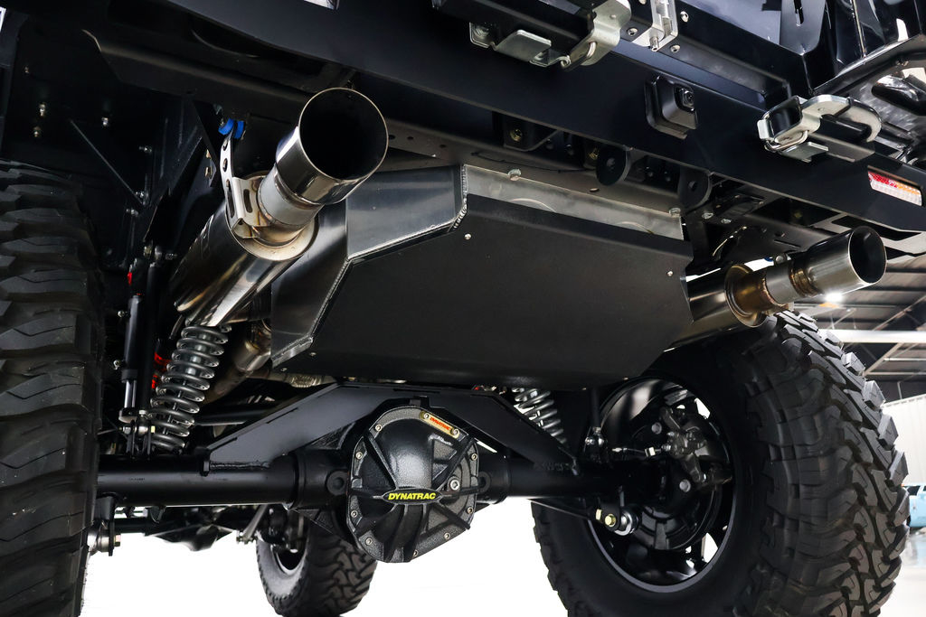 Completed as a ground-up build and is powered by a 650hp supercharged LT4 engine paired with an automatic transmission. The drivetrain is supported by a powder-coated chassis fitted with Dynatrac axles and Fox adjustable shocks, while Wilwood power disc brakes provide stopping performance and the vehicle is equipped with power steering. It rides on 40x15.50R20 Toyo Open Country tires mounted on 20-inch wheels. The exterior retains the classic FJ40 profile while incorporating modernized components consistent with the Resto-Mod build. The interior is trimmed in leather and features heated seats, a hand-stitched Sparco billet steering wheel, billet switchgear, air conditioning and an Alpine touchscreen infotainment system.