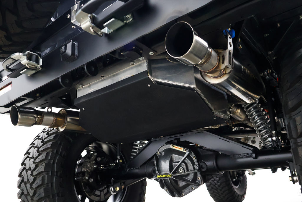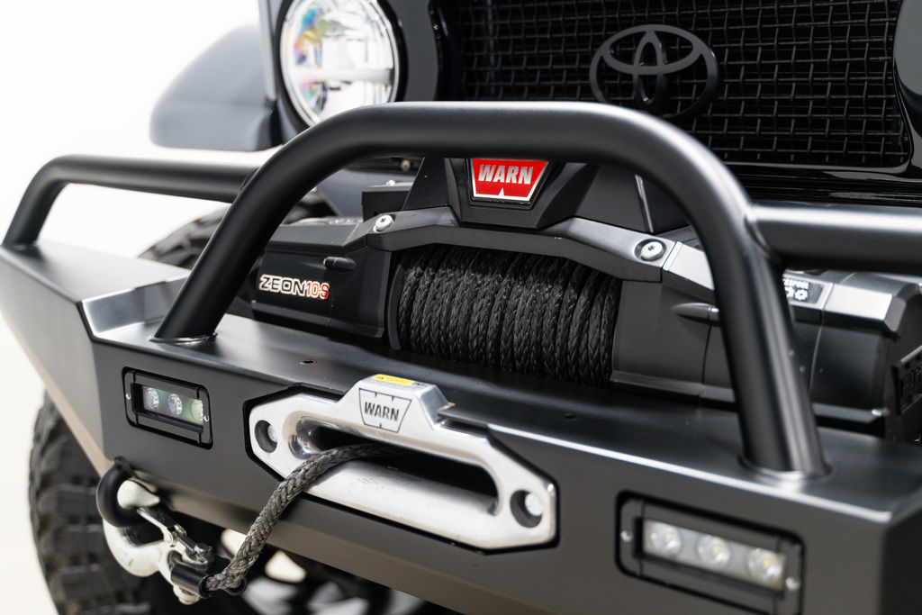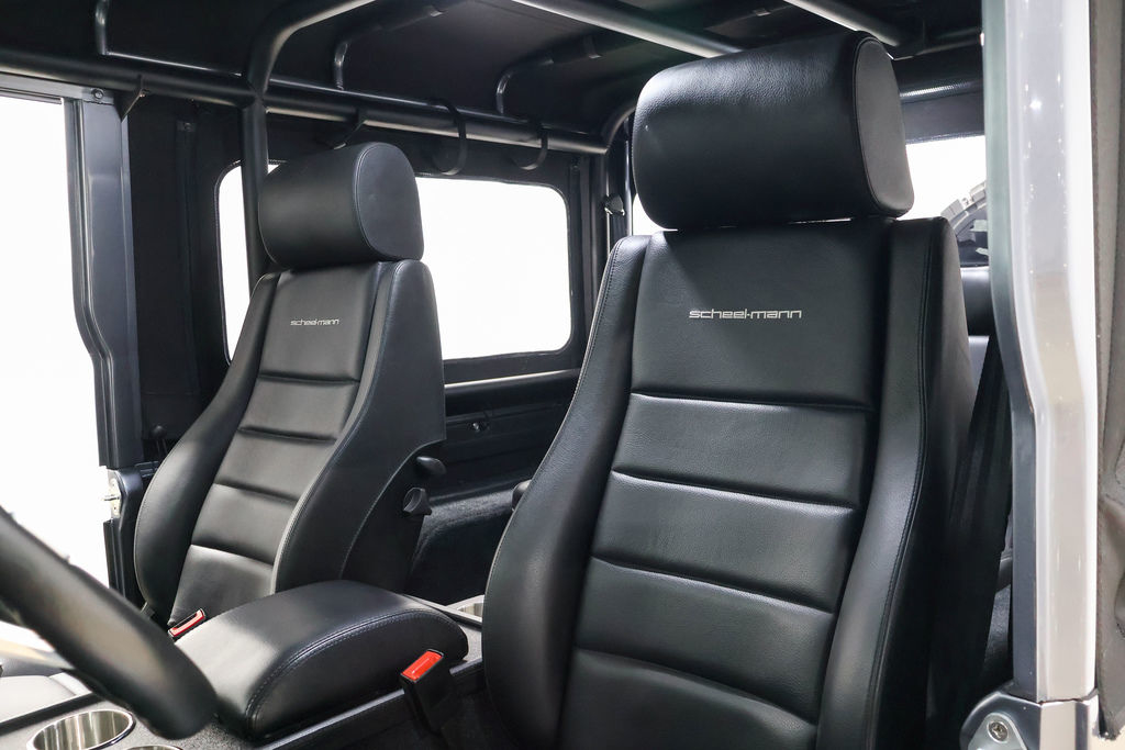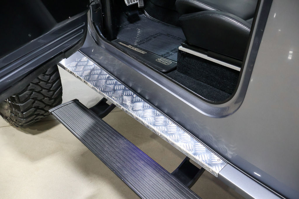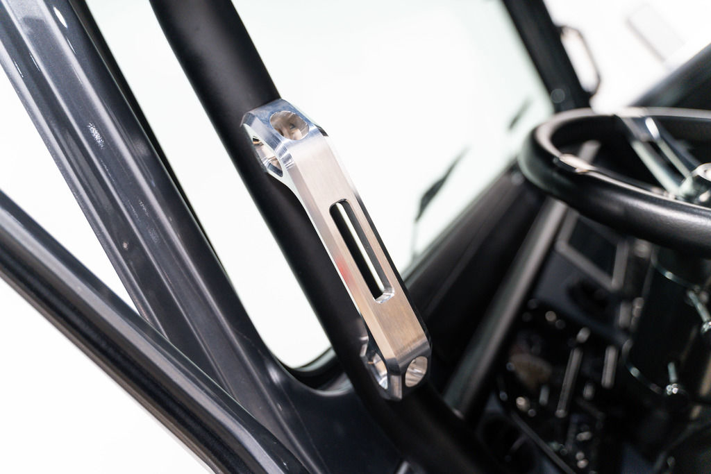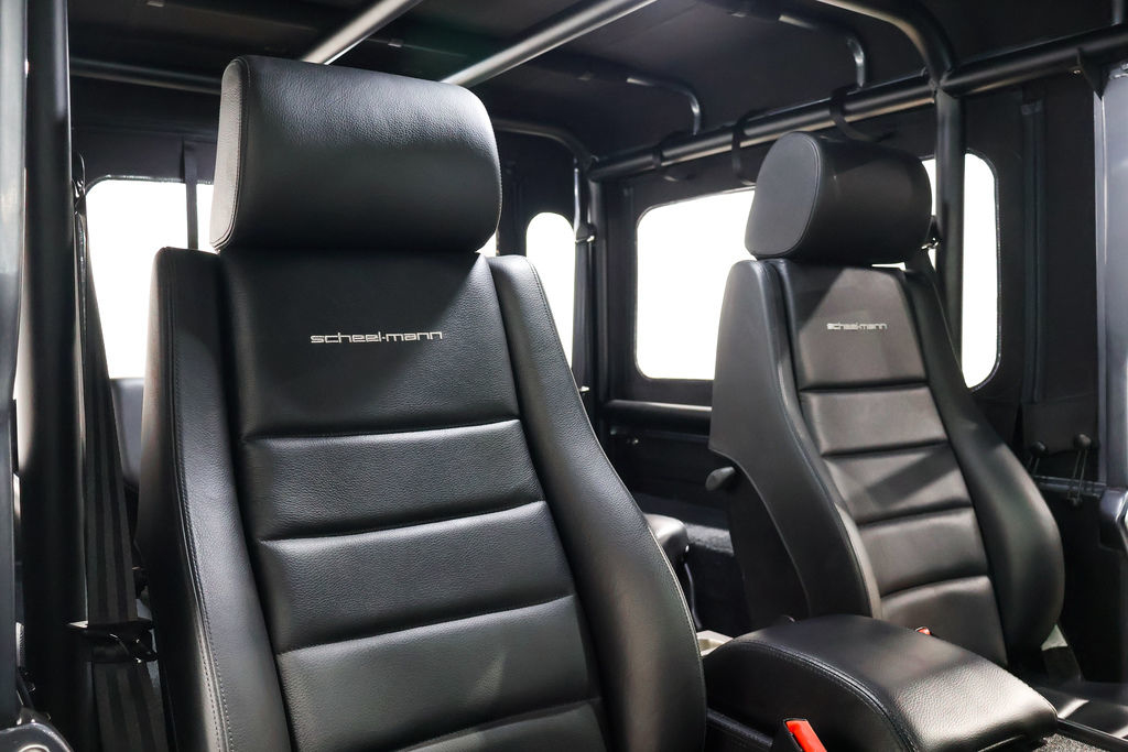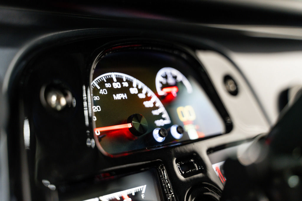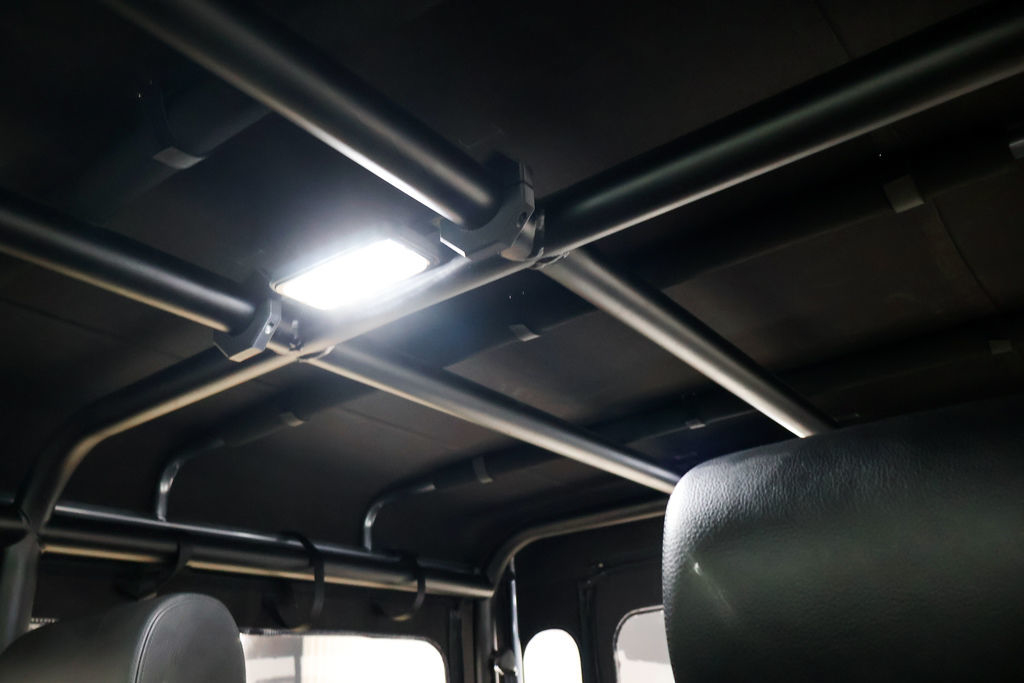 Completed as a ground-up build and is powered by a 650hp supercharged LT4 engine paired with an automatic transmission. The drivetrain is supported by a powder-coated chassis fitted with Dynatrac axles and Fox adjustable shocks, while Wilwood power disc brakes provide stopping performance and the vehicle is equipped with power steering. It rides on 40x15.50R20 Toyo Open Country tires mounted on 20-inch wheels. The exterior retains the classic FJ40 profile while incorporating modernized components consistent with the Resto-Mod build. The interior is trimmed in leather and features heated seats, a hand-stitched Sparco billet steering wheel, billet switchgear, air conditioning and an Alpine touchscreen infotainment system.