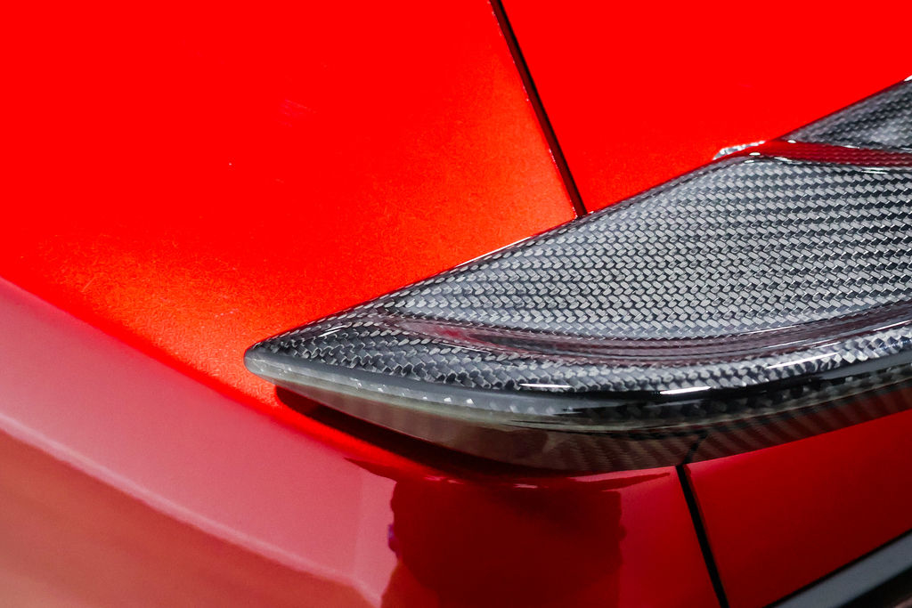 - Real Carbon fiber, front grill, front fog light bezels, front splitter, side skirts, rear diffuser, mirrors, hood insert, rear spoiler, rock guards