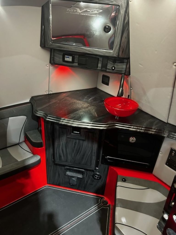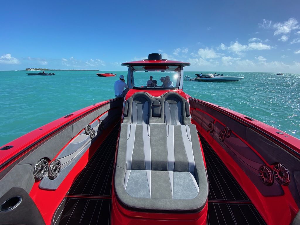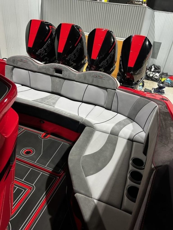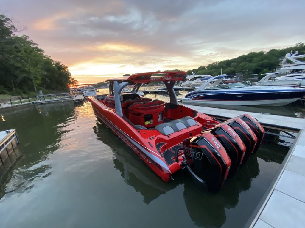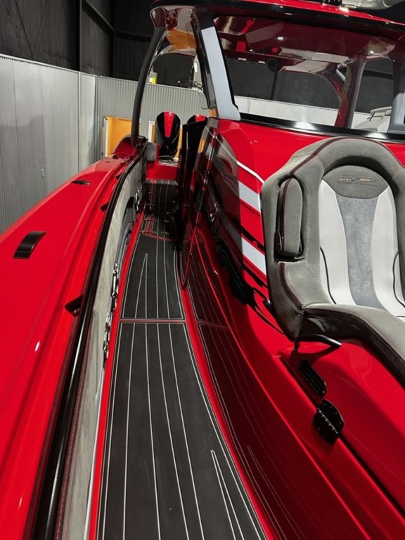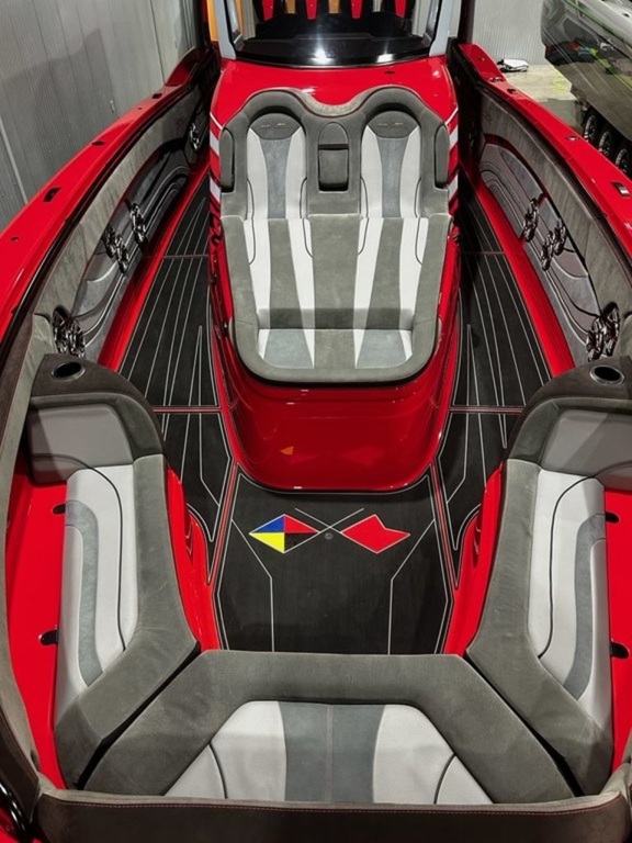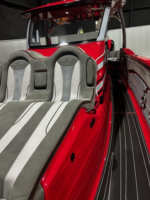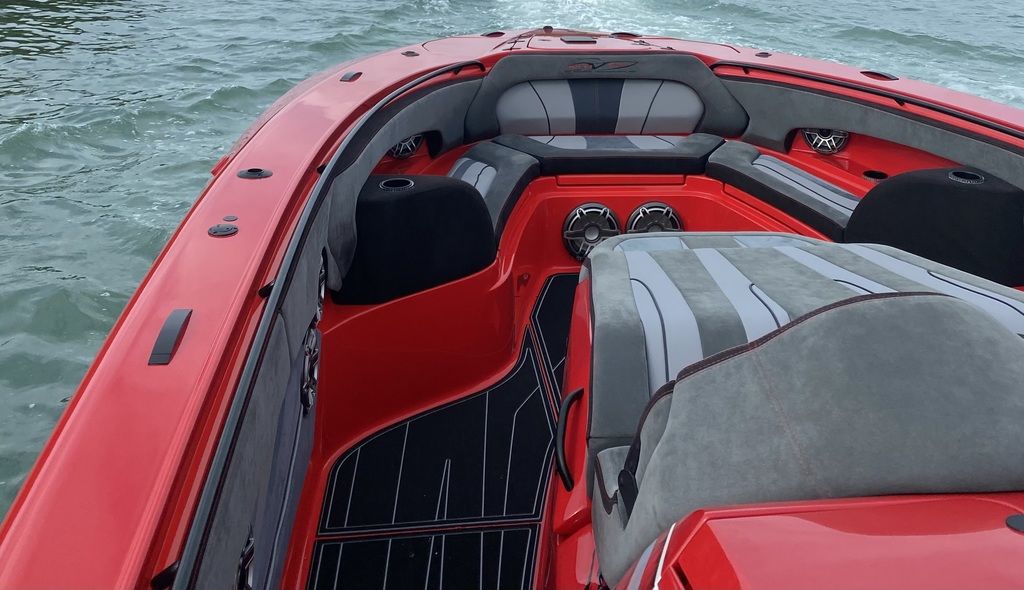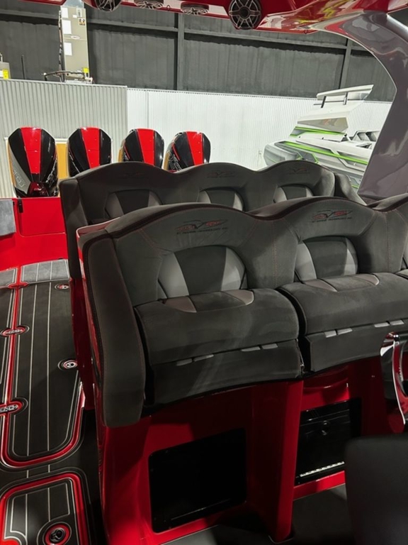 The patented “Slot V” hull offers a ride unlike anything else in the Vee Bottom world. The hull design utilizes twin keels, similar to a catamaran, yielding straight, stable, and predictable handling at all speeds. The step design also ventilates the hull and traps a boundary layer of air under the hull and between the twin keels. With the added bow flare, the MTI-V 42 is extremely dry riding even in extreme conditions in both head and following seas.