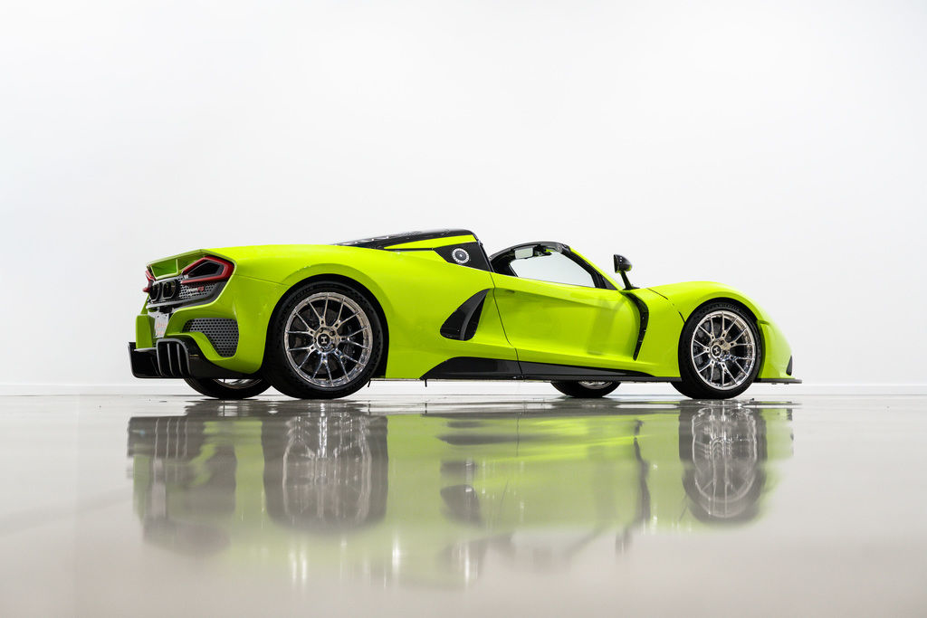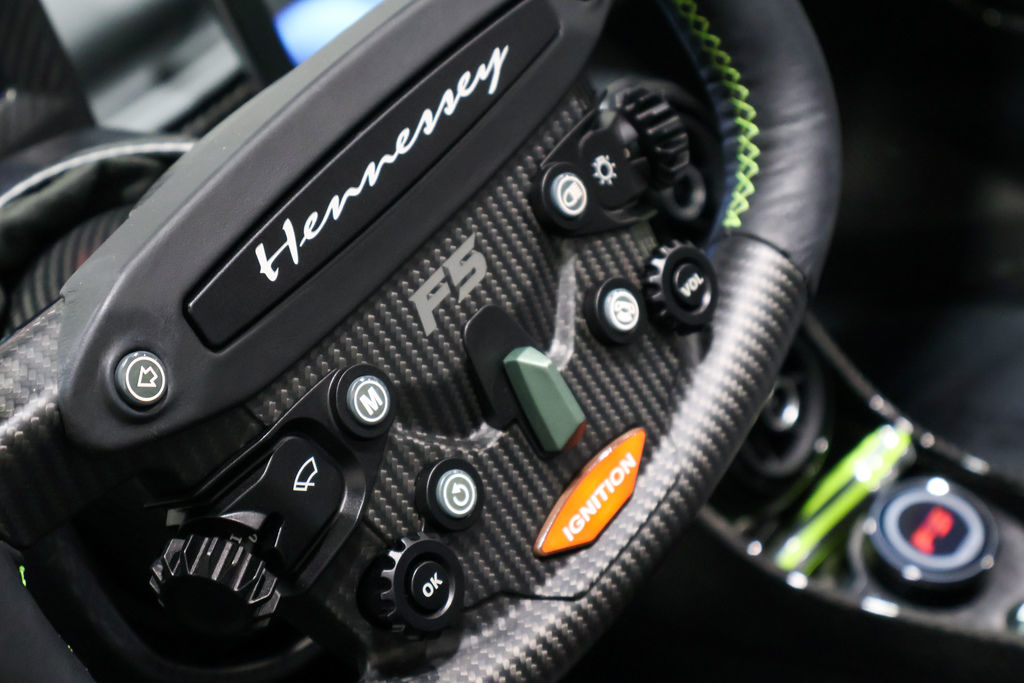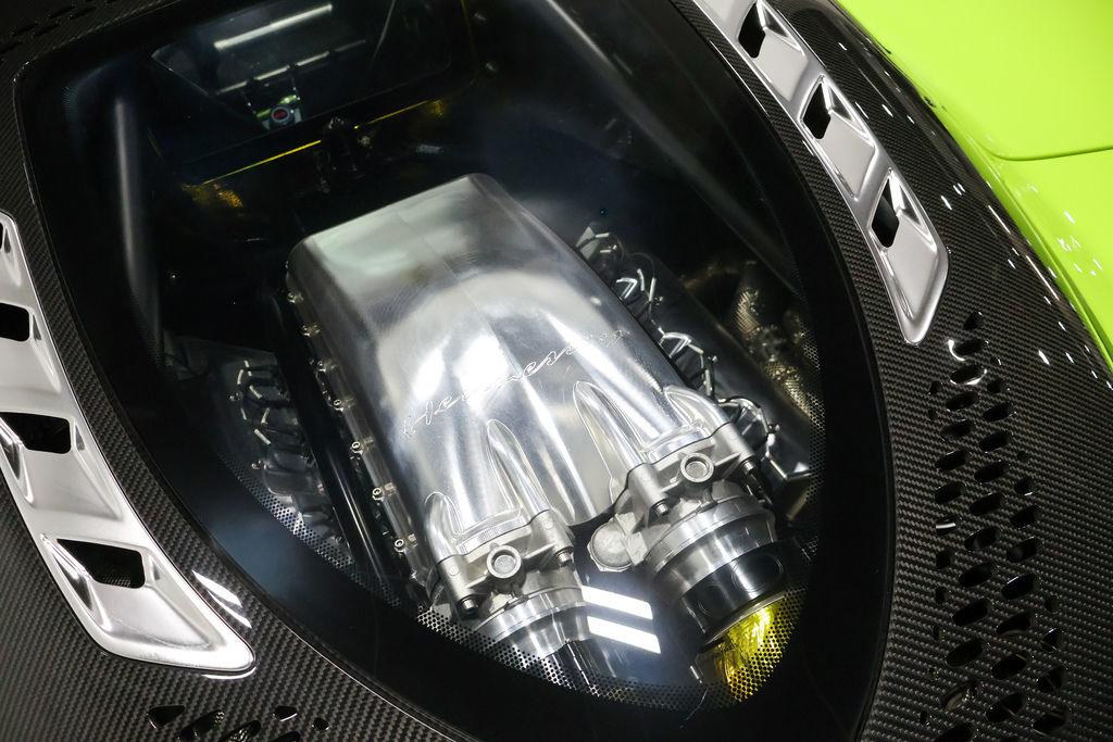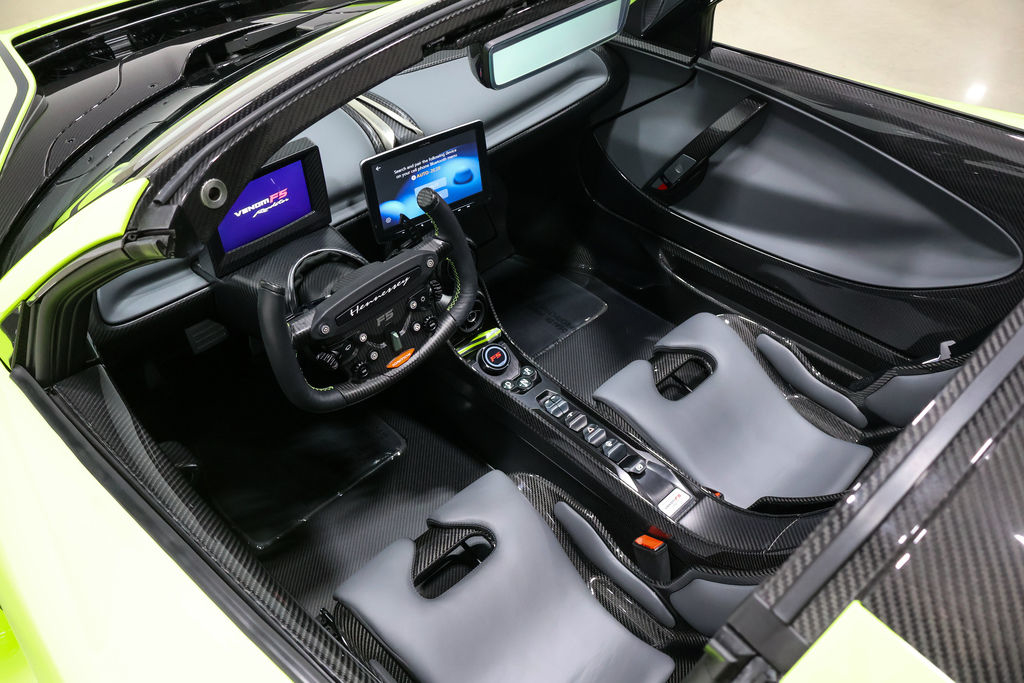 2023 Hennessey Venom F5 FOR SALE. Only 680 miles. Vin# HSVVNMF5RD0423017 Questions??? Call OR Text 8709318004 This 2023 Hennessey Venom F5 is the fifth of a planned 30 roadster variants produced by Hennessey Special Vehicles of Texas. Featuring a carbon-fiber monocoque wrapped in Banner Green carbon-fiber body panels, the car is powered by a Hennessey-developed 6.6-liter Fury V8 that features twin turbochargers and dry-sump lubrication and sends a factory-rated 1,817 horsepower to the rear wheels via a seven-speed automated manual transmission. Additional features include cross-drilled and ventilated carbon-ceramic disc brakes, double-wishbone suspension with adjustable Penske coilover shock absorbers, electrically assisted steering, staggered-dimension polished aluminum wheels, a removable carbon-fiber roof panel, carbon-fiber seats trimmed in black leather, and a carbon-fiber multifunction steering yoke. This Venom F5 roadster has 681 miles. It is now offered in Jonesboro, Arkansas, with a Hennessey-branded Zarges aluminum “treasure chest,” literature, a car cover. Founded as Hennessey Motorsports in 1991 by John Hennessey near Houston, Texas, Hennessey Performance Engineering has since offered high-performance modifications for a variety of production cars and trucks. In the late 2000s, Hennessey began the development of its own hypercar, which debuted in 2010 as the Lotus-based Venom GT. Aimed at battling for the title of world’s fastest production car, the Venom F5 was unveiled in 2017 before entering production at the newly developed Hennessey Special Vehicles division in 2020. Named for the highest rating on the Fujita tornado scale, the Venom F5 was initially offered in coupe form before the arrival of a roadster variant in 2022. Construction incorporates a carbon-fiber monocoque underpinned by aluminum alloy subframes and wrapped in carbon-fiber body panels, which on this example are finished in Banner Green with glossy clear-coated accents. Features include a removable exposed carbon-fiber roof panel, butterfly doors hosting pedestal-mounted side mirrors, a front splitter, a rear diffuser, a single-piece exposed carbon-fiber rear panel with milled vents, a tempered-glass engine cover, quad exhaust outlets, and an aluminum nose badge of eight microns in depth. Polished aluminum alloy wheels measuring 19” in diameter up front and 20” in diameter at the rear feature stylized H-shaped spokes and debossed “Hennessey Roadster” script, and they are secured by titanium lug nuts. Michelin Pilot Sport Cup 2 tires are mounted, and they measure 265/35 up front and 345/30 at the rear. Suspension incorporates double wishbones and adjustable Penske coilover shock absorbers at each corner, while the car is also equipped with traction control, launch control, electric power steering, and a lift system. Stopping is handled by 390mm cross-drilled and ventilated carbon-ceramic rotors acted upon by black-painted calipers with six pistons at each front wheel and four pistons at each rear wheel. The cabin houses a pair of carbon-fiber bucket seats trimmed in black leather with Banner Green embroidery. Black leather extends to the dash pad and door panels, while exposed carbon fiber is visible over the sills, console, dash, and firewall. Additional features include air conditioning with a touchpad climate-control knob, a touchscreen infotainment system, a windshield-mounted rearview camera screen, a storage compartment in the passenger footwell, Texas flags on the door handles, and aluminum door hinges with debossed “F5” script. The carbon-fiber steering yoke is trimmed in black leather with Banner Green contrast stitching. It hosts aluminum paddle shifters as well as a start button, a switch for selection between five drive modes, and controls for the windshield wipers, lighting, and configurable instrument display. The digital odometer shows 681 miles. A plaque affixed to the console identifies that car as #5 of 30 planned Venom F5 roadsters. The Hennessey-developed 6.6-liter Fury V8 is based on Chevro