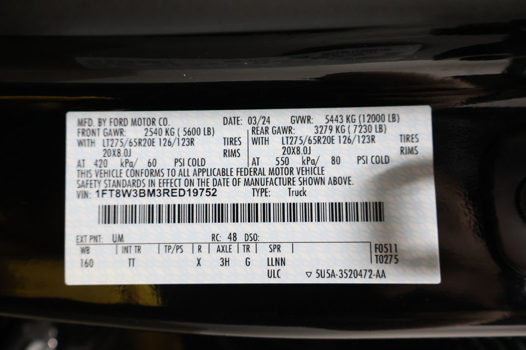 • VIN: 1FT8W3BM3RED19752