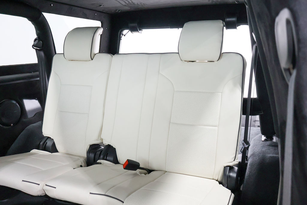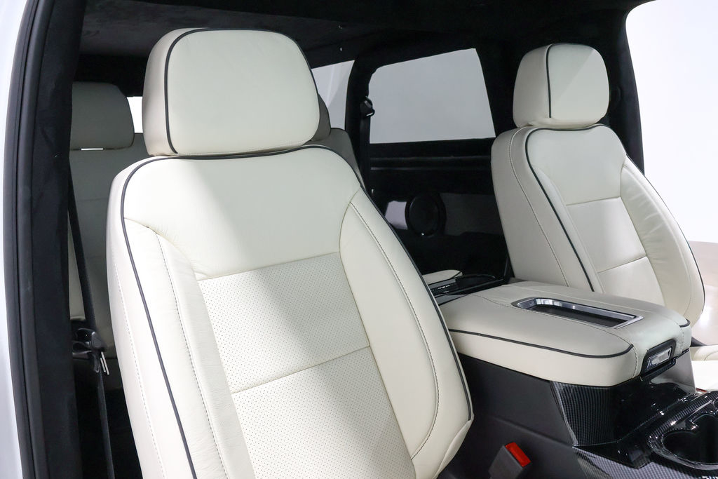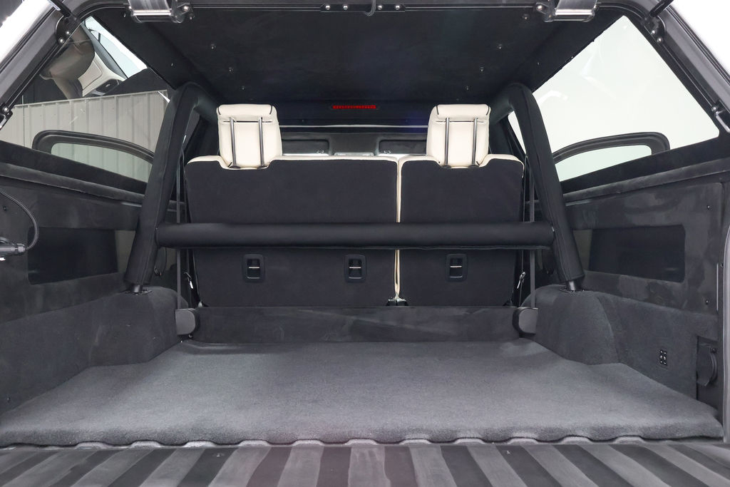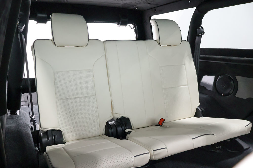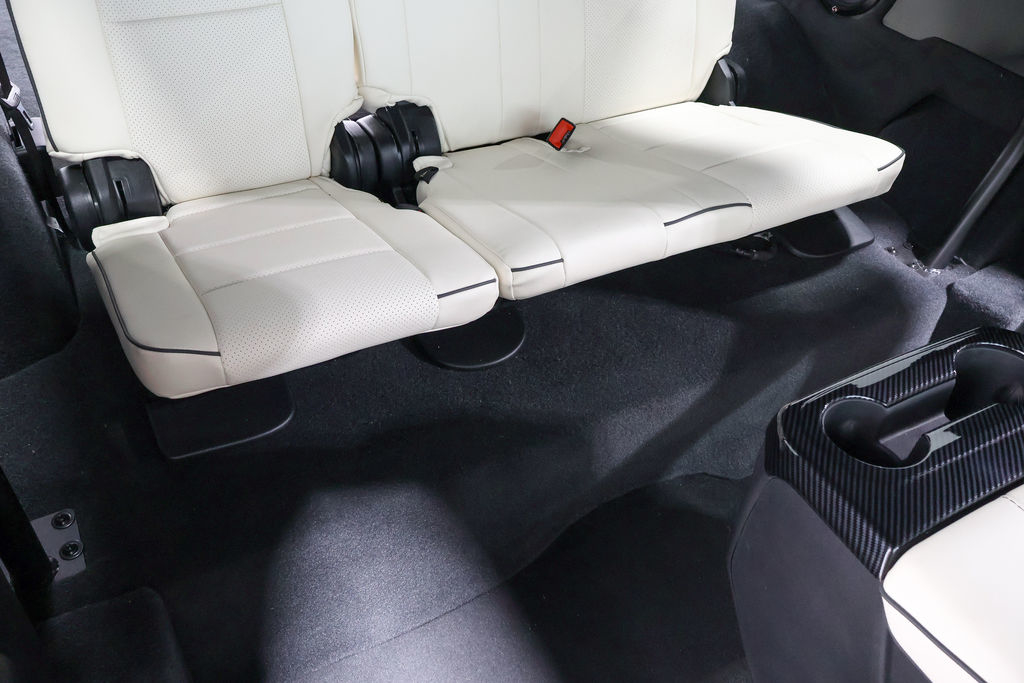 Inside, this Jimmy features all the current technology and comfort you would have in the new GMC Sierra AT4. Leather seats, an in-dash screen with navigation, and a power tailgate are just a few of the modern-day luxuries you will find on this Jimmy. A matching leather power-folding rear bench seat has been added by Flat Out Auto as well.