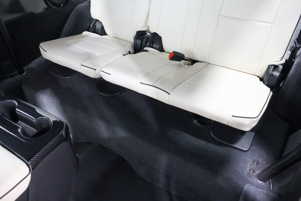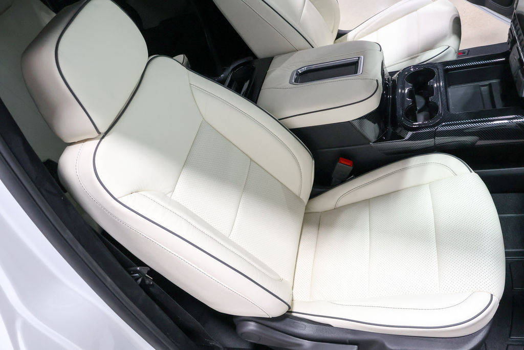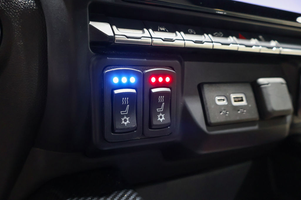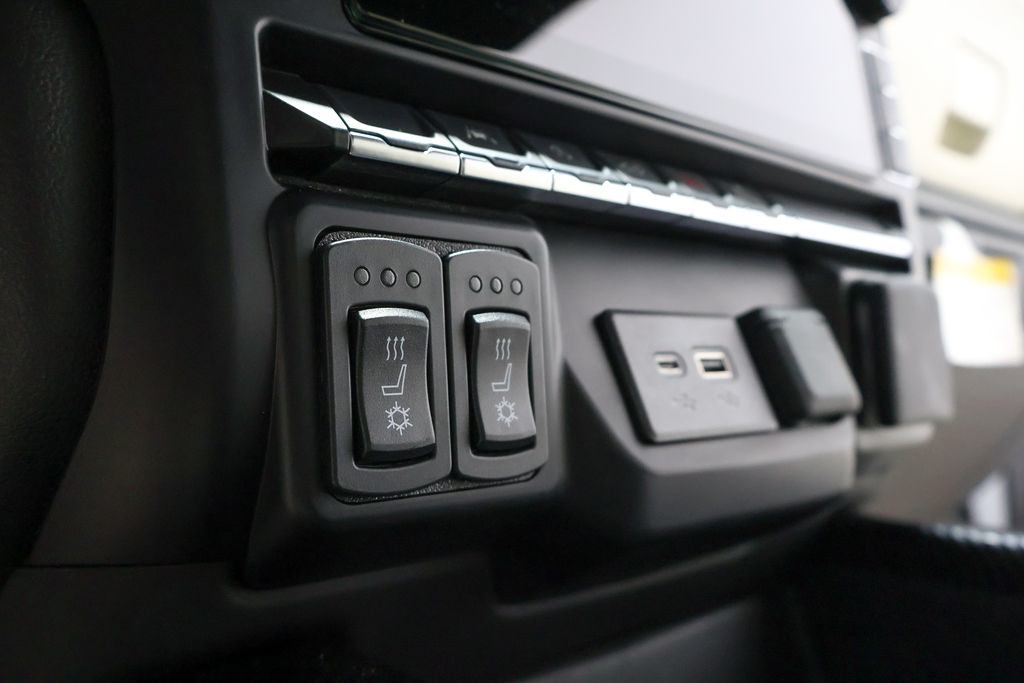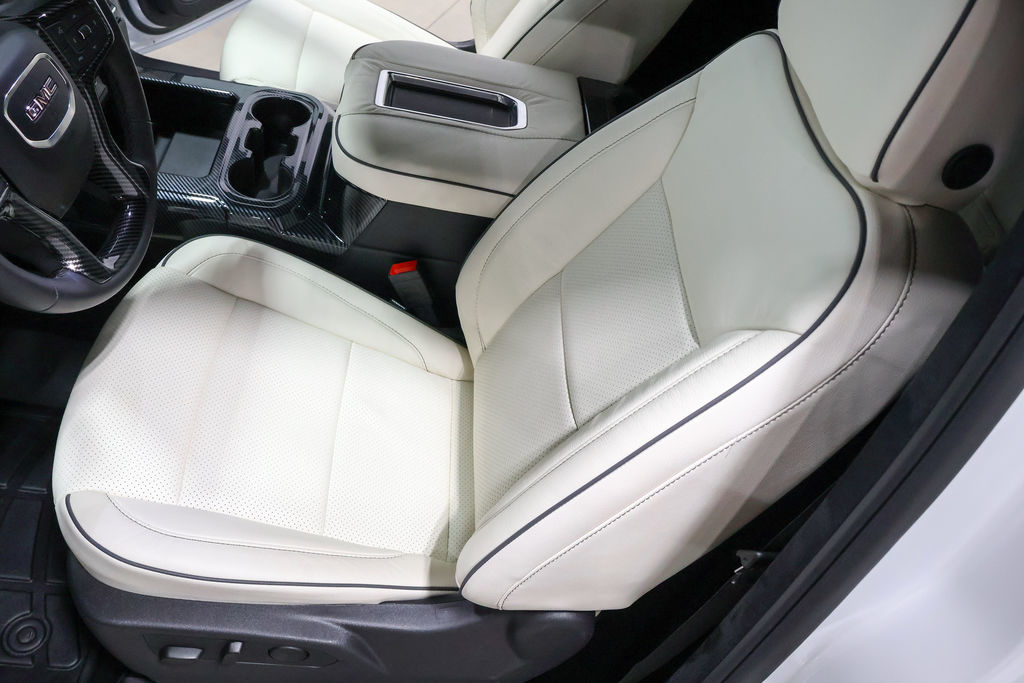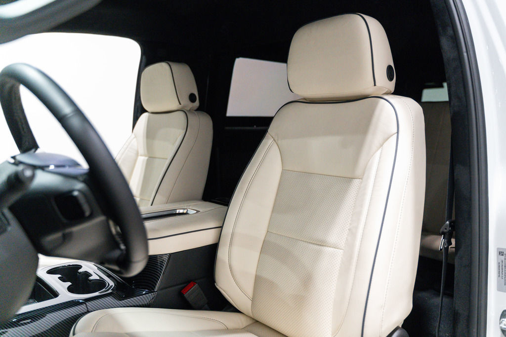 Inside, this Jimmy features all the current technology and comfort you would have in the new GMC Sierra AT4. Leather seats, an in-dash screen with navigation, and a power tailgate are just a few of the modern-day luxuries you will find on this Jimmy. A matching leather power-folding rear bench seat has been added by Flat Out Auto as well.