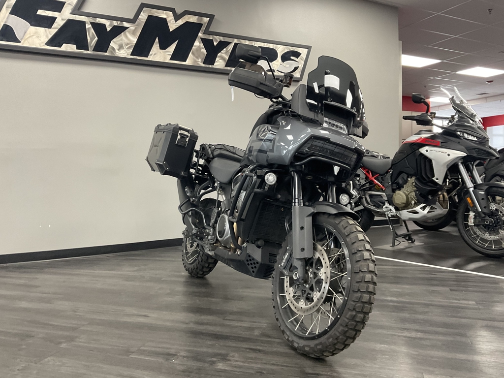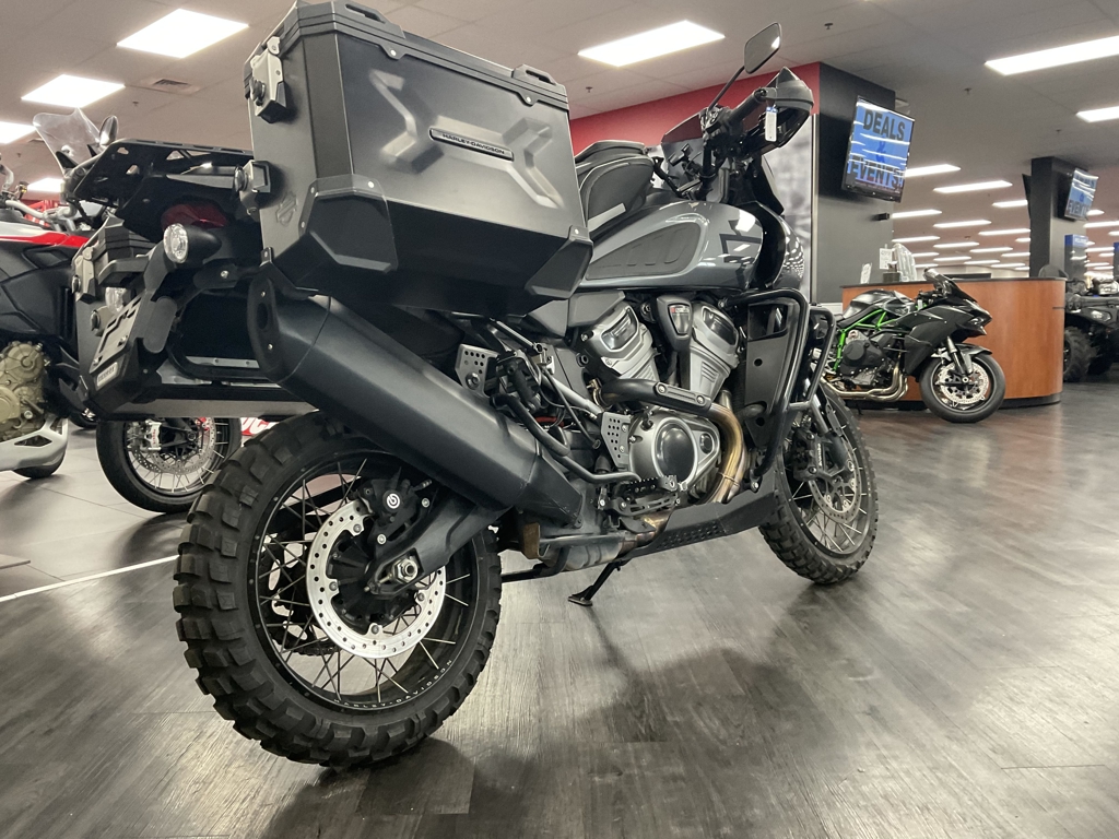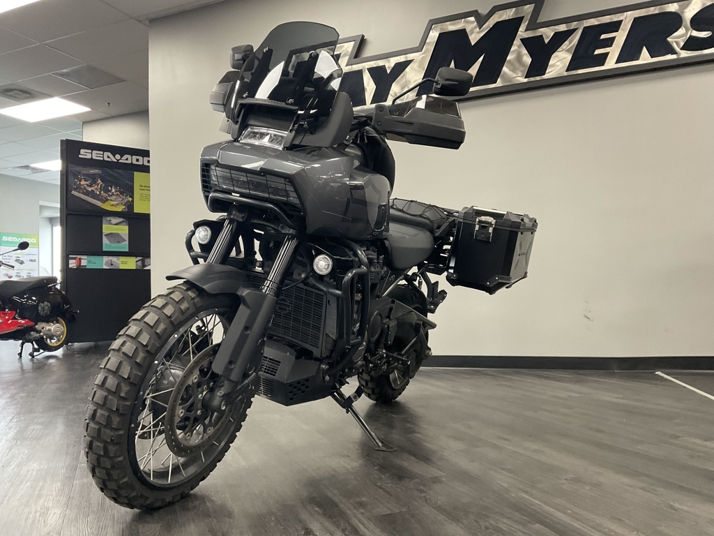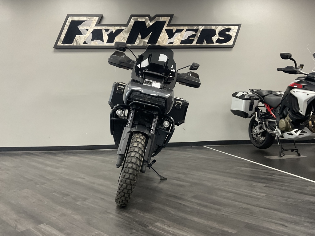 DIFFERENT BY DESIGN. We are calling it Special for a good reason. Designed to compete with the top-of-the-line ADV bikes in the segment, the 1250 Special is loaded with premium features. Powered by the all-new Revolution® Max 1250 engine, Pan America™ 1250 Special is a two-wheel multi-tool built to endure, designed to explore, and engineered for adventure. THIS IS THE RIGHT BIKE FOR: "¢ Enthusiasts who require top-of-the-line comfort and performance. "¢ For riders who see touring as detouring - on-road and off. "¢ Riders looking for power, tech, and capability - that can be used every day with comfort and control. ADAPTIVE LIGHTING - ADVANCED DAYMAKER ADAPTIVE HEADLAMP: Utilizing the ABS IMU to determine the lean angle of the motorcycle, this system automatically projects additional light into corners to illuminate areas of the road that may be unlit by an LED headlamp without this tech. Includes three LED elements per side, located just above the main Daymaker headlamp. The adaptive lamps illuminated in sequence based on motorcycle lean angle: at 8, 15, and 23 degrees. Rather than just switching on and off, the current to the adaptive elements ramps up gradually so the additional lighting is progressive and appears seamless. ADAPTIVE RIDE HEIGHT - REVOLUTIONARY SUSPENSION: Adaptive Ride Height makes its debut on the Pan America 1250 Special. This factory-installed option unlocks the confidence you can feel by lowering seat height when stopped and maintaining a constant, optimum suspension sag at speed by adjusting preload while continuously sensing weight inputs. SEMI-ACTIVE FRONT & REAR SUSPENSION: 190 mm (7.48 in.) travel on Showa BFF (Balance Free Forks) fronts and a BFRC (Balanced Free Rear Cushion-lite) coil-over rear shock with electronic preload control and semi-active damping. The rear suspension incorporates a linkage system connection to the shock, swingarm, and frame which provides a progressive feel through the stroke. ALL-NEW REVOLUTION MAX 1250 ENGINE - FOR A NEW GENERATION OF ICONIC BIKES: The next chapter in a century of legendary V-Twins is here. Revolution Max is a liquid-cooled powertrain with over 145 horsepower, full of ample torque, and a surging powerband tuned to maximize rider control. DUAL PURPOSE POWERTRAIN: The Revolution Max 1250 is a structural component of the motorcycle chassis, eliminating a traditional frame - which significantly reduces overall weight and keeps handling taut. This is performance you can feel, with the center of gravity low and the chassis super rigid. PEAK PERFORMANCE WHERE IT COUNTS: Double Overhead Camshafts (DOHC) facilitate higher peak horsepower, and independent Variable Valve Timing (VVT) broadens the overall powerband and improves torque management. All this to say you'll have as much low-end acceleration off the line and high-RPM horsepower you can twist. COMFORT/ RIDER COMFORT - VEHICLE LOADING CONTROL: This system senses the weight of the rider, passenge