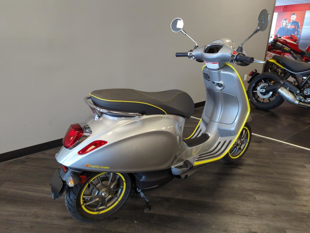 THE ELECTRIC MOBILITY REVOLUTION. Electric mobility will never be the same. Introducing the Vespa Elettrica, a stylish interpretation of the desire for a new relationship between vehicle, environment, and technology. Delivering outstanding pick-up, easy and enjoyable riding and up to 62.1 mi of uninterrupted riding thanks to the lithium-ion battery which also includes an energy recovery system during deceleration. The beating heart of the Vespa Elettrica is a silent, technologically advanced power unit. LISTEN TO THE SOUND OF NATURE With the Vespa Elettrica, you can navigate the urban streets in absolute silence, whether you choose Eco energy-saving mode or opt to push the engine by selecting Power. Either way, as you glide around town, the complete absence of acoustic pollution will ensure you appreciate the smooth riding experience to the max. GET AROUND WITH CARE Every detail of the Elettrica has been designed to make life simple, from riding to recharging to maintenance. The Reverse option is most definitely a helpful addition, and you can easily recharge your Elettrica by connecting the underseat cable to wall-mounted electrical sockets or public charging stations. When it comes to reliability, you can count on the engine and high-quality lithium-ion battery. ENJOY INFOTAINMENT ON THE GO The digital color TFT dashboard provides all your riding parameters as well as useful trip statistics to help you get the best out of your riding style. The Vespa MIA multi-media app connects your smartphone to the bike via Bluetooth so that the display essentially becomes an extension of your phone, meaning you can use it in total safety, without taking your hands off the handlebar. REINVENT YOUR STYLE When you're considered an innovative role model, you need to always stay a step ahead. Vespa offers four color schemes and two versions of the Elettrica with its new silver-plated look, each able to be customized to reflect the rider's style. For riders who are looking for greater power enjoy up to 45 mph. COLOR OPTION: "ยข Azzuro Elettrico MSRP excludes destination & vehicle preparation charges. The company reserves the right to make technical, stylistic, and appearances changes at any time. Vehicles shown may reflect European spec. Vespa is a registered trademark of Piaggio & C. S.p.A. Ride carefully, always wearing a helmet and suitable gear. Always comply with the Highway Code and respect the environment. Read the user and maintenance manuals thoroughly.