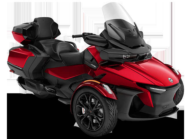 UNRIVALED TOURING COMFORT. With a modern look, heightened comfort, and extra storage, the Spyder RT isn't just the key to unlocking what the open road has to offer, it's the pinnacle of luxury touring. Experience unrivaled touring comfort in luxury that fits your style. The Spyder RT Limited features integrated, vehicle-optimized smartphone apps, a long-distance seat, and many more features designed for the ultimate adventure for two. HIGHLIGHTS: · All standard Spyder RT features, PLUS: · Ultimate comfort: self-leveling rear air suspension, premium passenger backrest, plus heated seats & grips for two. · 47 gal (177 L) storage capacity with LinQ-ready top case · Premium BRP Audio 6-speaker sound system with audio control keypad · Signature LED lights, color-keyed dark or platinum trims, and lined & lit front cargo box. FRONT RUNNER Spyder RT responds to your every command, whether touring up to 252 miles (406 km) on a single tank* or using its Rotax® 3-cylinder engine for maximum acceleration on winding roads. IMPRESSIVE TRACTION Rider-focused safety: anti-lock brakes (ABS), traction and stability control co-developed with BOSCH" . These confidence-inspiring features ensure Spyder RT stays planted as the conditions evolve. HANDLES WITH EASE Electronically-controlled power steering makes handling the Spyder RT a joy, and responds with more or less assistance depending on your speed. DIGITAL THEFT PROTECTION Kept on lock: Digitally Encoded Security System (D.E.S.S.) protects the Can-Am Spyder RT from theft & unauthorized use. Without the specific coded D.E.S.S. key, a Spyder RT won't start. SMOOTH OPERATOR Shift your way with an index finger & thumb control paddle shifter"”or just cruise. The hydraulic clutch offers a perfect balance of comfort and fuel economy. SAFE, CONTROLLED STOPS No-fade performance: Brembo's Spyder RT-specific braking system gives impressive stopping power and consistency in all conditions. SAVOR EVERY MILE Whether a relaxed cruise or to stretch fuel stops on a road trip, ECO Mode Smart Assist helps you optimize your shifting behavior to spend more time riding"”and less time at the pump. ENHANCE YOUR RIDE Intuitive technology: use your favorite apps when riding with BRP GO!, including Genius Map"  and Sygic"  directions, plus the popular live digital music platform Dash Radio" . AT A GLANCE Large, panoramic 7.8-inch LCD for all RT models rules the open road. Legible in all conditions, it's an intuitive display system designed for riders, by riders. SAFETY & SECURITY: · Stability Control System - SCS · Traction Control System - TCS · Anti-lock Braking System - ABS · Dynamic Power Steering - DPS · Anti-Theft System - Digitally Encoded Security System (D.E.S.S.™) · Hill Hold Control - HHC COLOR OPTIONS: · Carbon Black Platine · Carbon Black Dark · Deep Marsala Metallic Platine · Hyper Silver Dark · Deep Marsala Metallic Dark · Hyper Silver Platine · Petrol Metallic