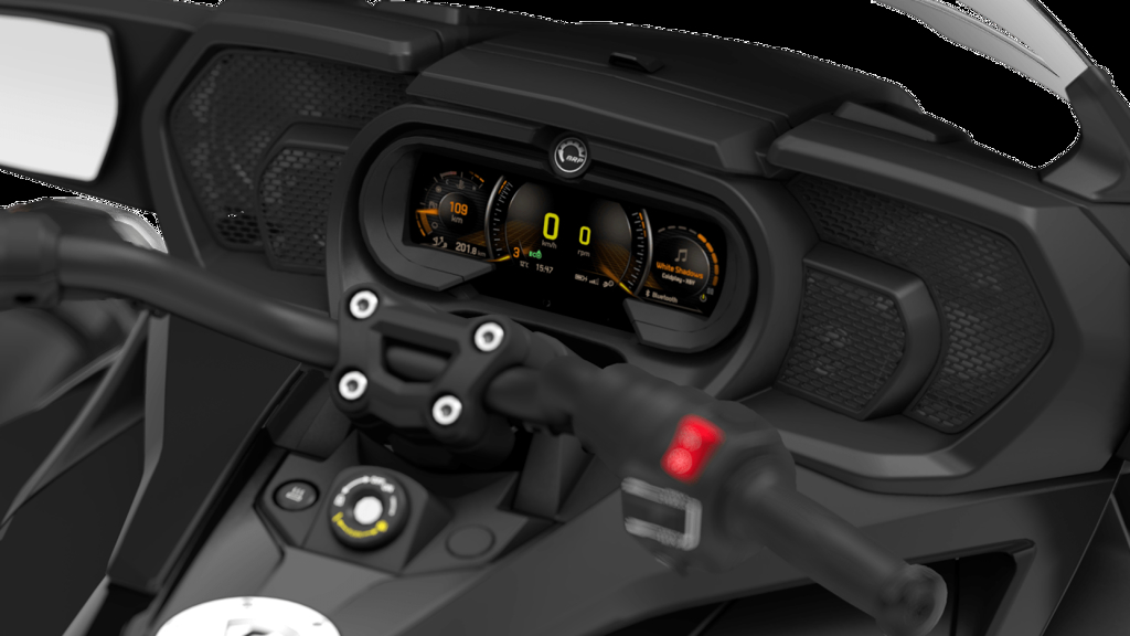 GO THE EXTRA MILE. When performance, comfort, and style are combined into one vehicle, that's when you know you're in for the rides of your life. Discover the unmatched freedom and spirit of the Can-Am® Spyder F3 model. Go the extra mile with the Spyder F3-T. Enjoy the road with the built-in infotainment system, added comfort of a windshield along with a smooth and quiet ride. You can also take along your gear with integrated hard side luggage. HIGHLIGHTS: · 115 horsepower Rotax® 1330 cc engine, semi-automatic transmission, ECO Mode and vehicle stability control · Added comfort with extra wind protection, cruise control and adjustable rear air suspension · Standard hard saddlebags & glove box for 21 gal (78 L) of storage + towing capability · Punchy BRP Audio 4-speaker sound system with audio control keypad · 7.8"³ (19.8 cm) wide digital gauge with BRP Connect · New color for 2023 - Petrol Metallic for truly striking looks on the open road. MIGHTY MOTOR Spyder F3 responds to your every command: are you touring up to 252 miles (406 km) on a single tank or using its Rotax® 3-cylinder engine for maximum torque on winding roads? HIGH-TECH TRACTION Rider-focused safety suite: stability control developed in partnership with BOSCH" , anti-lock brakes (ABS), plus traction control are the confidence-inspiring features that keep Spyder F3 planted to the road. CONFIDENT STEERING Turn with ease: Electronically-controlled power steering makes handling the Spyder F3 a joy, and responds with more or less assistance depending on your speed. DIGITAL THEFT PROTECTION Kept on lock: Digitally Encoded Security System (D.E.S.S.) protects the Can-Am Spyder F3 from theft & unauthorized use. Without the specific coded D.E.S.S. key, a Spyder F3 won't start. FINGERTIP SHIFTS Shift your way with index finger & thumb control paddle shifter"”or just cruise. A hydraulic clutch offers the perfect balance of comfort and fuel economy. SUPER STOPS No-fade performance: Brembo's Spyder-specific braking system is a non-negotiable upgrade that delivers impressive stopping power and consistency in all conditions. FOCUS ON THE RIDE Available large, panoramic 7.8-inch LCD that's legible in all conditions. Showing gauges, functions and menus, it's an intuitive display system that rules the open road. THE FUTURE IS NOW Rider-focused technology: use your favorite apps when riding with BRP GO!, including Genius Map"  and Sygic"  directions, plus the popular live digital music platform Dash Radio" . SAFETY & SECURITY: · Stability Control System - SCS · Traction Control System - TCS · Anti-lock Braking System - ABS · Dynamic Power Steering - DPS · Anti-Theft System - Digitally Encoded Security System (D.E.S.S.™) · Hill Hold Control - HHC COLOR OPTIONS: · Pearl White · Petrol Metallic WARRANTY: · Factory Warranty: 2-year BRP Limited Warranty with 2-year roadside assistance. · Extended Service Terms: B.E.S.T. terms available from 12 to
