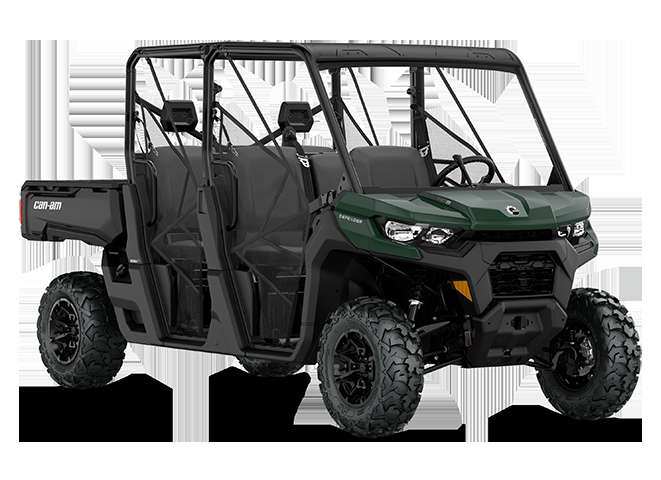 TAKE THE REIGNS. Built extra tough to take you way beyond the daily grind, Defender is the most capable Can-Am® Side-by-Side ever. On worksites, hunting trips, in agribusiness & anywhere you need it gets the job done right. Comfortable Dynamic Power Steering turns the DEFENDER MAX DPS HD9 into a workhorse that makes your job even easier. Take those lightweight wheels and tires, adaptable storage, Visco-Lok QE 4WD--and get it done. HIGHLIGHTS: "¢ HD9: 65 hp "¢ Up to 12.5 in. (31.8 cm) ground clearance "¢ Integrated front steel bumper OUR SHIFT? SUNUP 'TIL SUNDOWN Schedule? To-do list? Office hours? The Defender just works. The day is done when you say it is, so get the most from a side-by-side made to handle any condition. No break-in, no extra maintenance. They're the vehicles you'll want to pass on to your kids, not your dealer. Every Defender is made to get it done. CLASS-LEADING TORQUE, QUIETER ROTAX® ENGINE With the HD9 model, work better, ride more comfortably with the PRO-TORQ CVT Transmission, and do it with low-intensity sound. For long hours of hard work with an easy-going ride, Defender delivers a better, quieter cockpit. UP TO A 2,500 LBS TOWING CAPACITY With engines, chassis, driving assistance work mode, and suspension all matched to work harder than any other side-by-side, the Defender can tow up to 2,500 lbs (1134 kg). INNOVATIVE SUSPENSION SETUP Double A-Arm front suspension gives better stability, a surefooted response, and improved strength. COLOR OPTIONS: "¢ Tundra Green "¢ Mossy Oak Break-Up Country Camo-MSRP Starting at $19,199 "¢ Timeless Black "¢ Oxford Blue FACTORY WARRANTY: "¢ Factory Warranty: 1-year BRP limited warranty "¢ Extended Service Terms: B.E.S.T. terms available for up to 30 months © 2023 Bombardier Recreational Products Inc (BRP). All rights reserved. ®, TM, and the BRP logo are trademarks of Bombardier Recreational Products Inc. or its affiliates. In the U.S.A., the products are distributed by BRP US Inc. "  Visco-Lok is a trademark of GKN Viscodrive GmbH. All other trademarks are the property of their respective owners. For other jurisdictions, see your local dealer. BRP reserves the right, at any time, to discontinue or change specifications, prices, designs, features, models, or equipment without incurring obligation. Some models depicted may include optional equipment. Read the side-by-side vehicle (SSV) Operator's Guide and watch the Safety DVD before driving. For your safety, wear a helmet, eye protection, and other protective gear. Fasten lateral net and seat belt at all times. Always remember that riding and alcohol/drugs don't mix. SSV is for off-road use only. Never ride on paved surfaces or public roads. The operator must be at least 16 years old. Passengers must be at least 12 years old and able to hold handgrips and plant feet while seated against the backrest. Never engage in stunt driving and avoid excessive speed. Ride responsibly.
